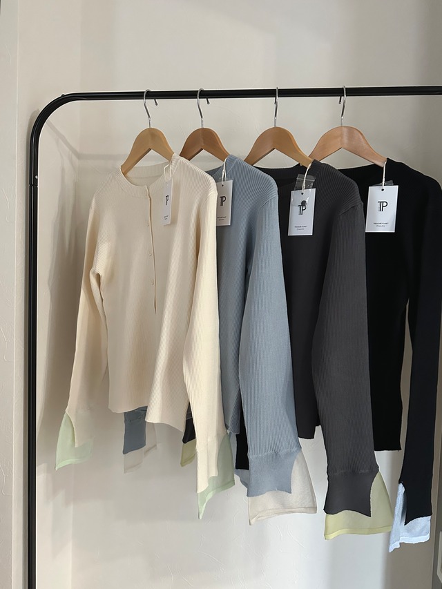 袖の金ボタンがさりげなくエッジを効かせてくれる、リブニットトップス。 もっちりとした肌ざわりが心地よく、 程よくストレッチが効いているので着心地抜群。 薄すぎず厚すぎない編み地で 着膨れしにくいのも嬉しいポイントです。 ベーシックなシルエットで、パンツでもスカートでも合わせやすい一枚です。 商品サイズM (ワンサイズ) ----------------------------- モデル着用サイズ 166cm 着丈:55cm 肩幅:35.5cm 身幅:37cm 袖丈:63cm 裾幅:37cm 袖口:9cm ---------------------------- ■素材・成分:レーヨン:50% ポリエステル:28% ナイロン:22% ※光の当たり具合や端末等の閲覧環境によって、実際の色味と異なって見える場合がございます。予めご了承ください。