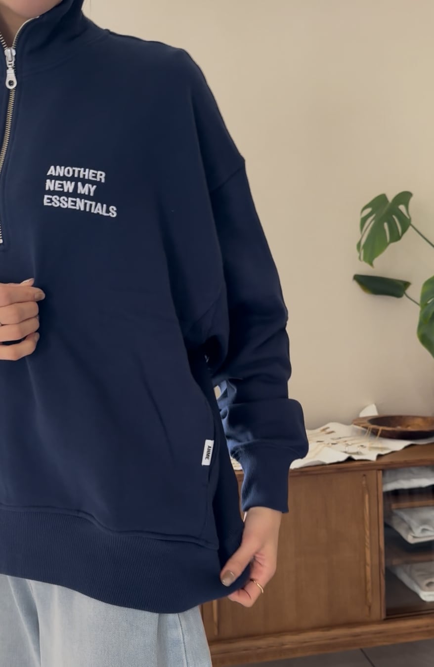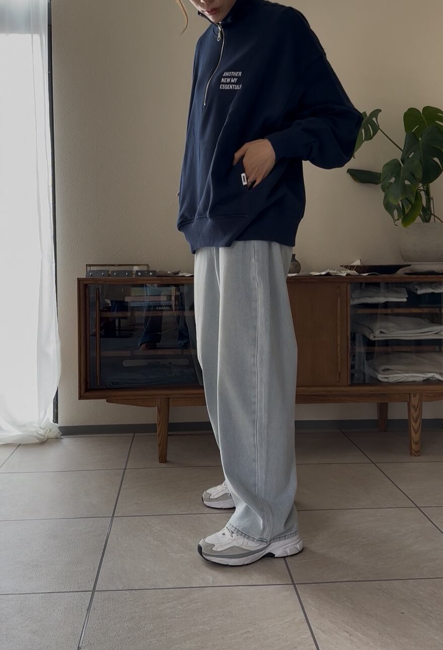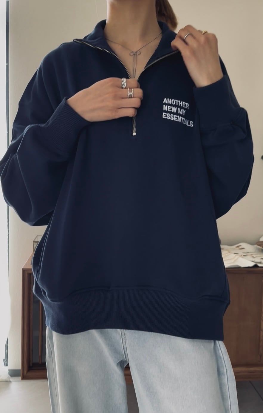 トレンドのハーフジップを採用したスウェットプルオーバー。