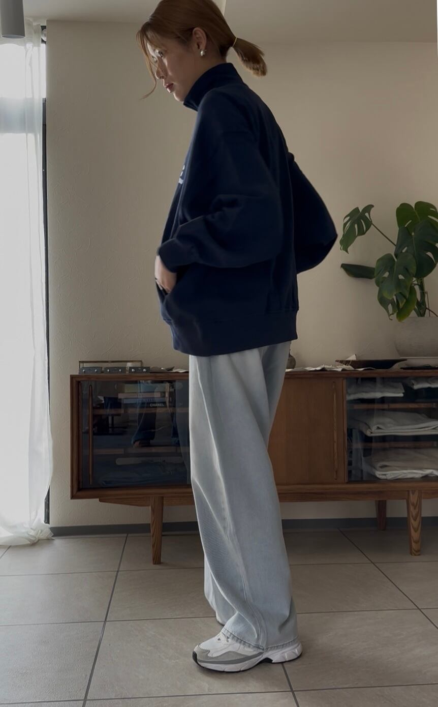 オーバーサイズで着やすく、ゆるっとこなれたスポーティーな印象で着こなしていただけます。