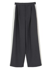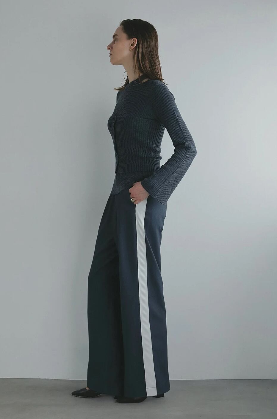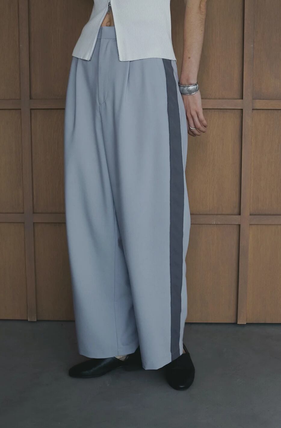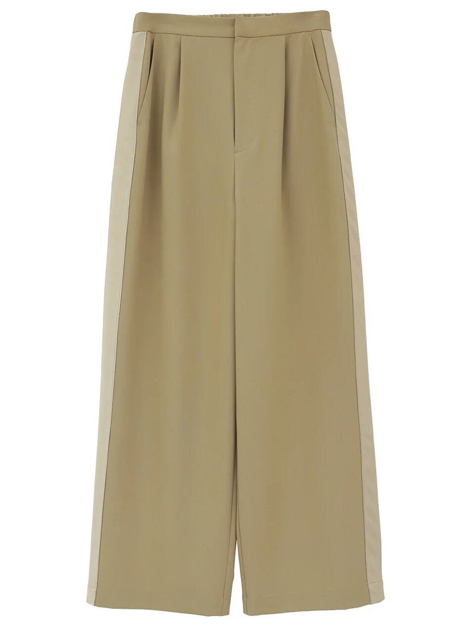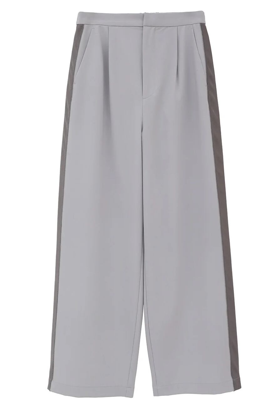 落ち感のある素材に、サイドはサテン生地をカットオフしたラインを配置にすることでラフすぎない印象に。