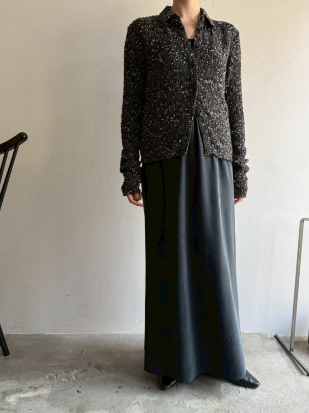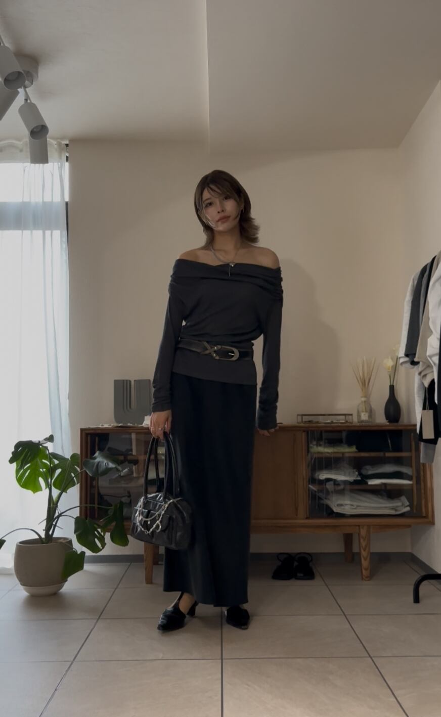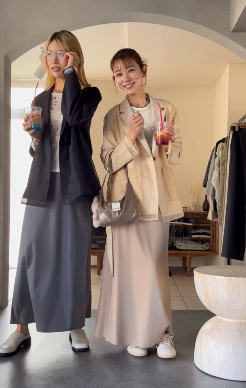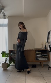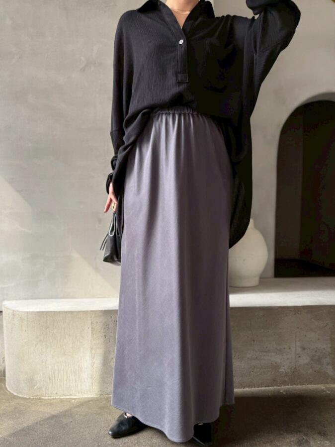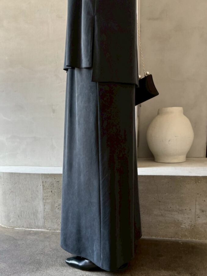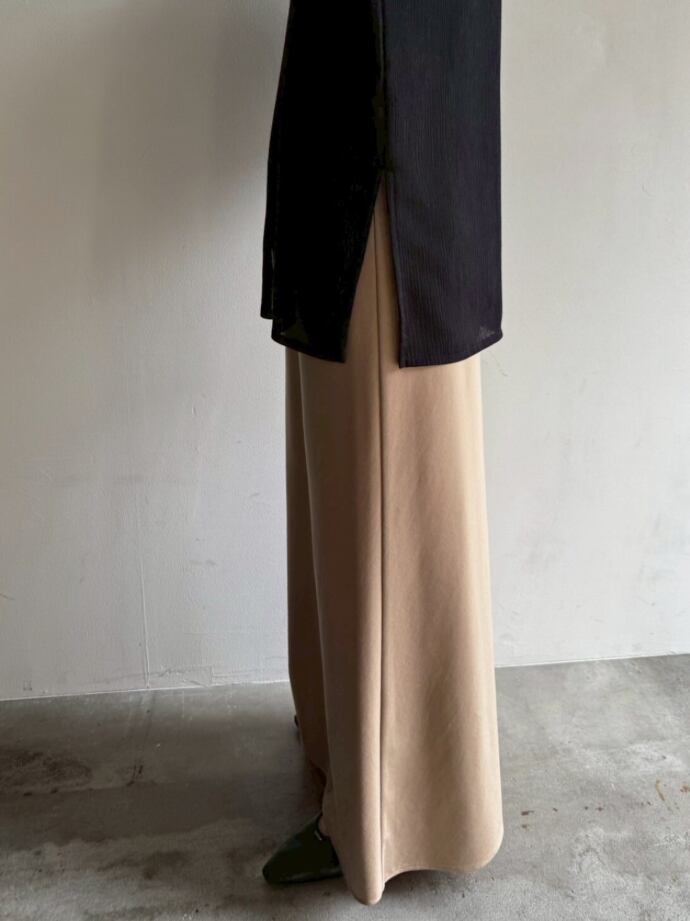 落ち感のある生地は、身体のラインも出過ぎず歩くたびに揺れるナローシルエットが魅力◎
