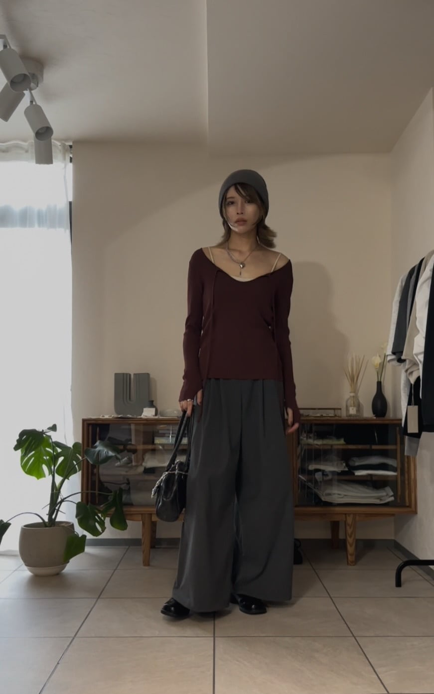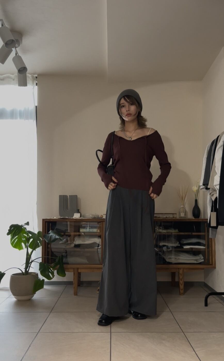 華奢な紐がついており、結び方によっていろんなスタイリングを楽しんでいただけます。