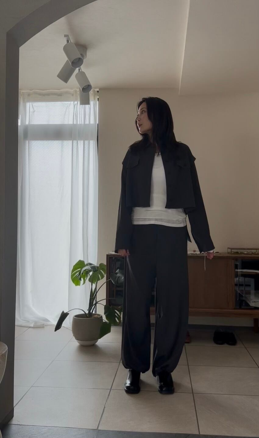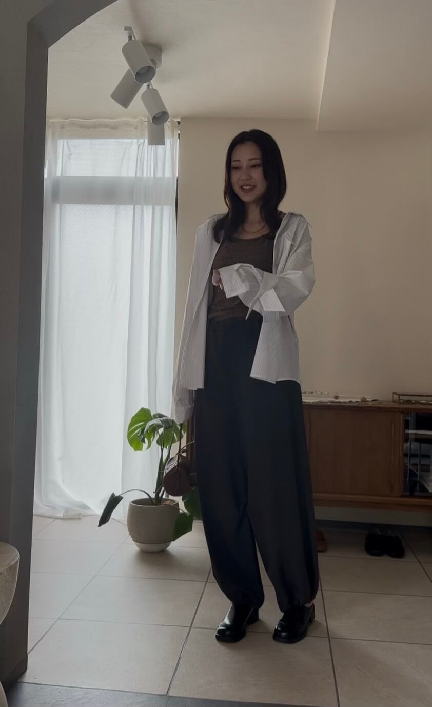 シワになりにくい生地感なので、お家でお洗濯が出来るカジュアルなアイテムながら、シルエットのキレイさがきちんと感も出してくれるので、お出掛けシーンでもコーディネートが様になる頼れる一本です。