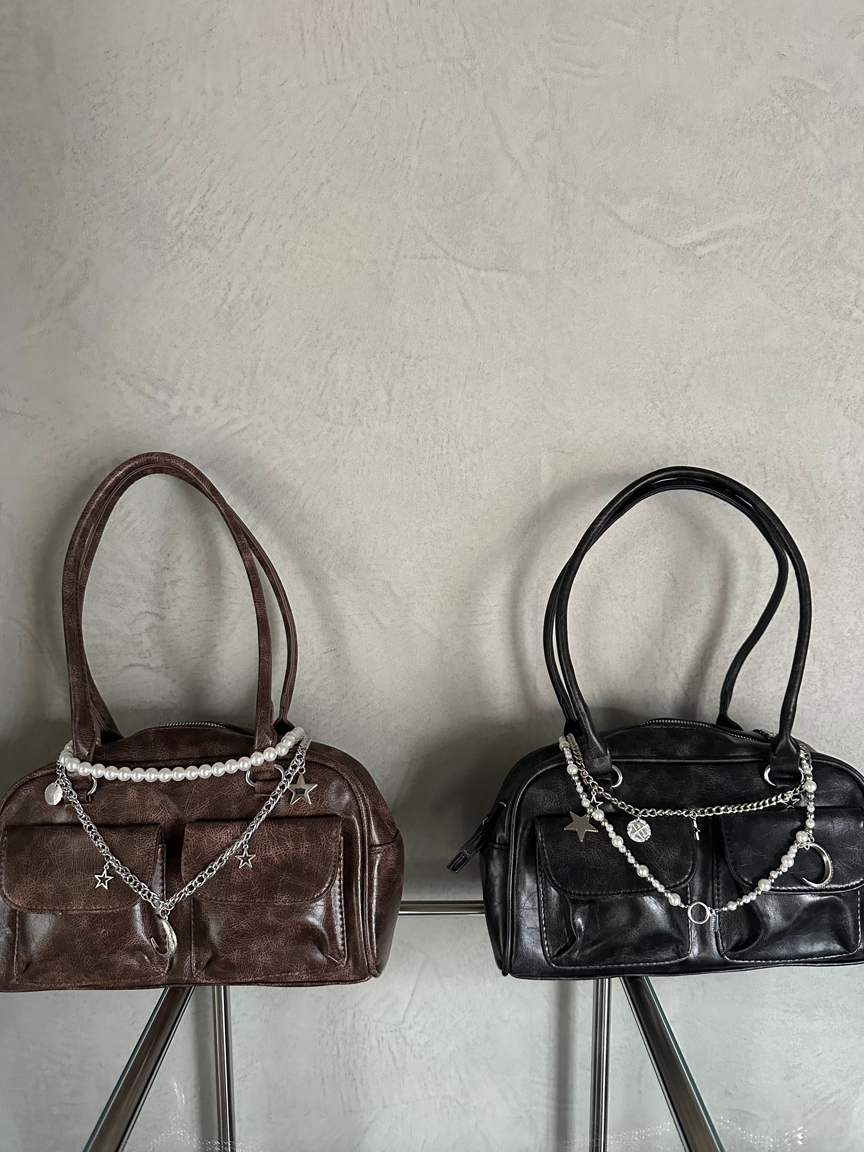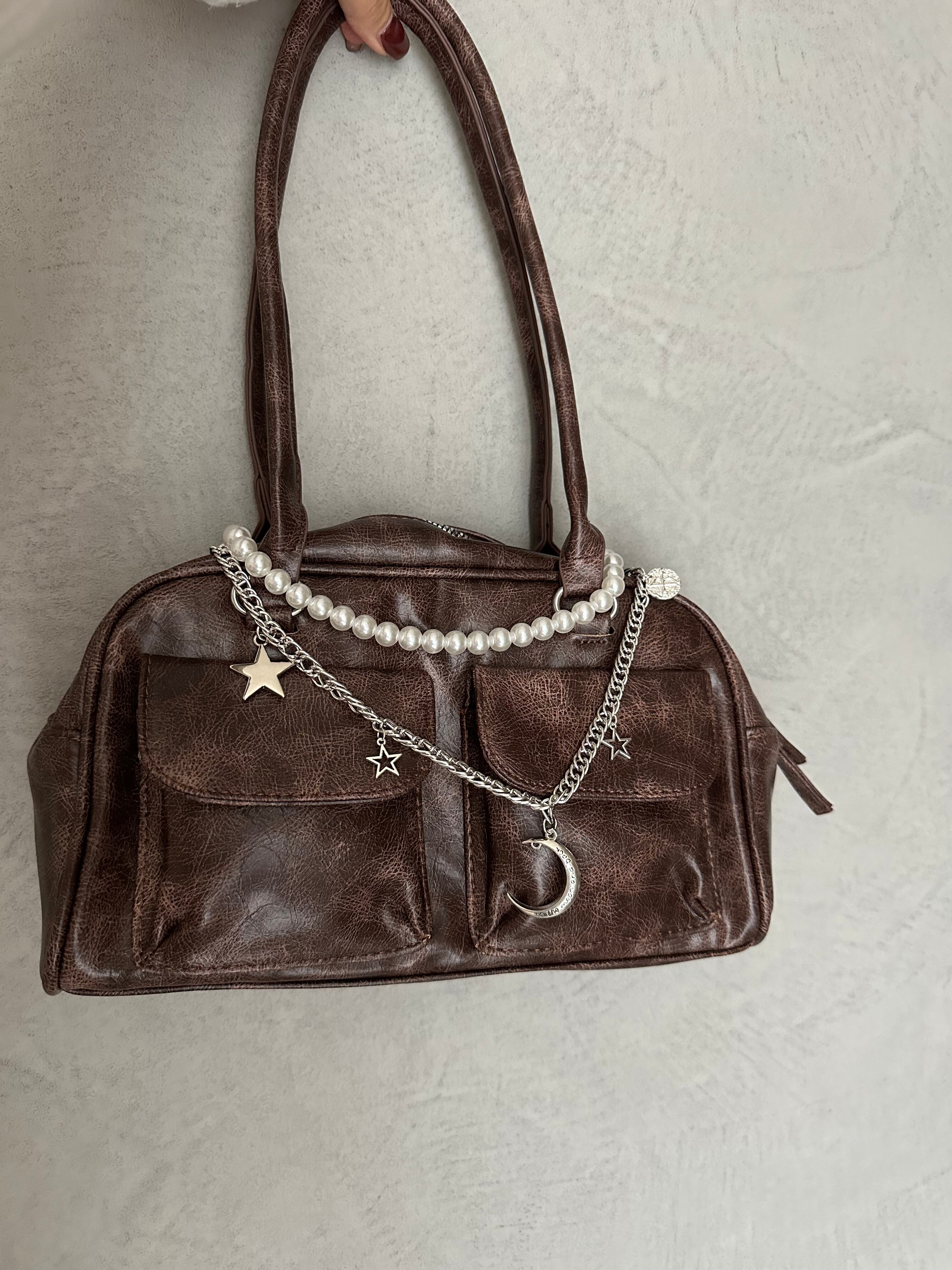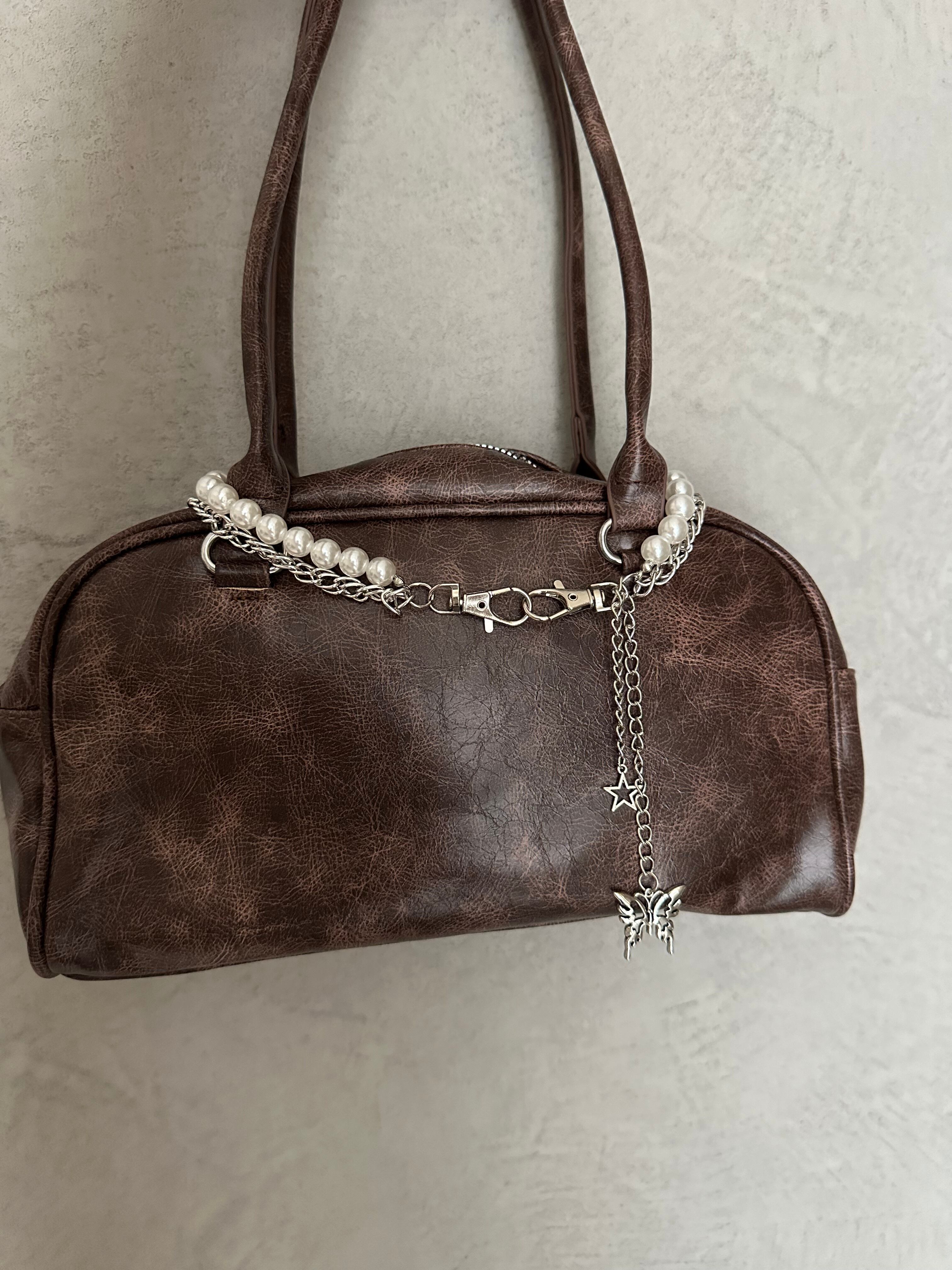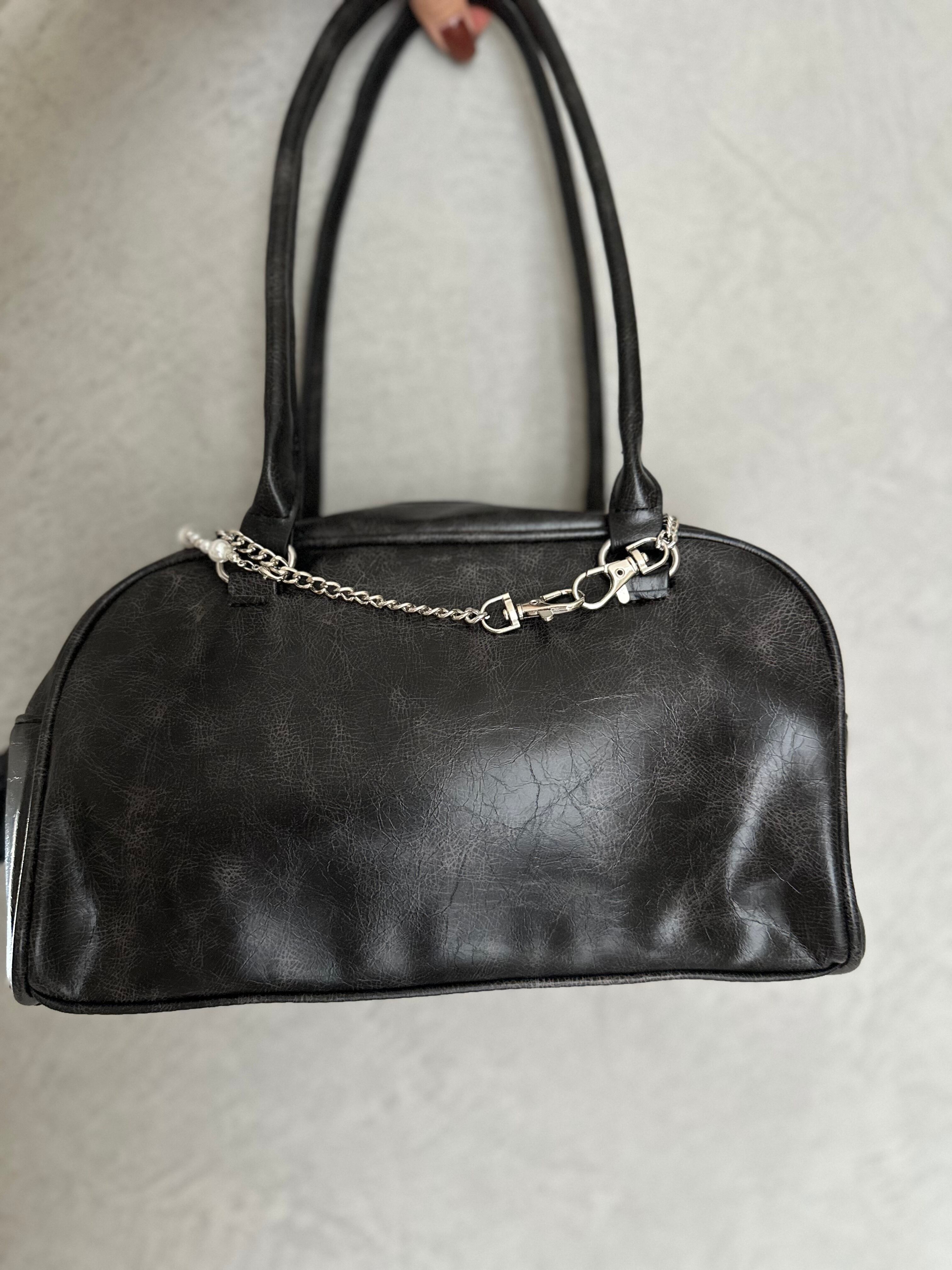 ヴィンテージライクな加工を施した、トレンド感あるチェーン付きバッグ。