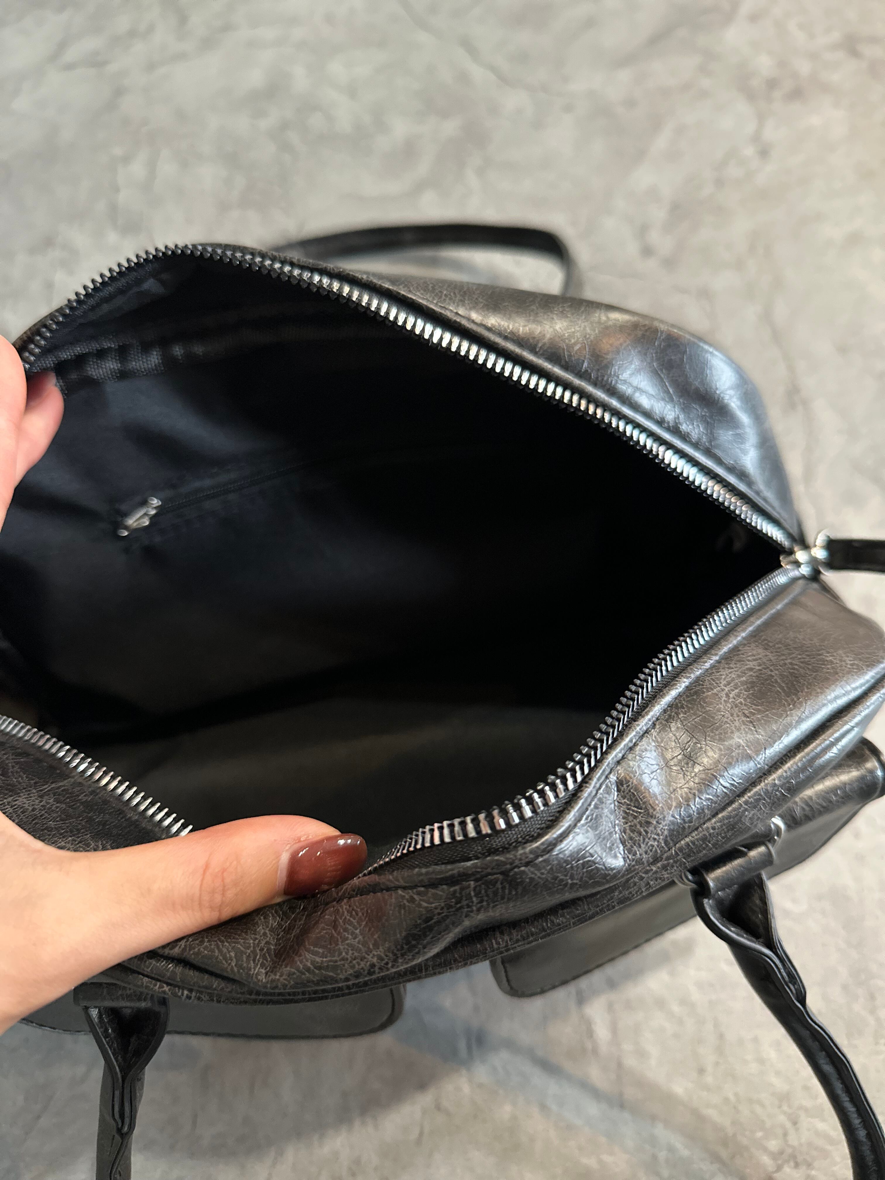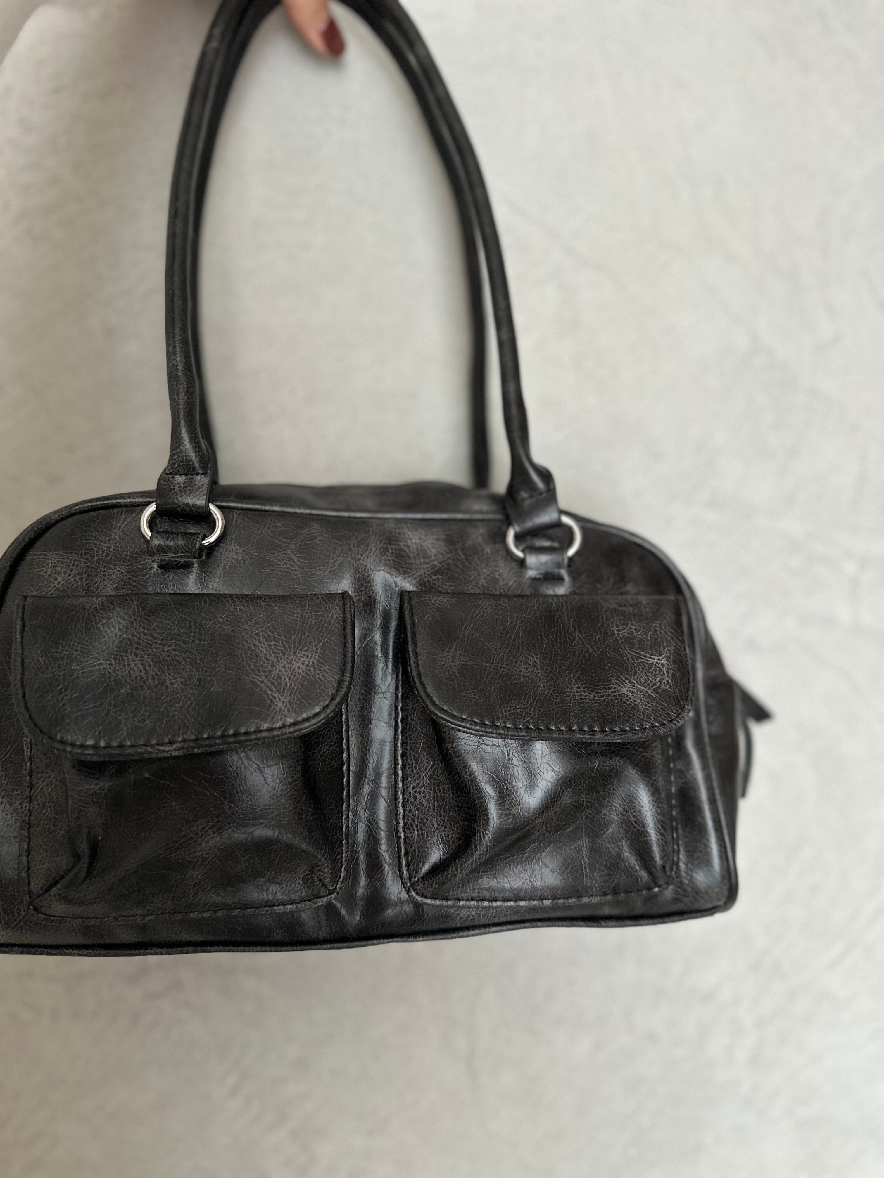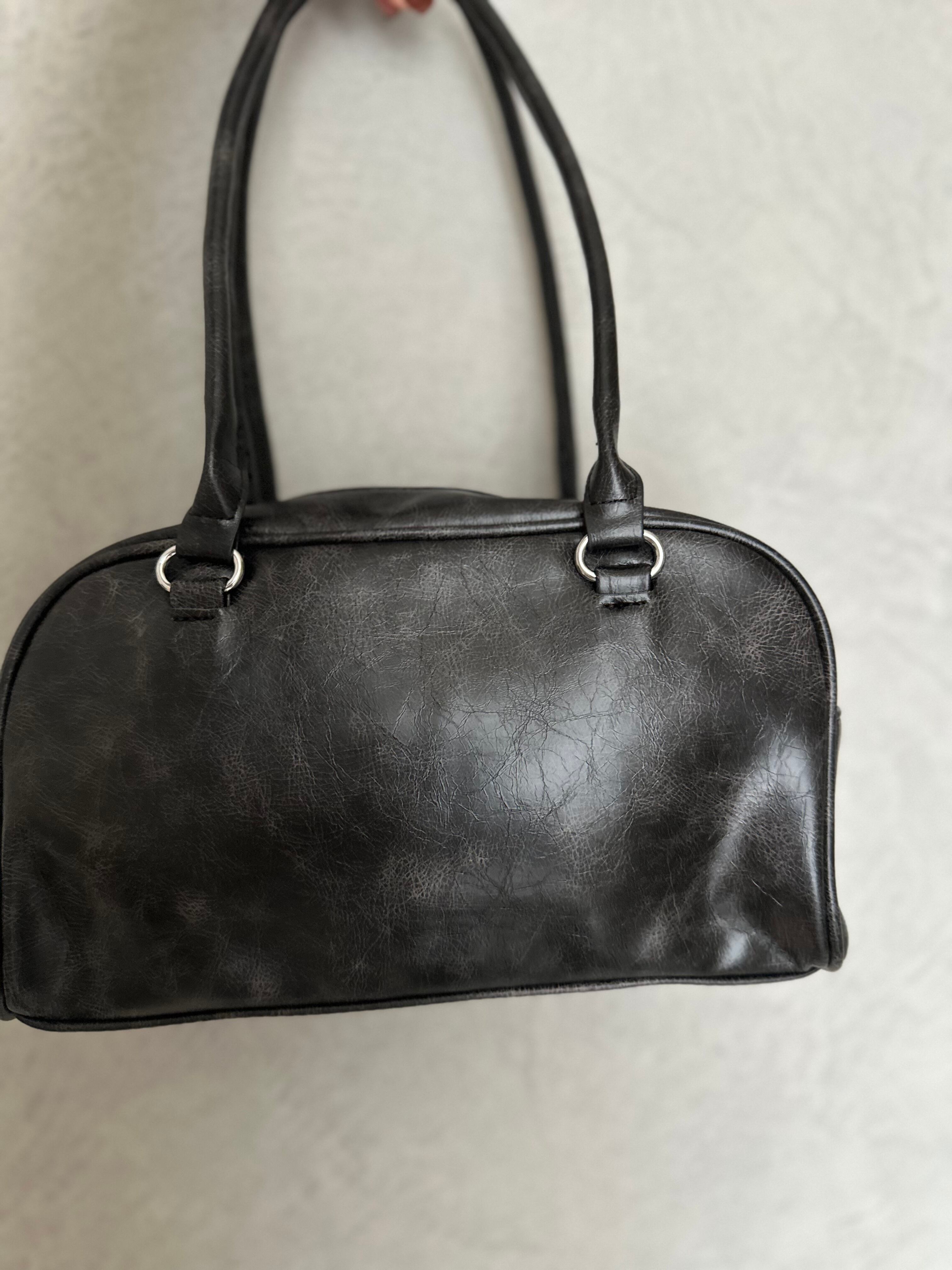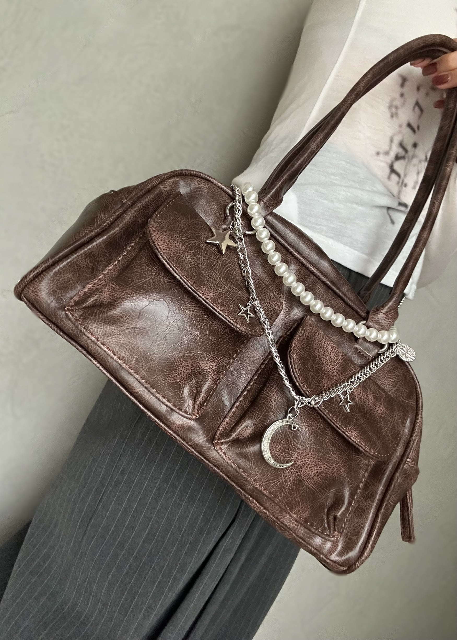 ヴィンテージライクな加工を施した、トレンド感あるチェーン付きバッグ。