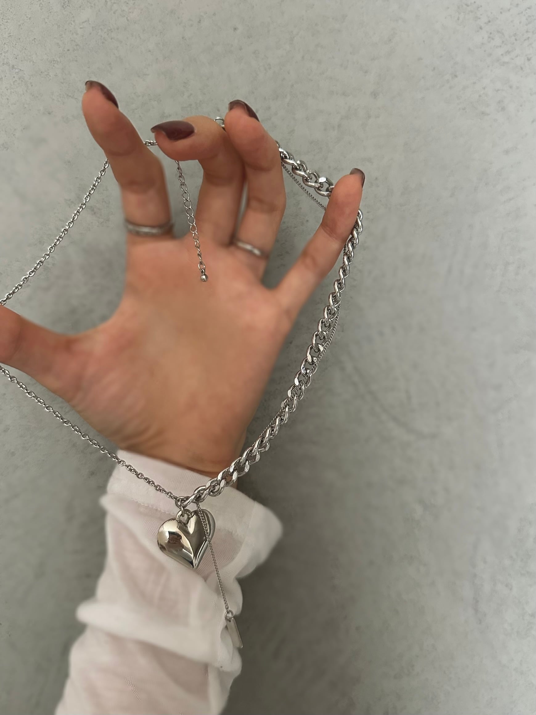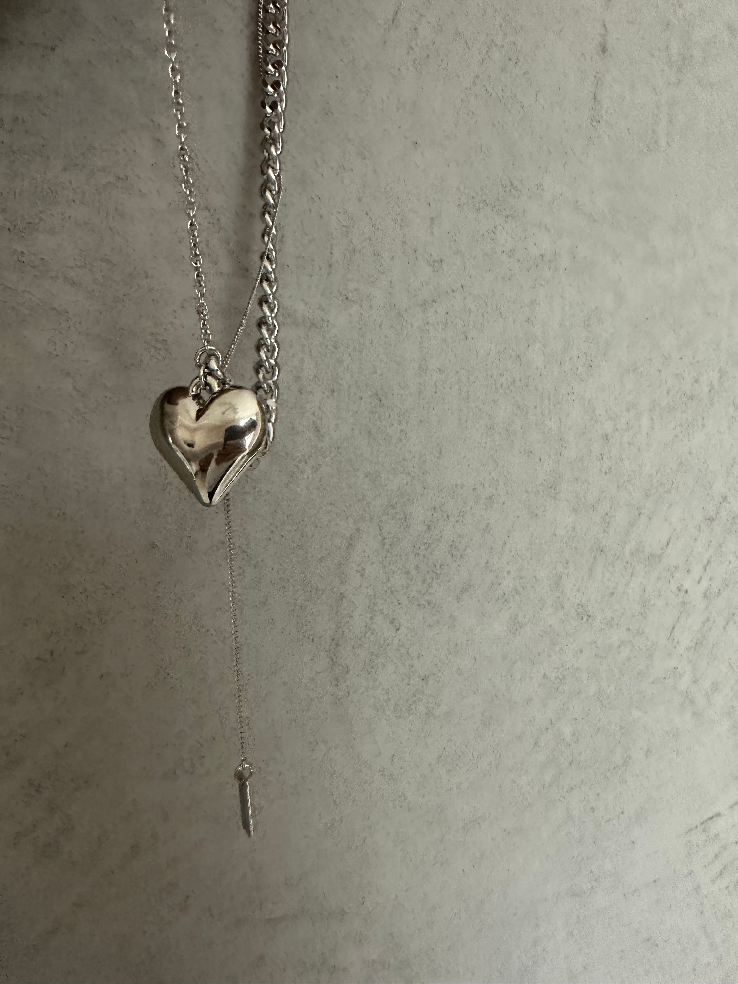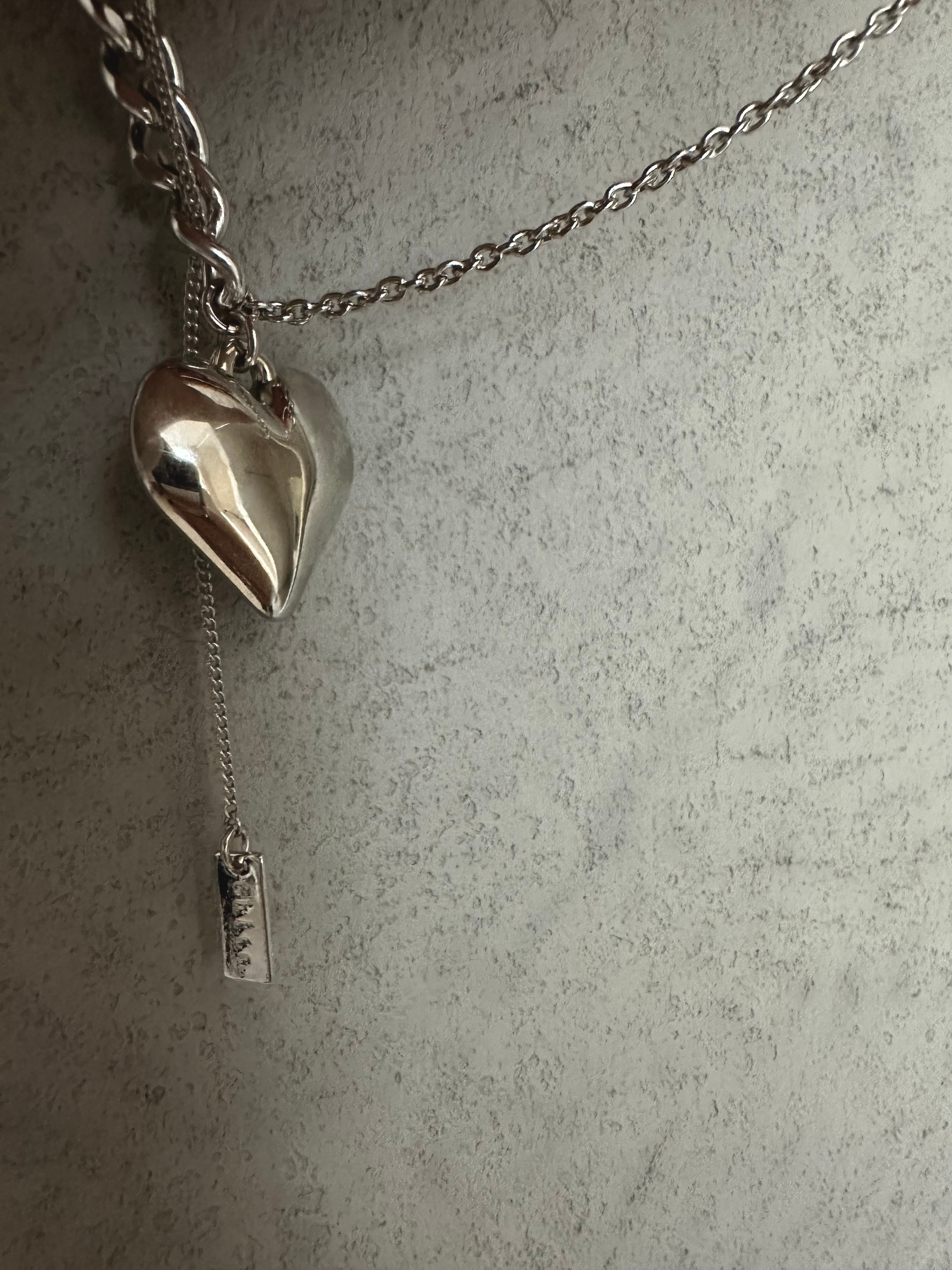 HEART CHARM ASYMMETRY NECKLACE(SLV)