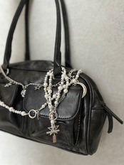 メタリックのスターモチーフがキャッチーな印象のパールミックスネックレス。