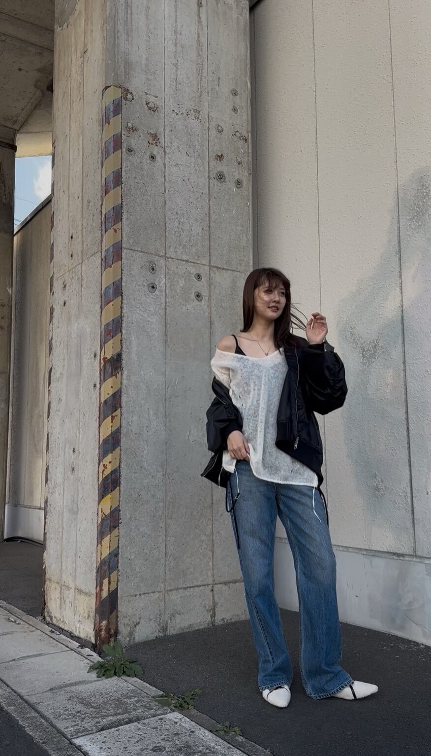 フェミニンなスカートやワンピースに合わせたミックステイストコーデがおすすめです。