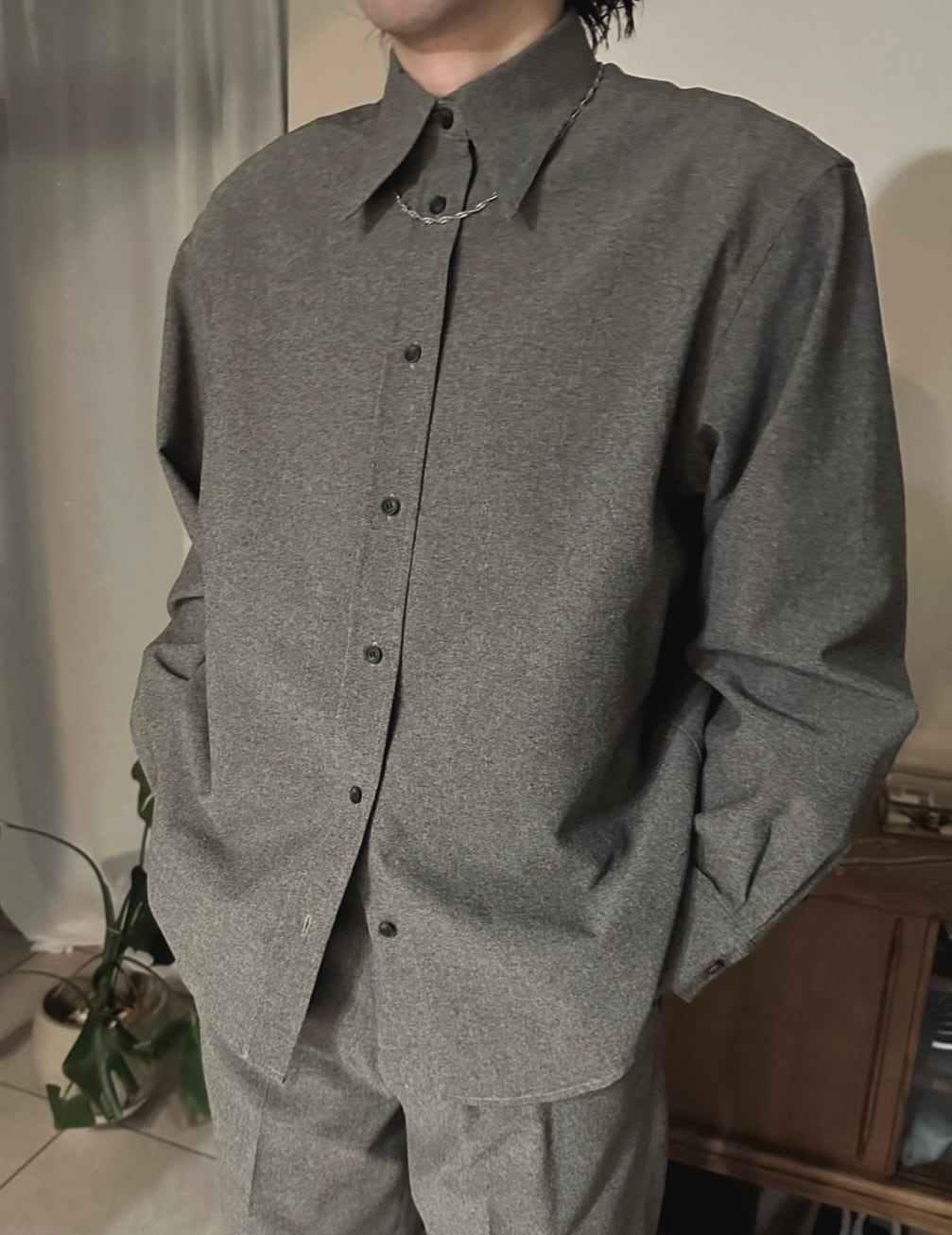ツイード調の生地を作成しシンプルなシャツに落とし込みました。