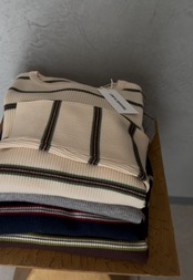 マルチボーダーがさりげなくオシャレな印象を与えてくれるリブニット。