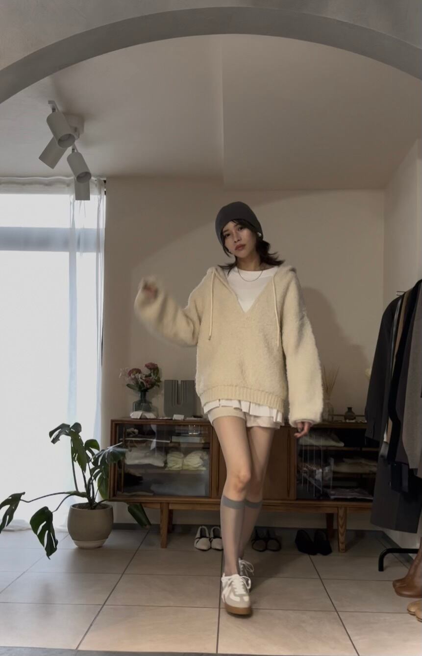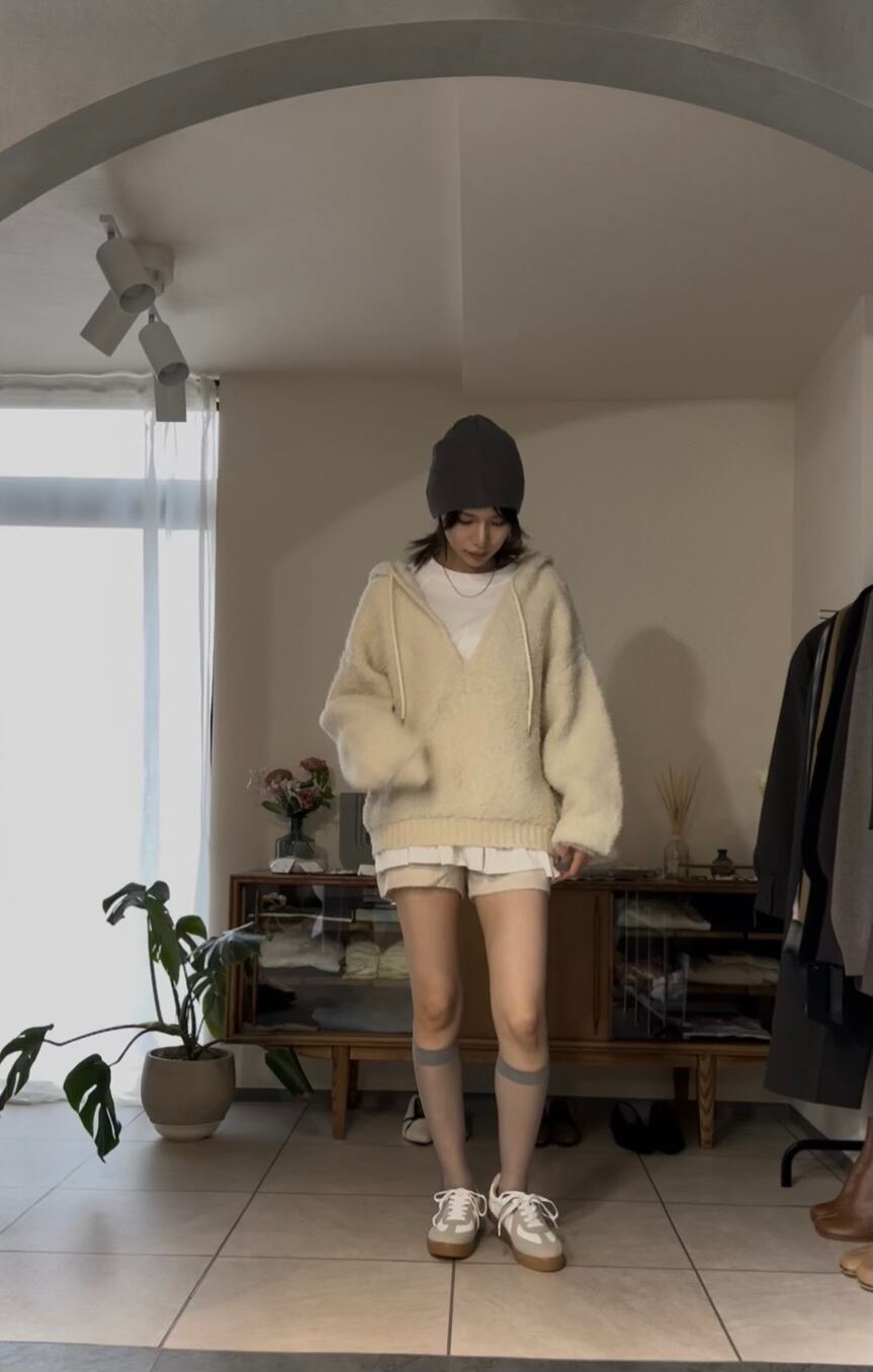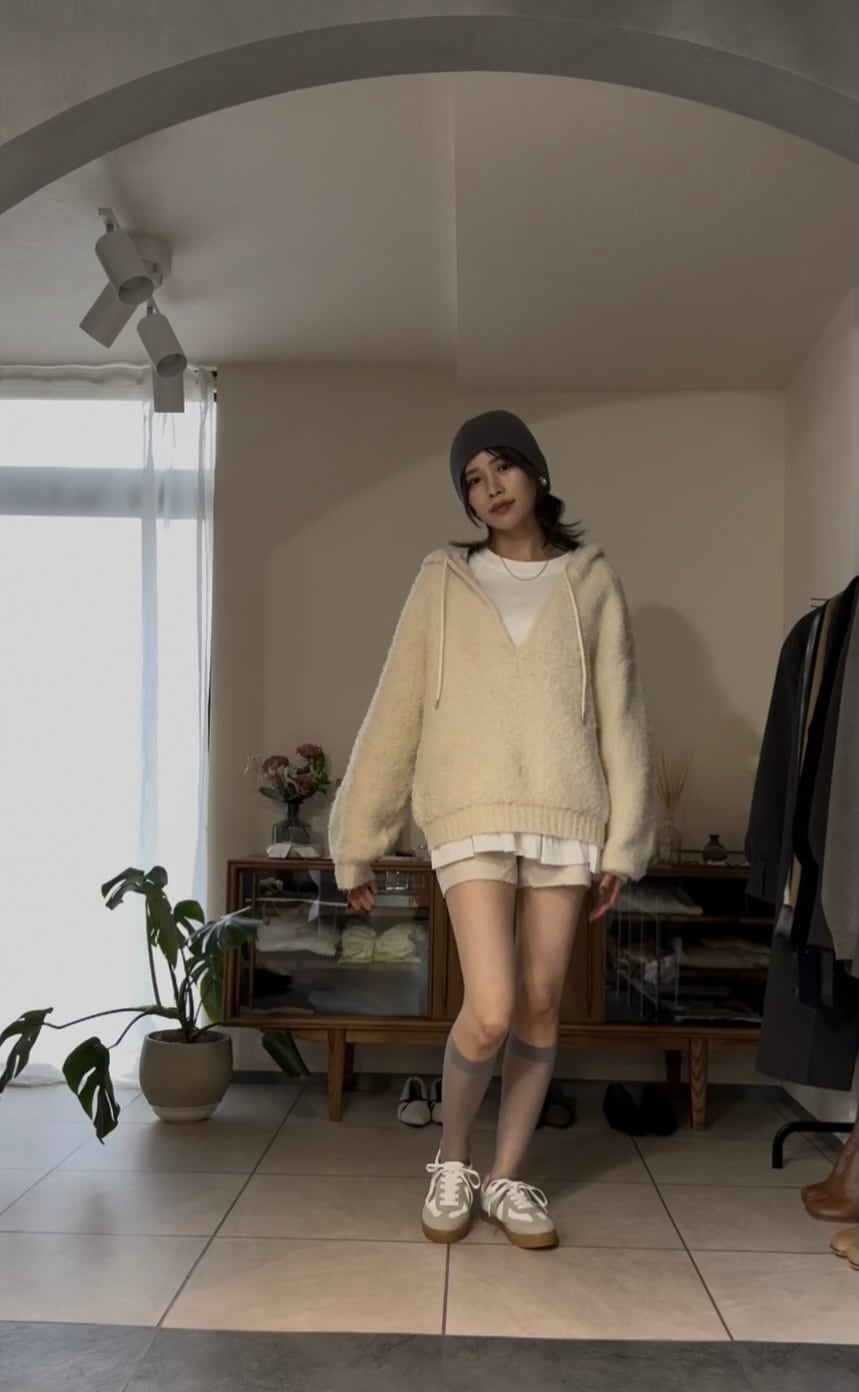 アクリル66%、ナイロン26%、毛7%、ポリウレタン1%