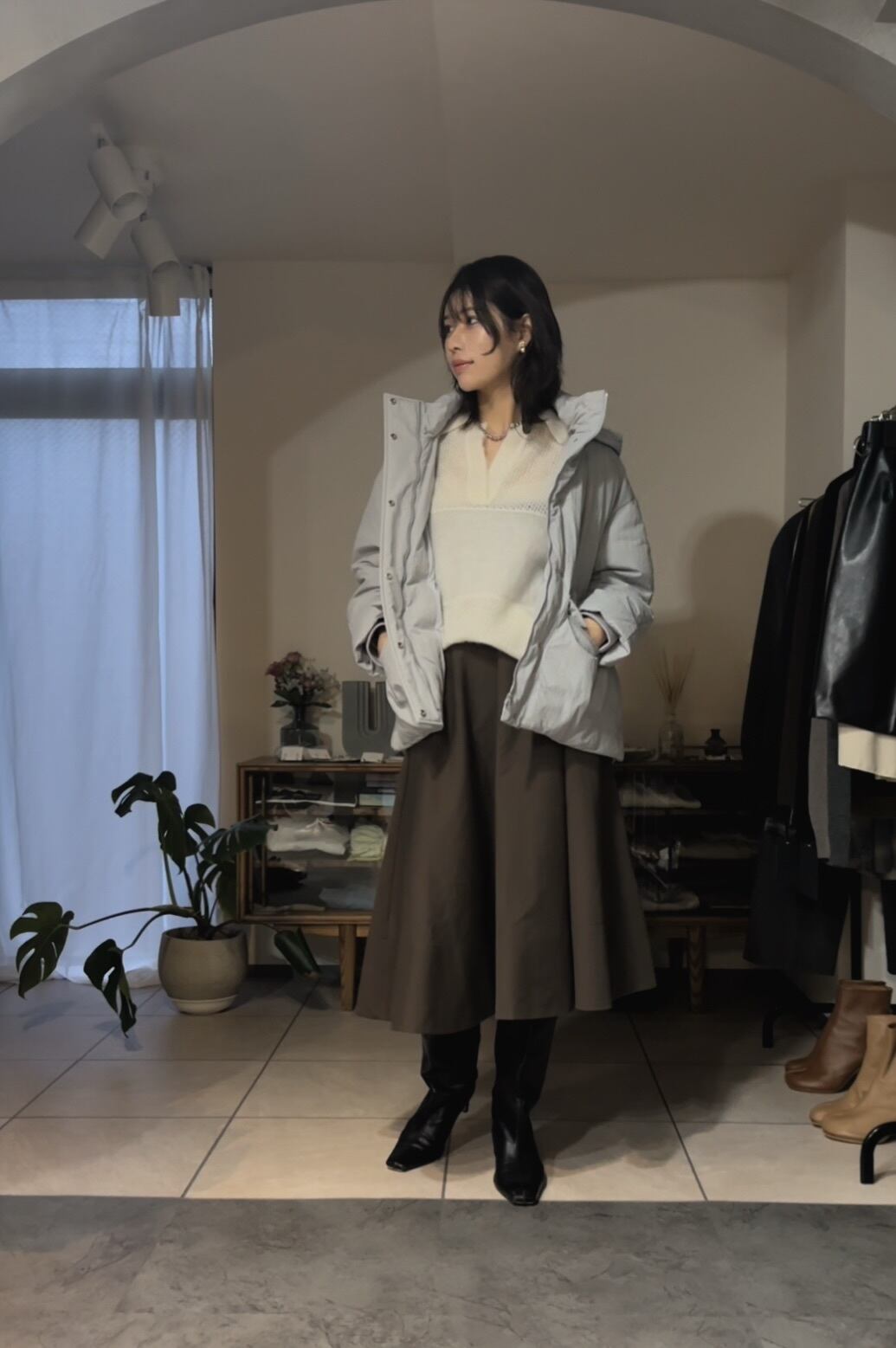 裾はドロストデザインで調節して風が入り込まないようにしたり、サイズ感をコンパクトに、シルエットにさらに丸みをプラスできます。