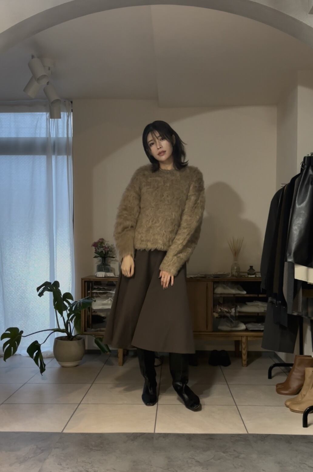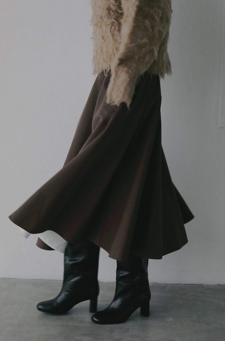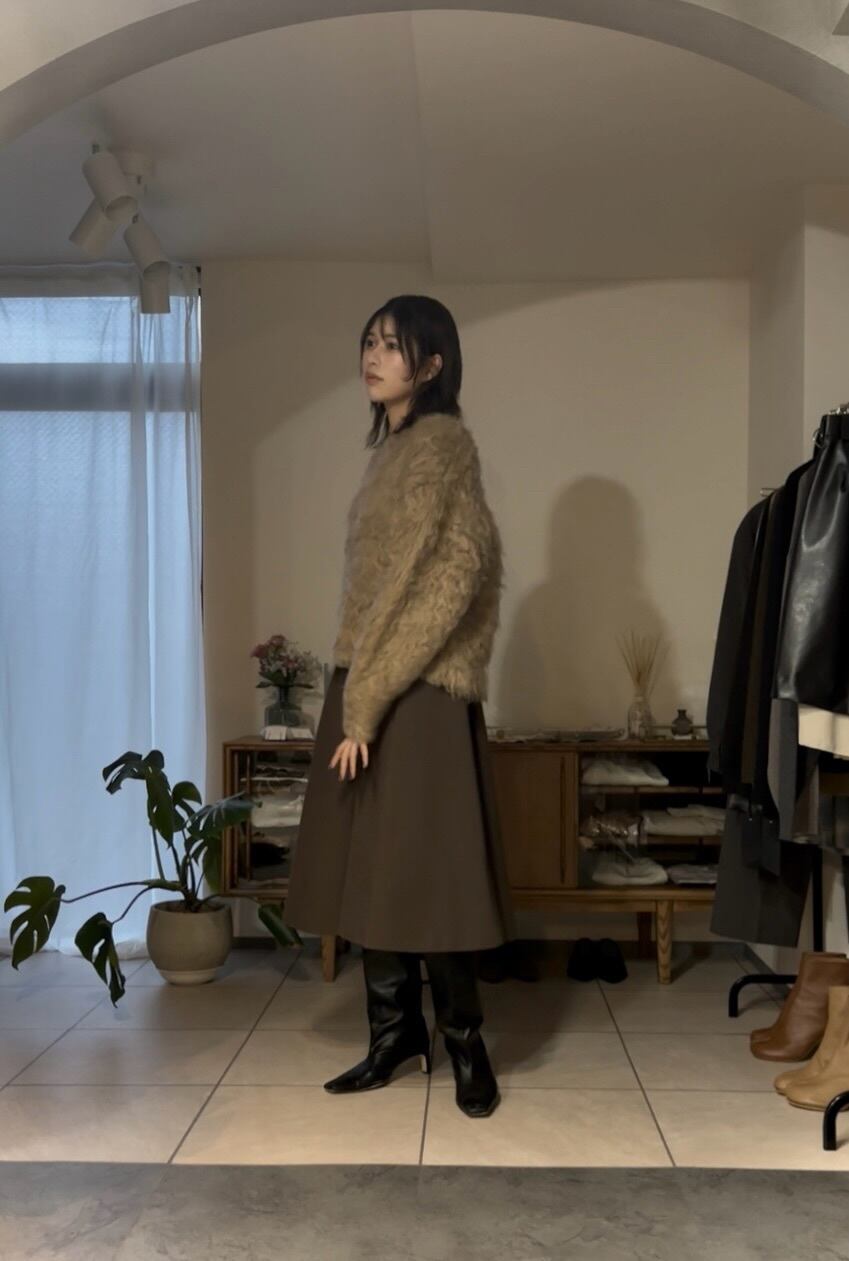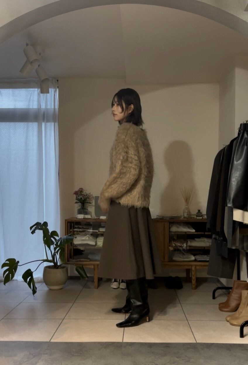 ミドル丈なので足元はブーツやソックスを合わせたりとさまざまな着こなしを楽しめます。
