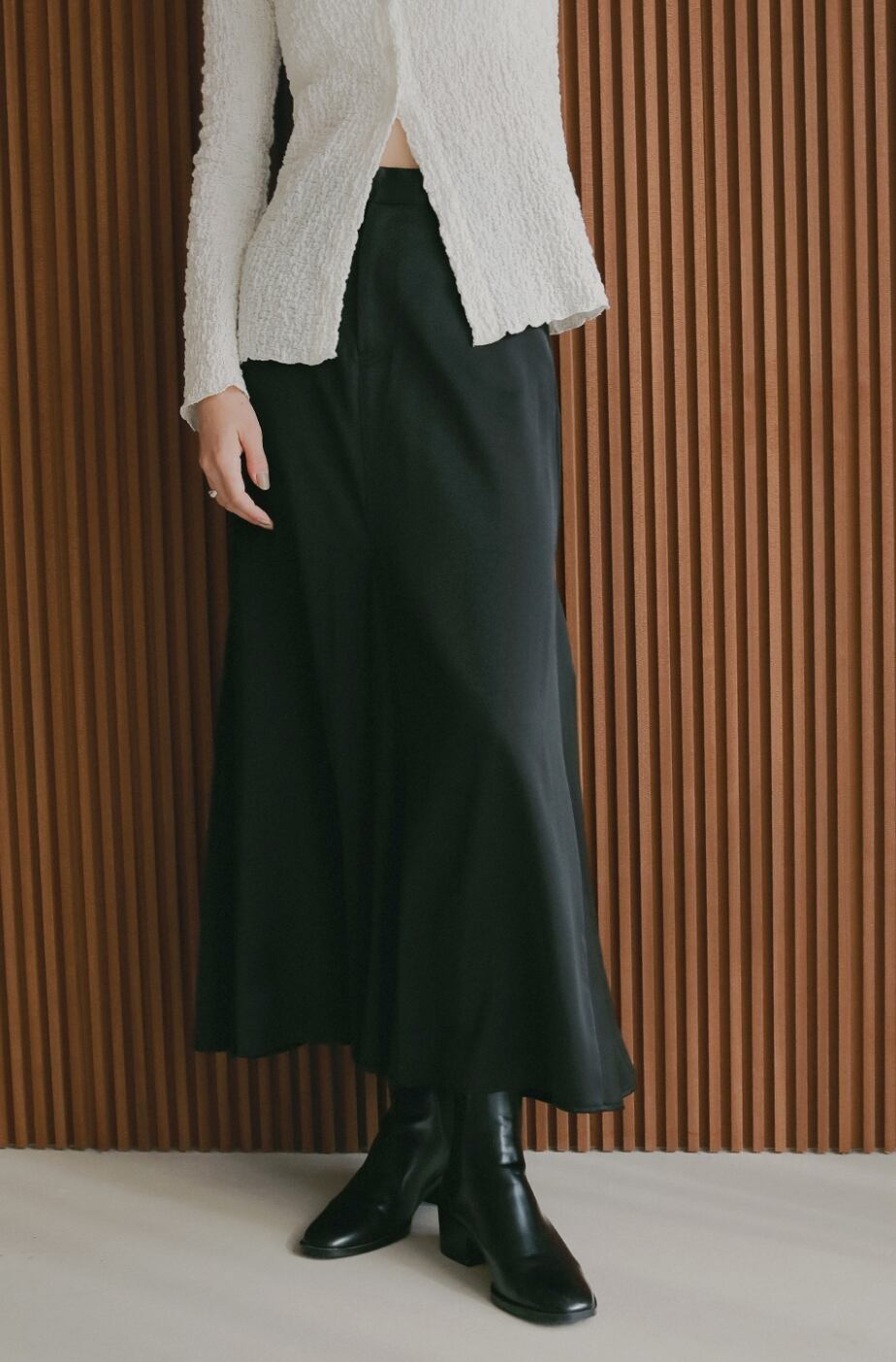 ほど良い光沢感のあるサテン素材のマーメイドスカート。