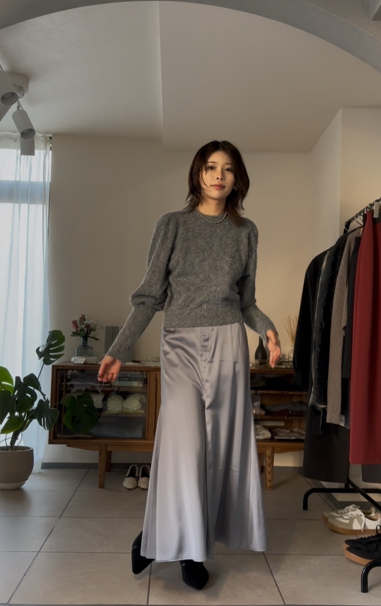 モヘア混のボリュームスリーブニット。