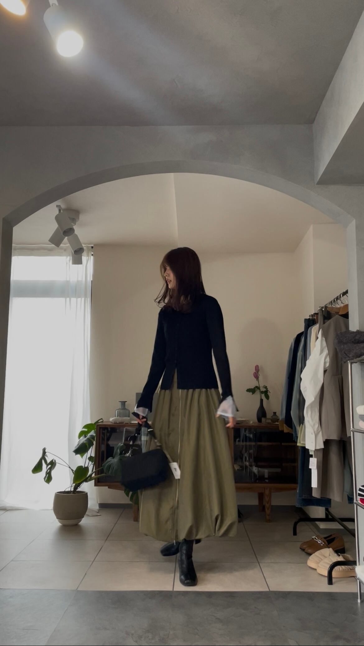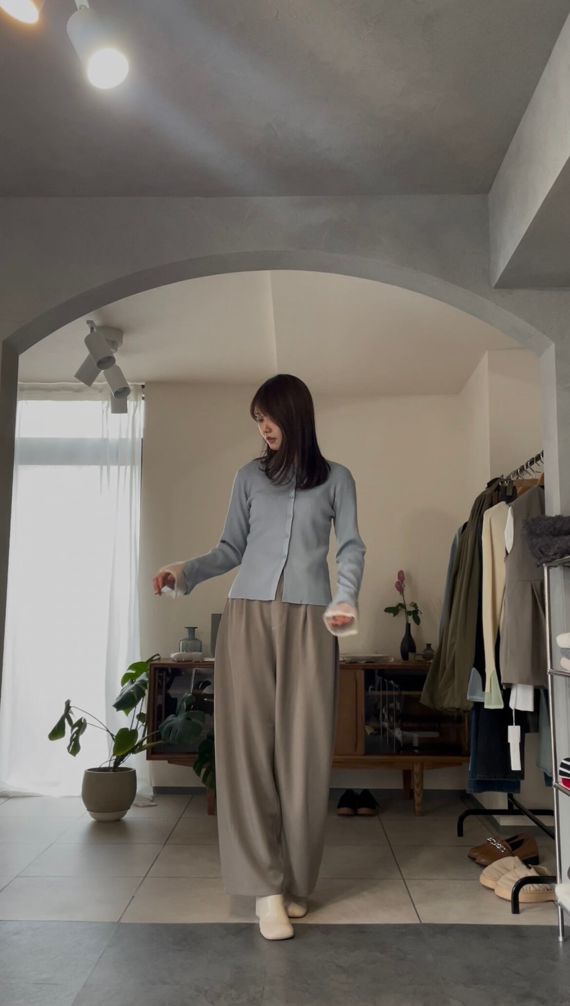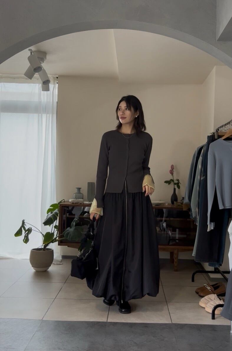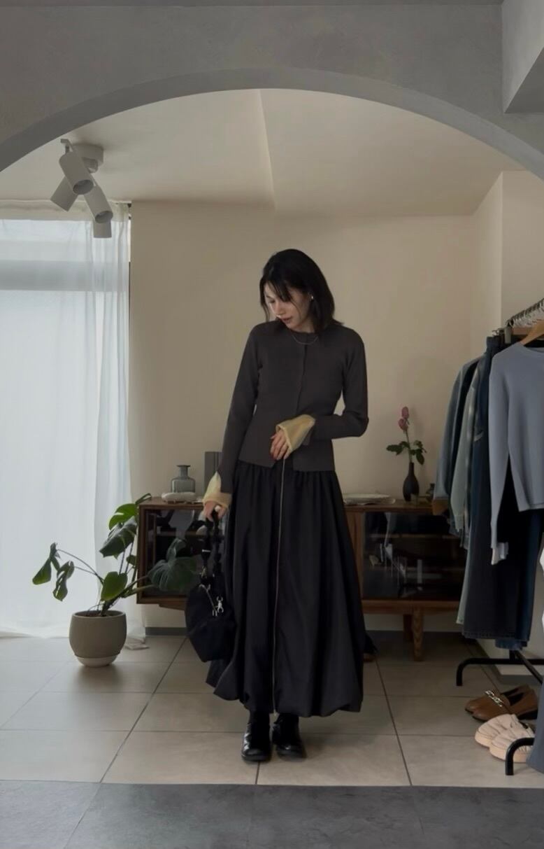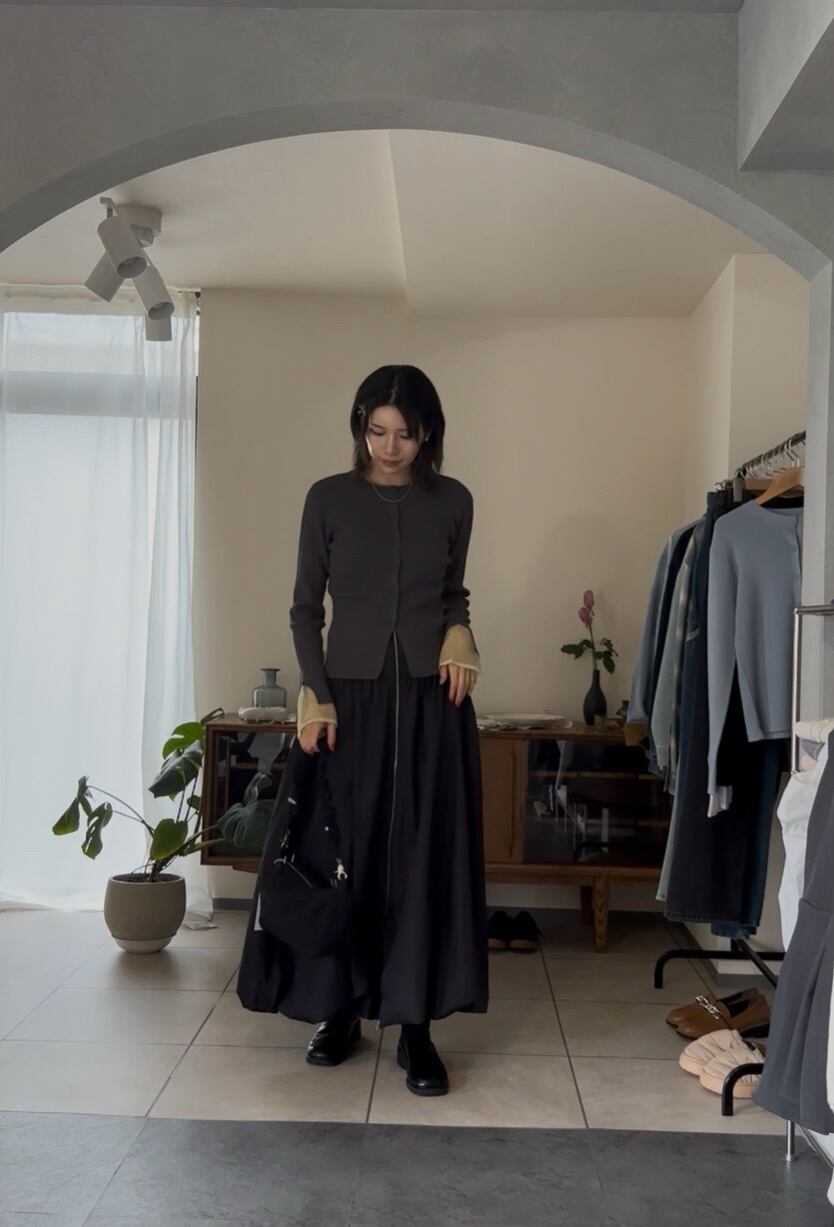 まだ寒さの残る時期は、ジャケットなどを合わせて、袖口からシアー感を見せるのもオススメです♪