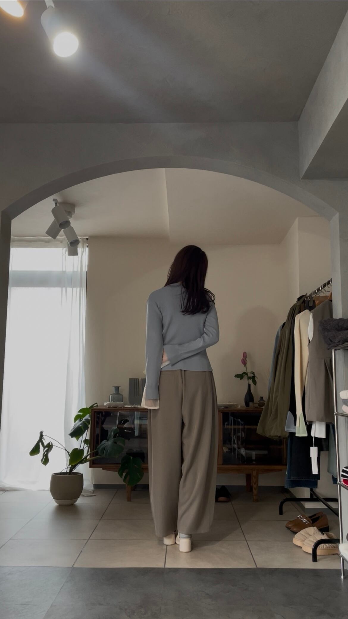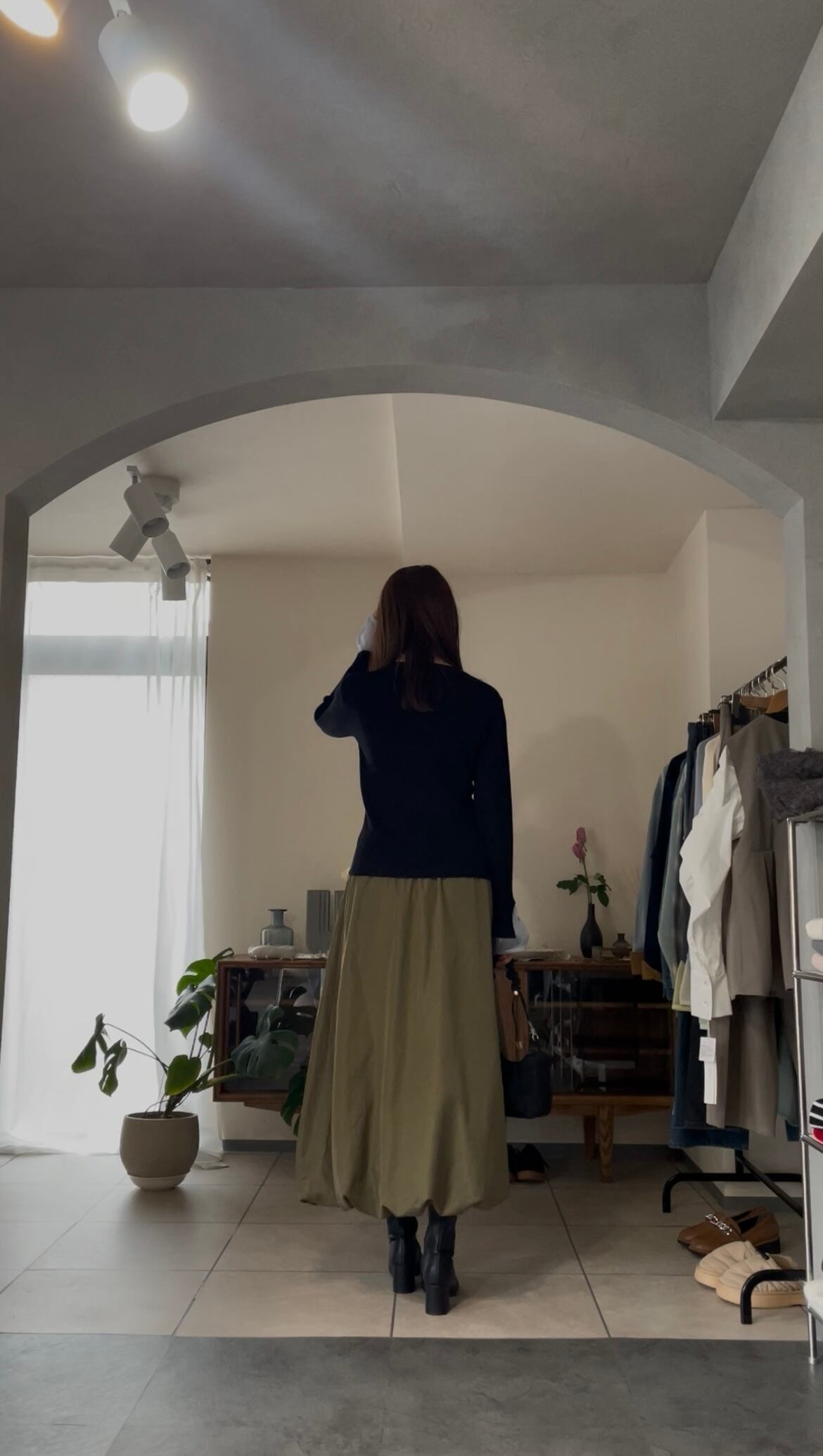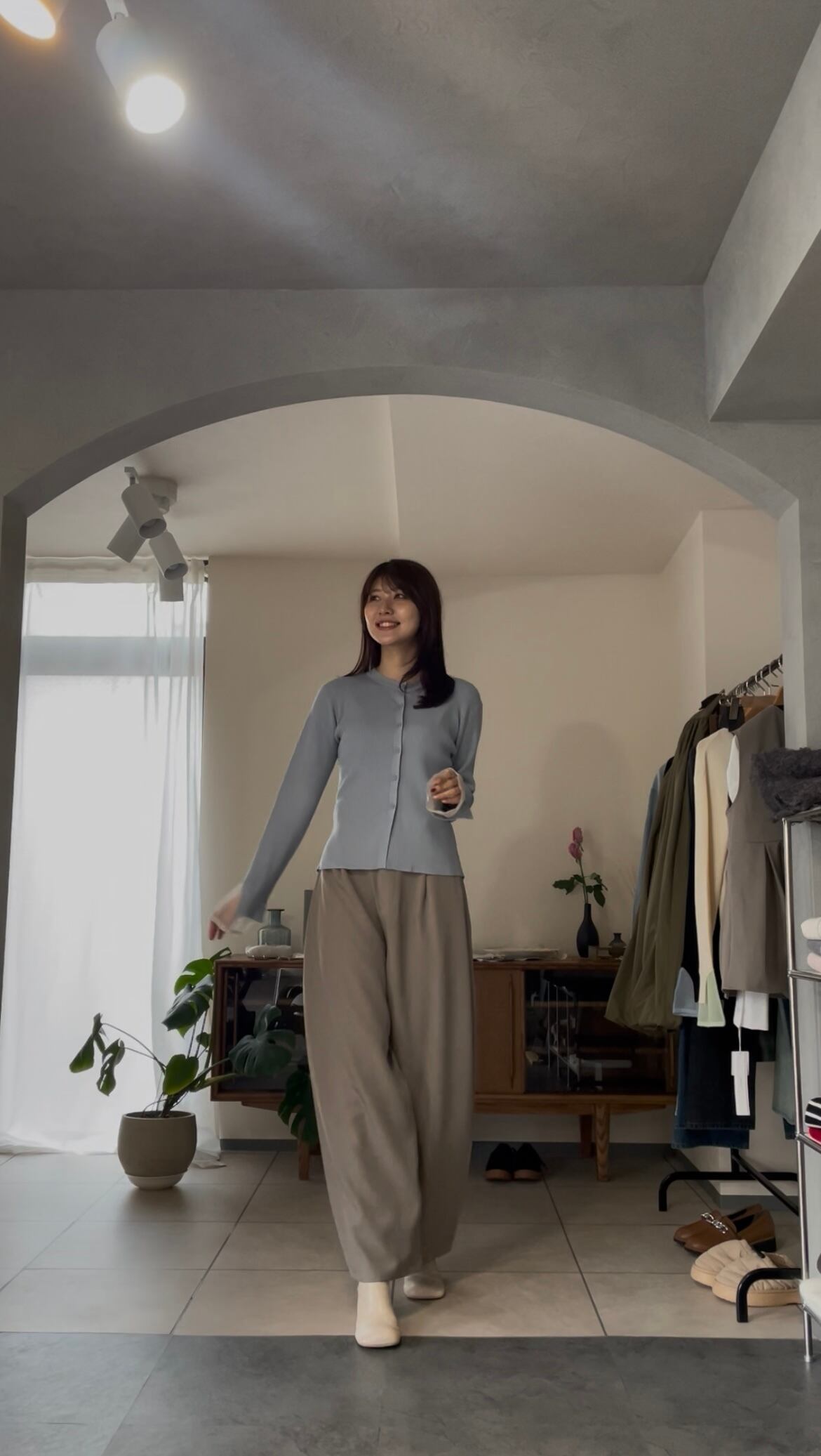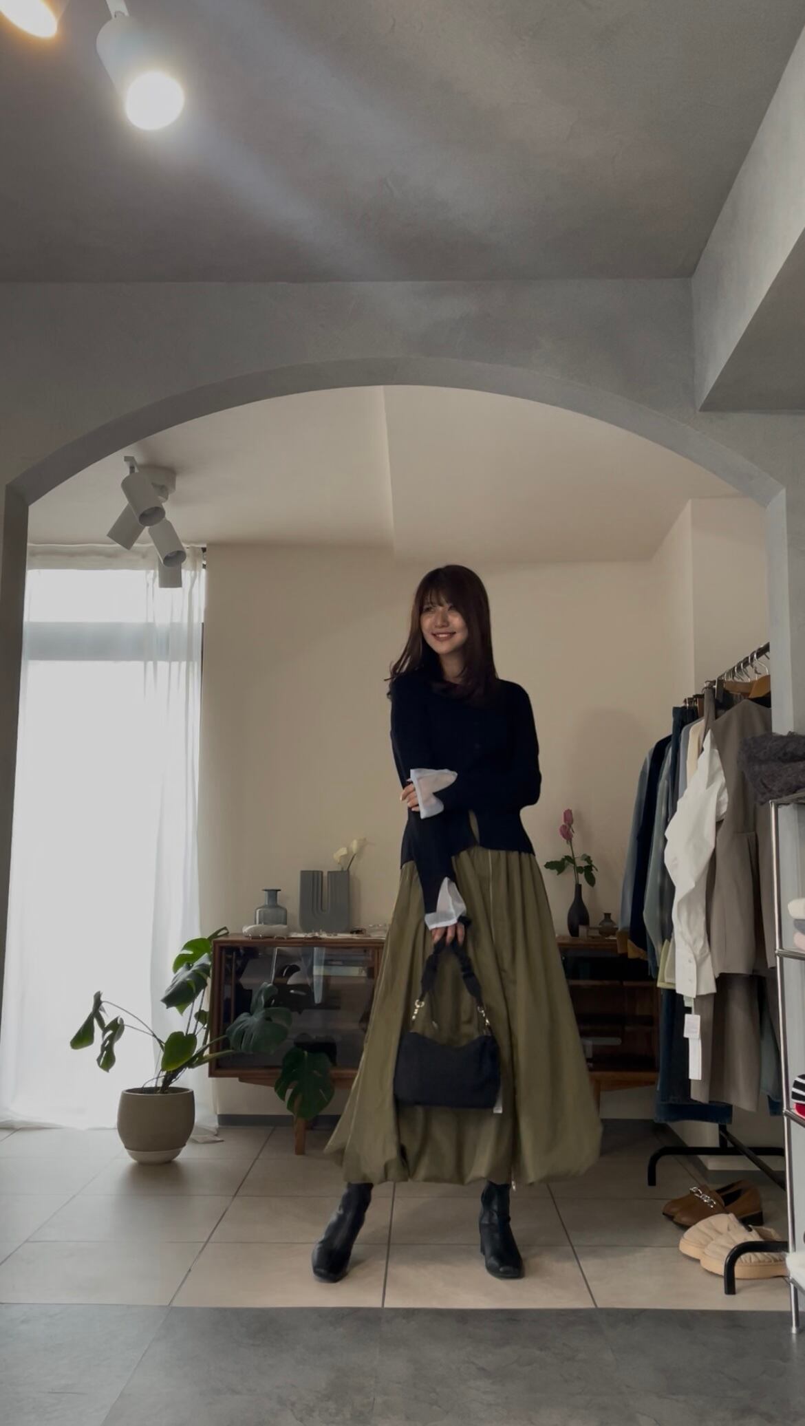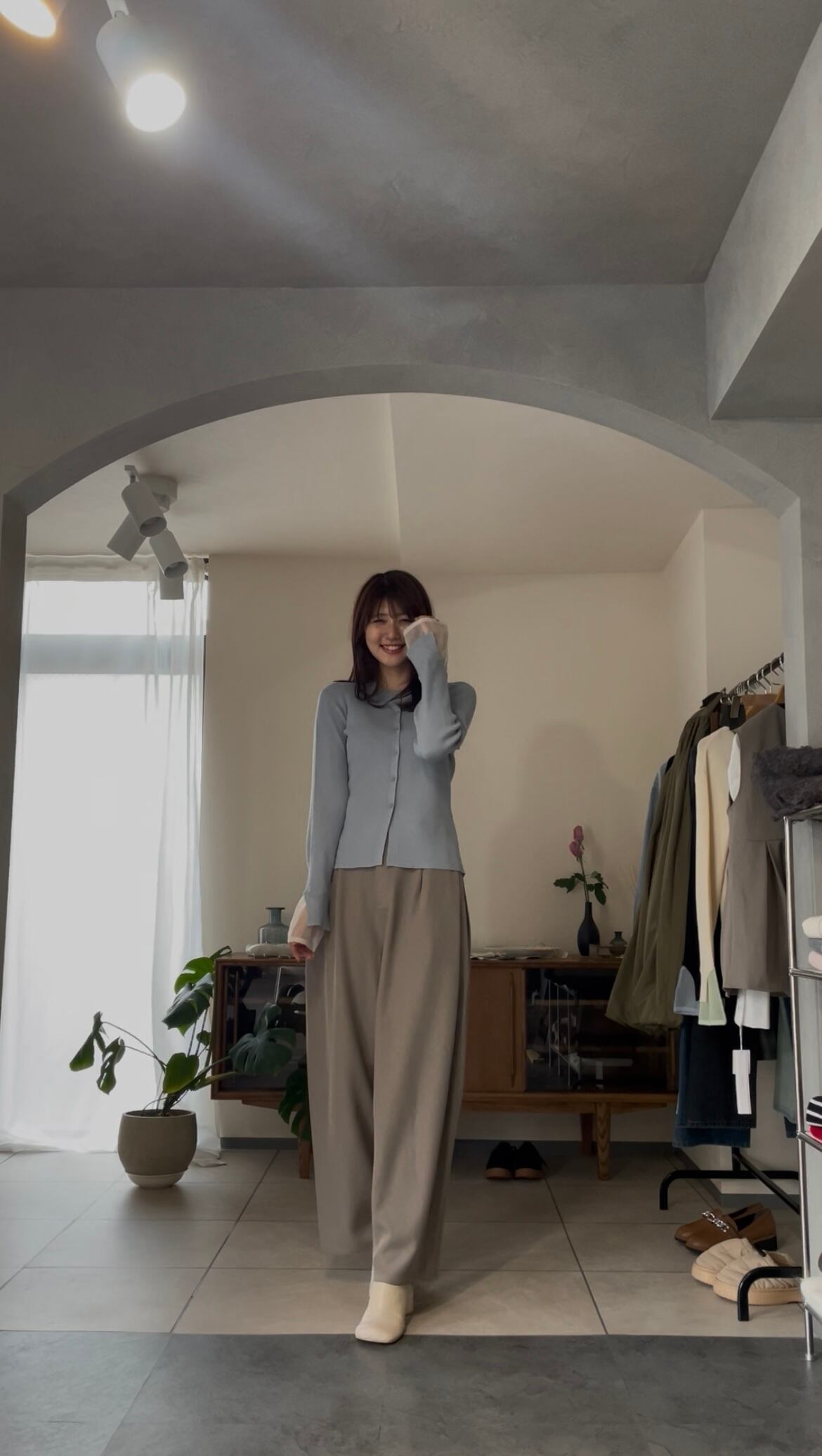 まだ寒さの残る時期は、ジャケットなどを合わせて、袖口からシアー感を見せるのもオススメです♪