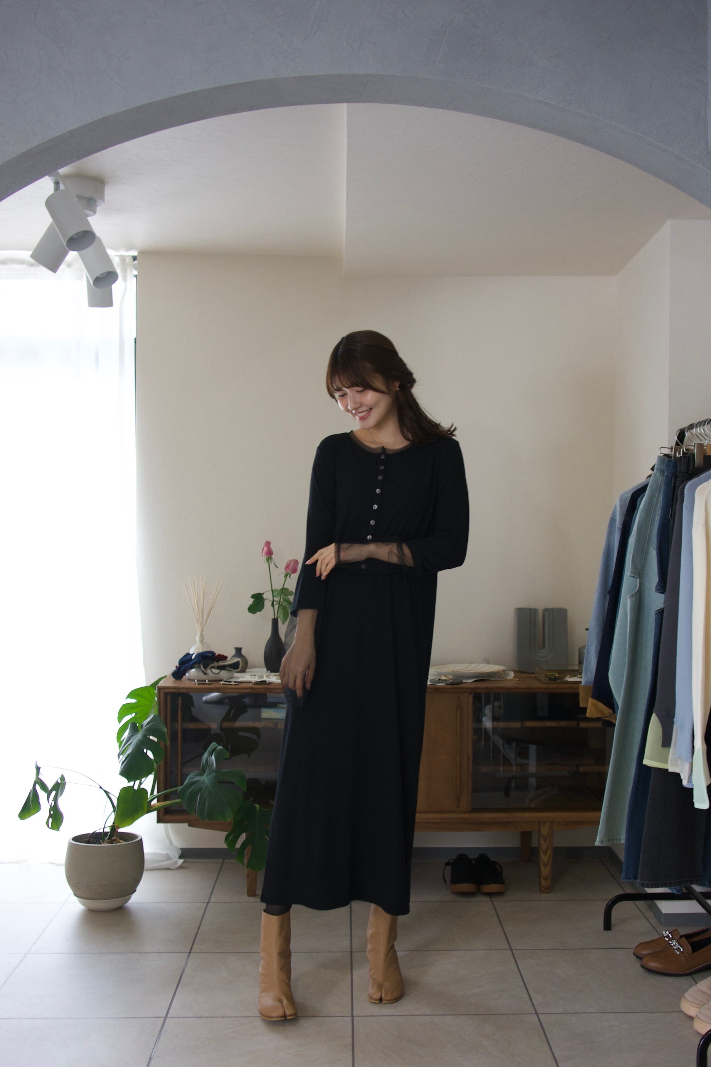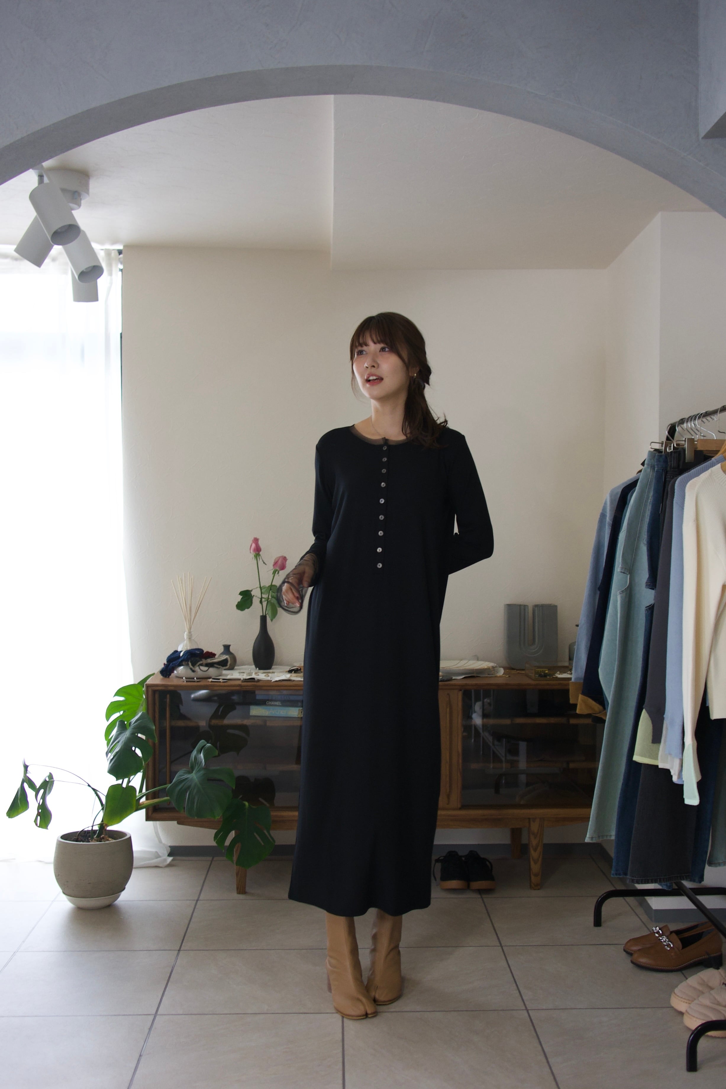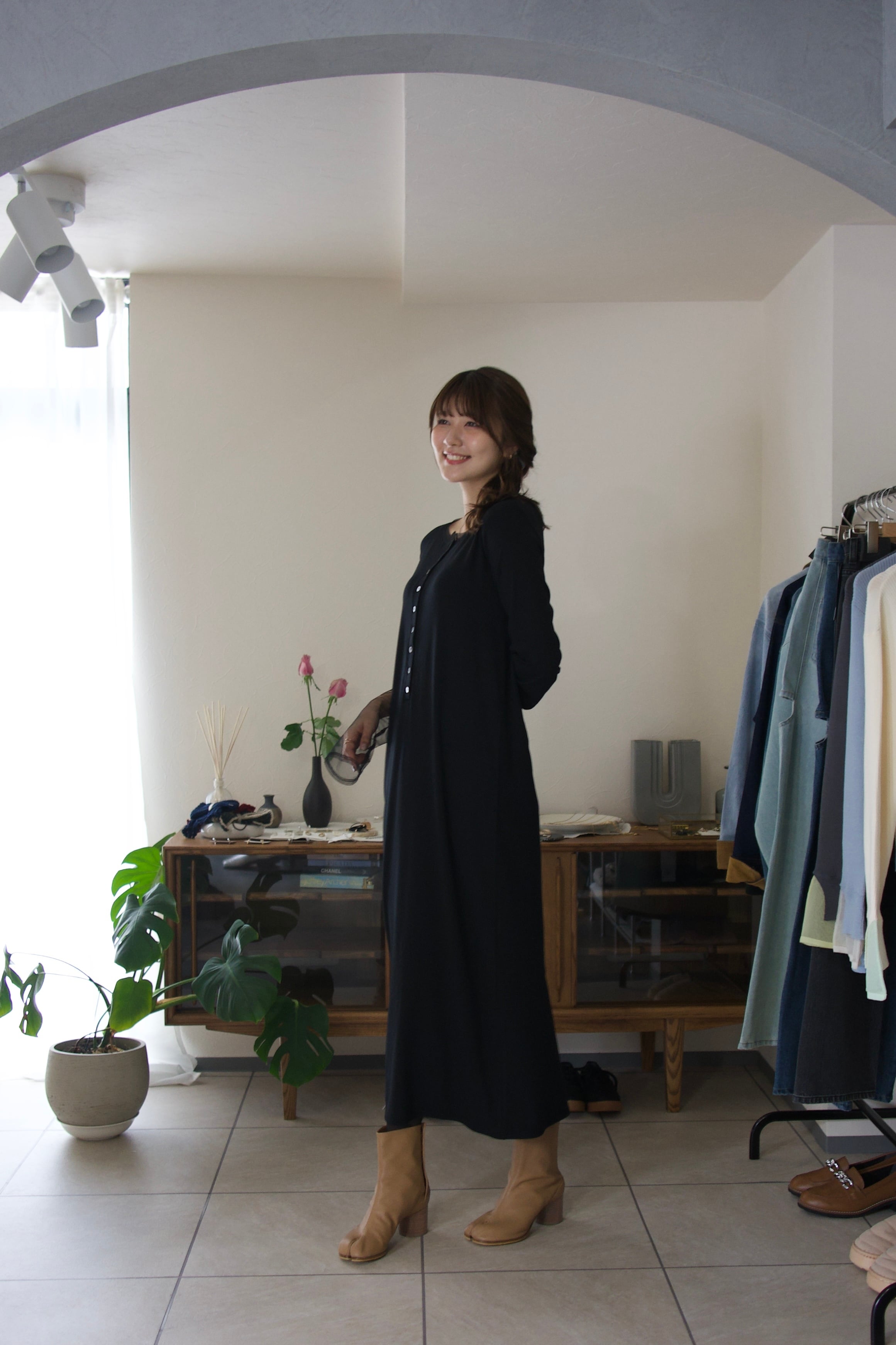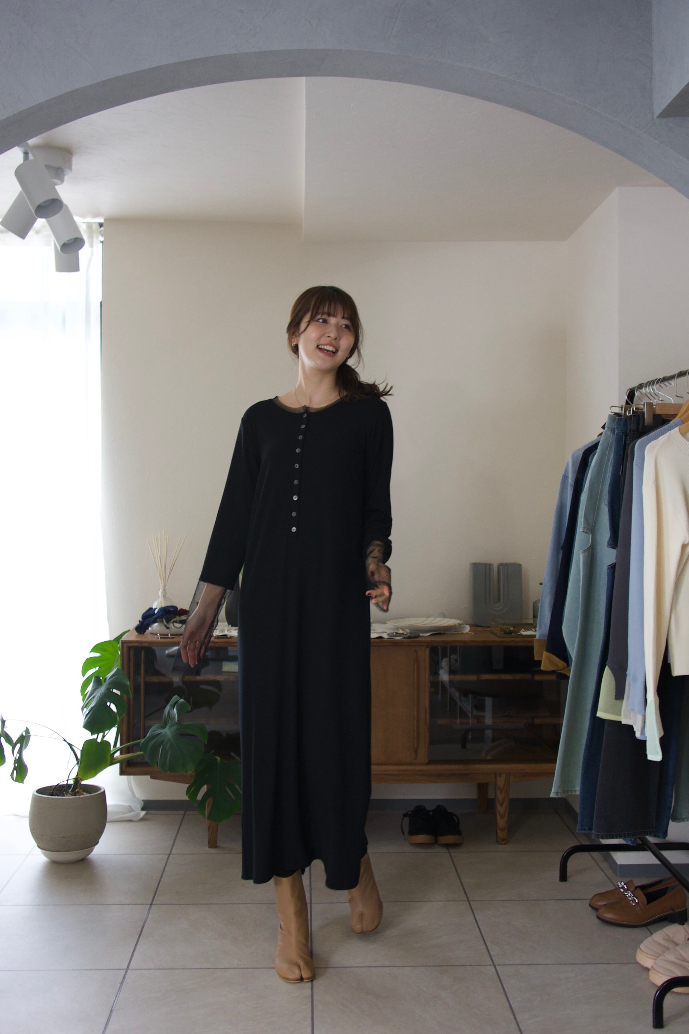 普段に着回しやすい生地感ながらも、綺麗めな印象もあるので、ジャケットなどを合わせればちょっとしたお呼ばれシーンにも大活躍のワンピースです。