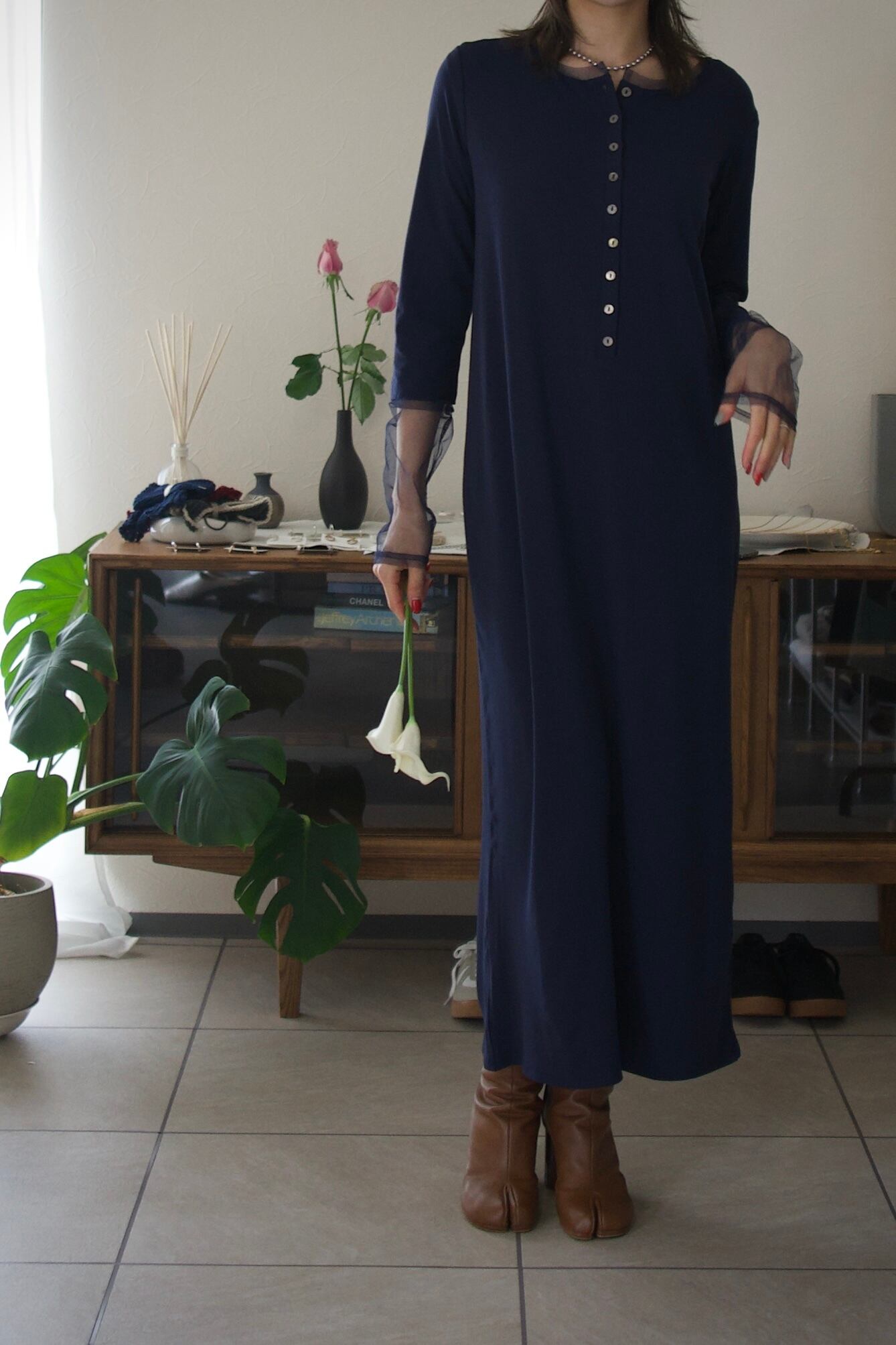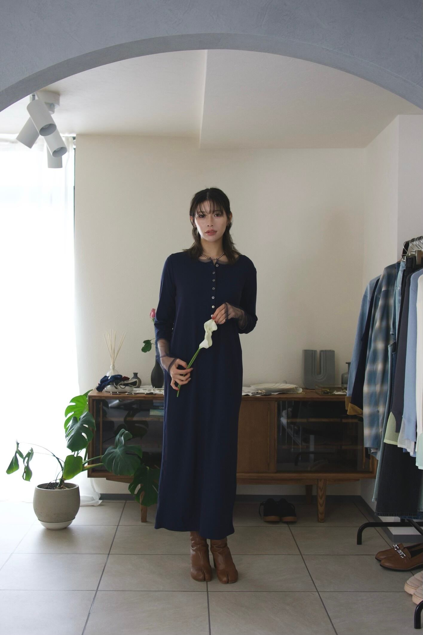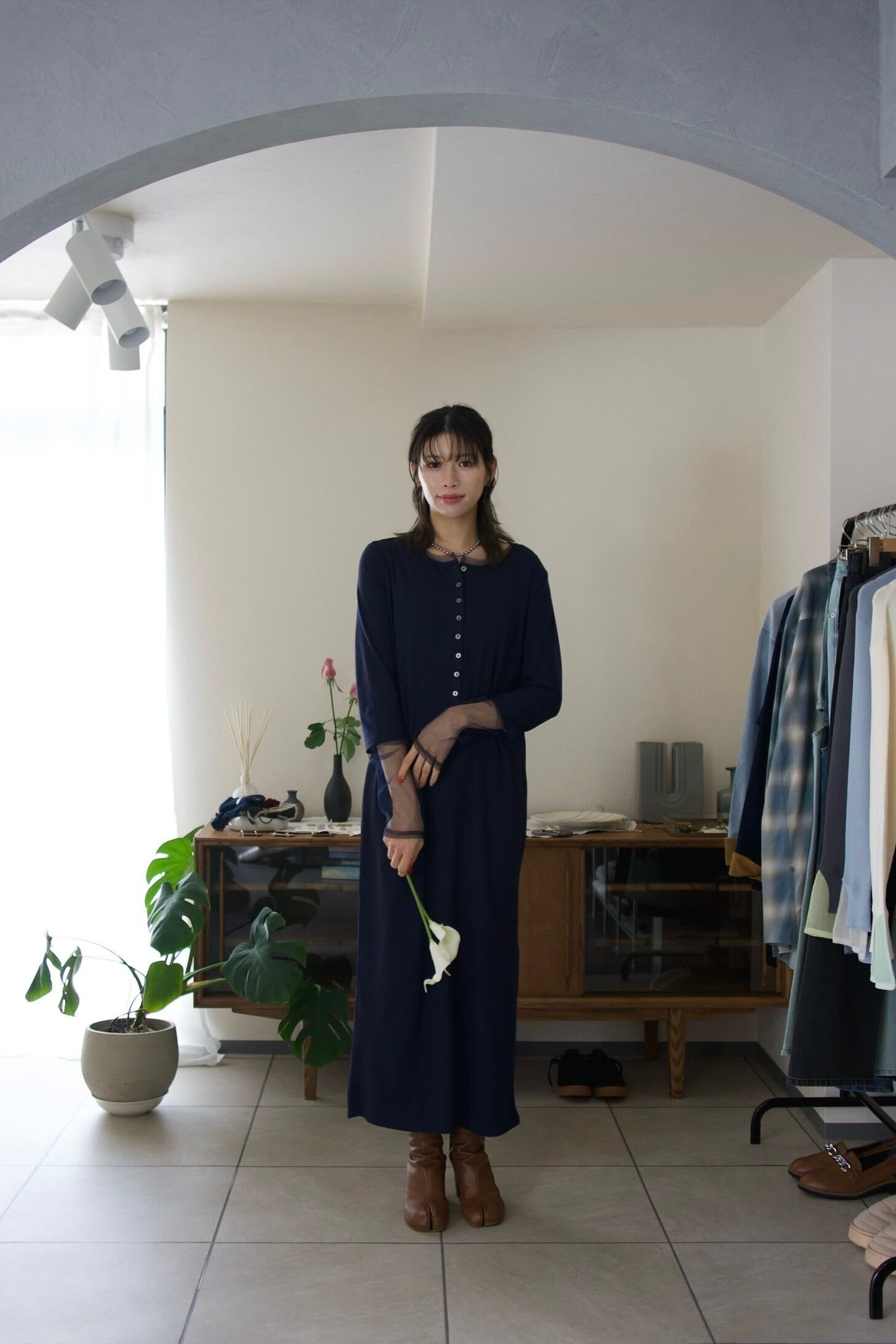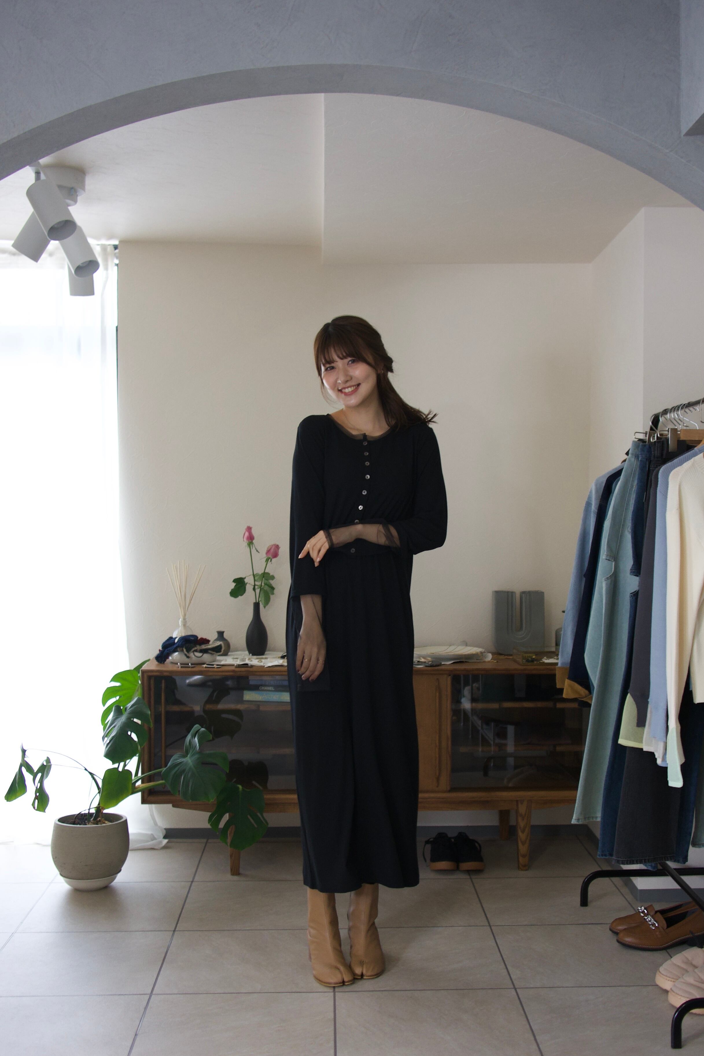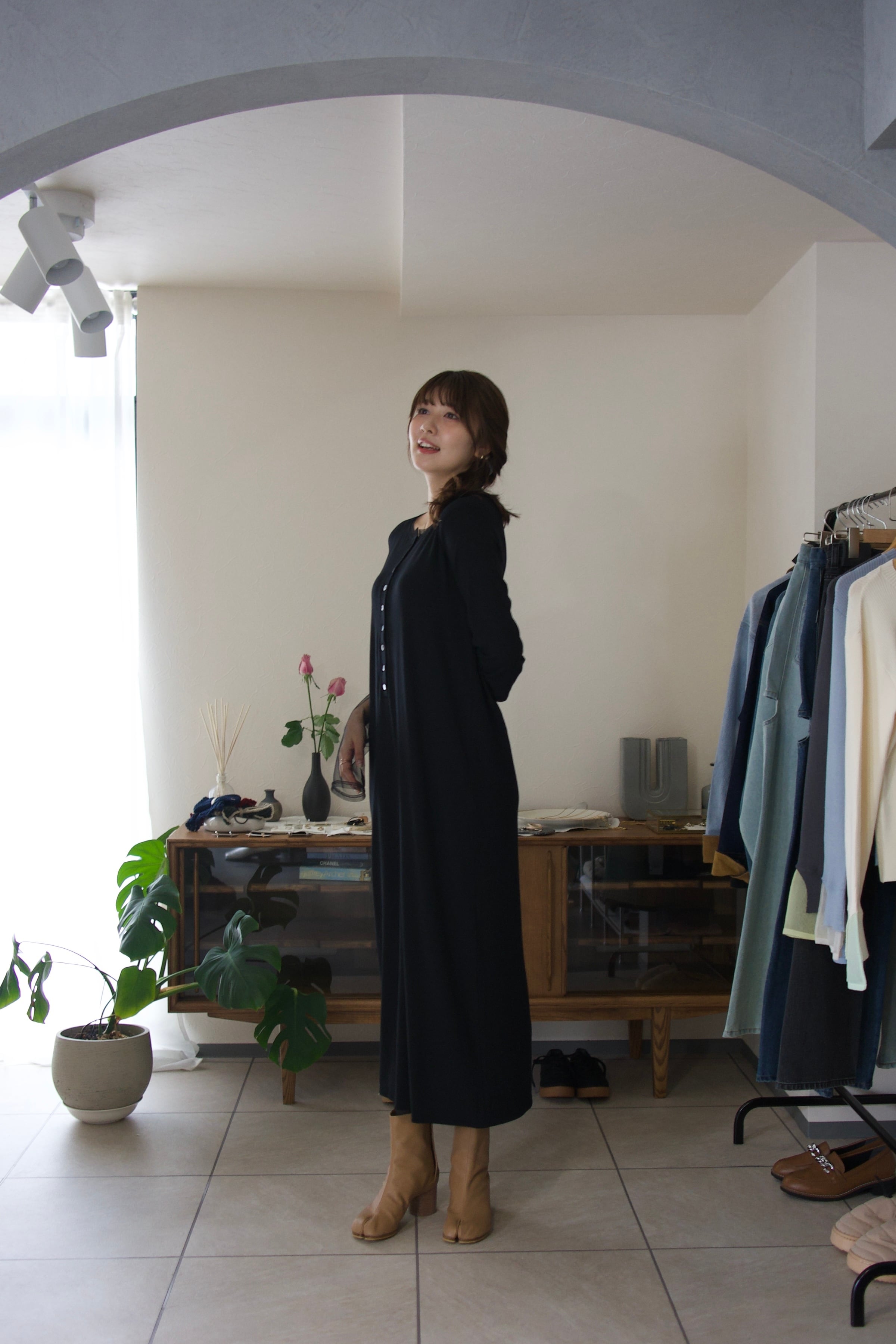 普段に着回しやすい生地感ながらも、綺麗めな印象もあるので、ジャケットなどを合わせればちょっとしたお呼ばれシーンにも大活躍のワンピースです。