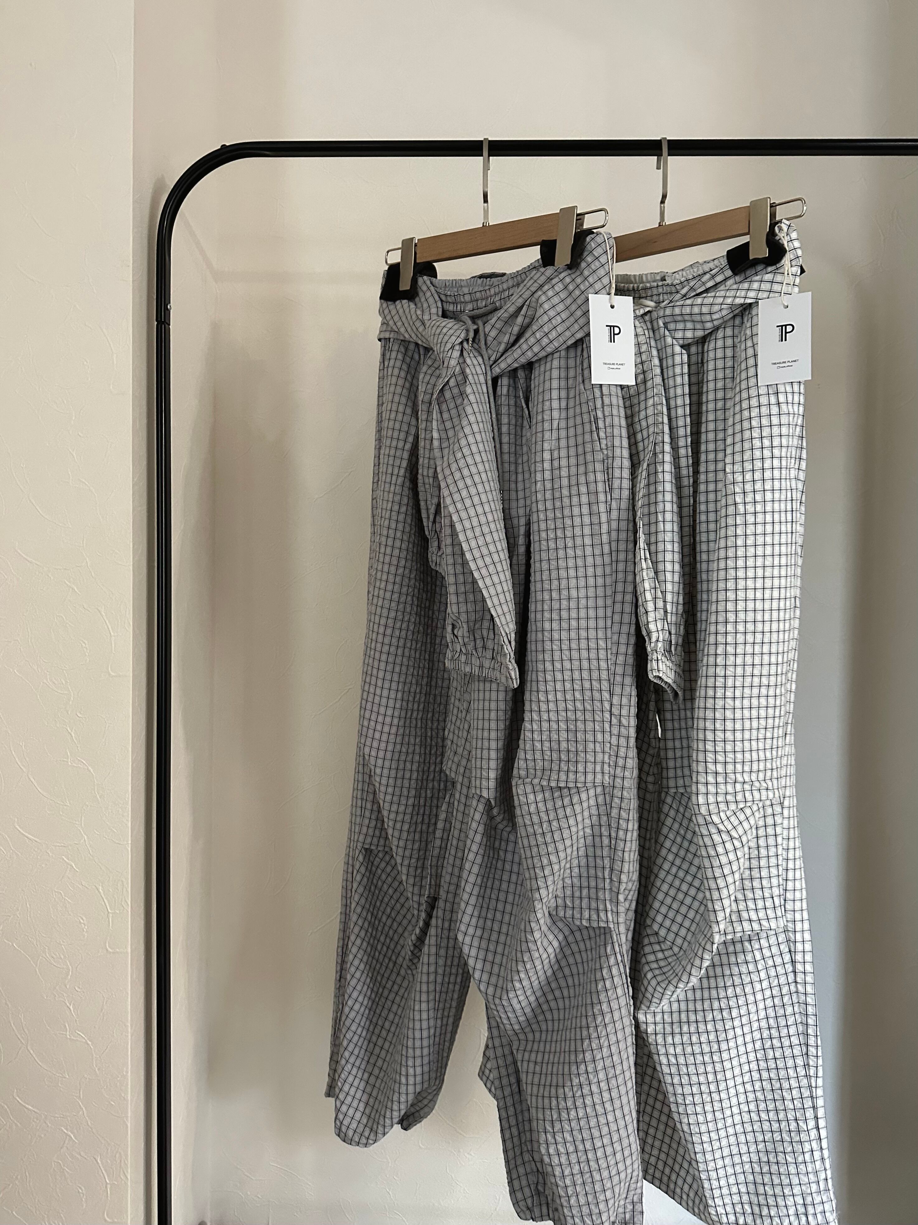 腰巻きデザインがオシャレ度高まるチェックジョガーパンツ。
