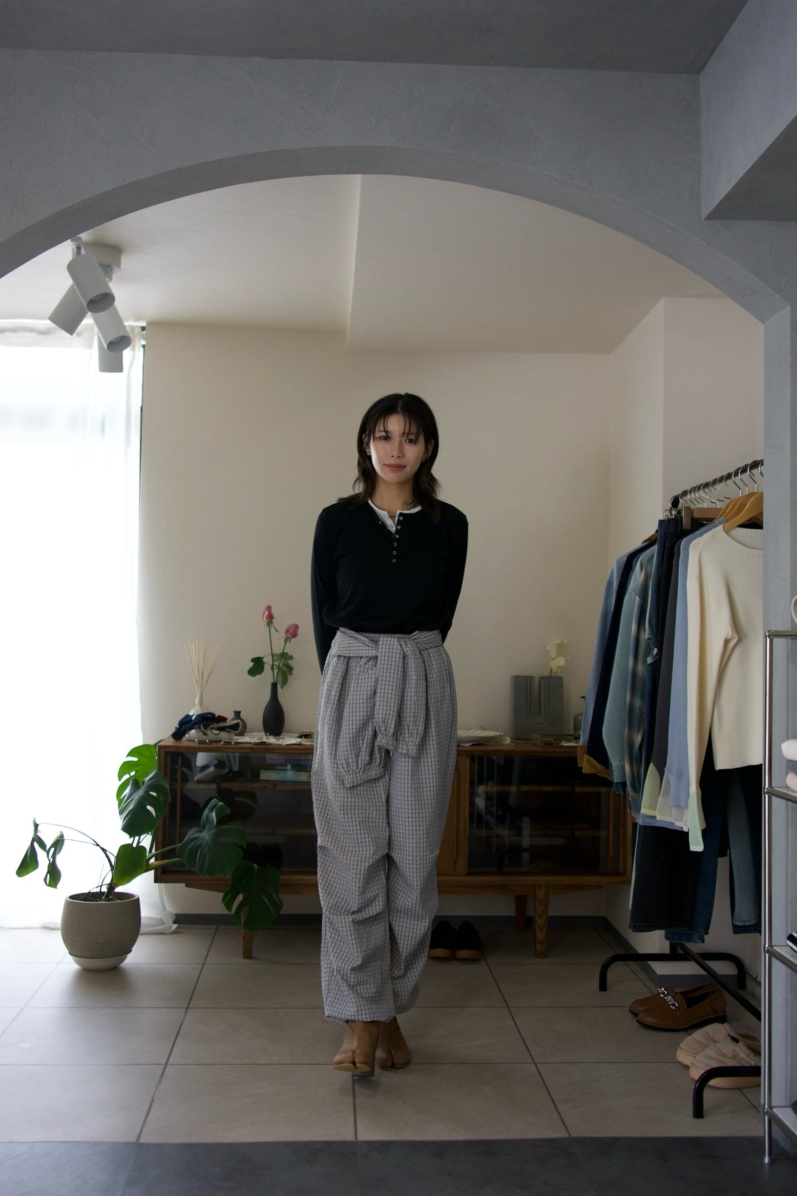 腰巻き部分はボタンで取り外しが可能で、シンプルなパンツとしても着用可能です◎