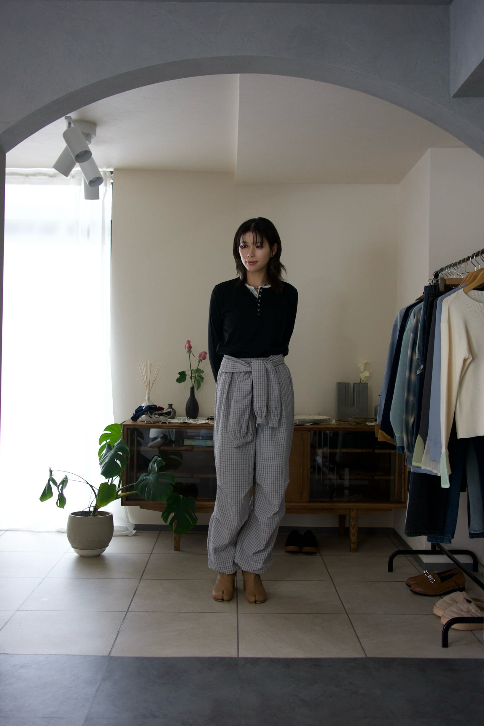 ウエストは総ゴムでストレスフリーなはき心地と、裾はドロスト付きで絞れるので、身長を問わずに着用できるのも魅力です◎