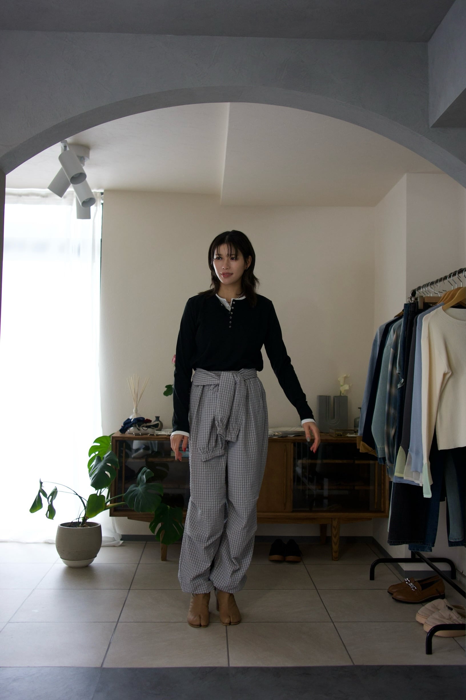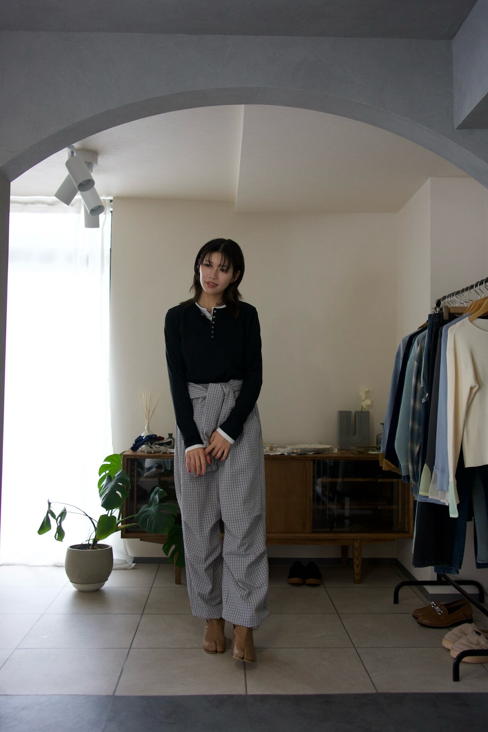 春らしい爽やかな生地感のチェック柄で、これからのシーズンはカットソーやデニムジャケットにも高相性なアイテムです。