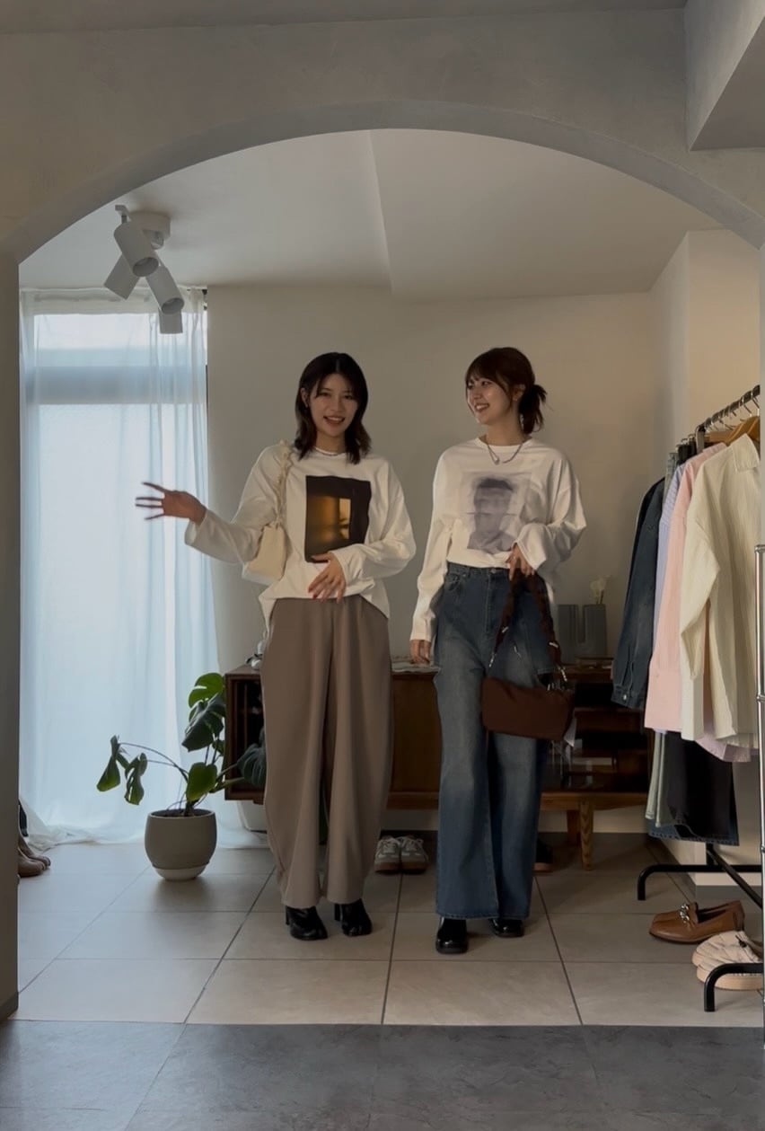 合わせやすいニュアンスカラーのプリントで、これ一枚でこなれ感あるオシャレが完成します。