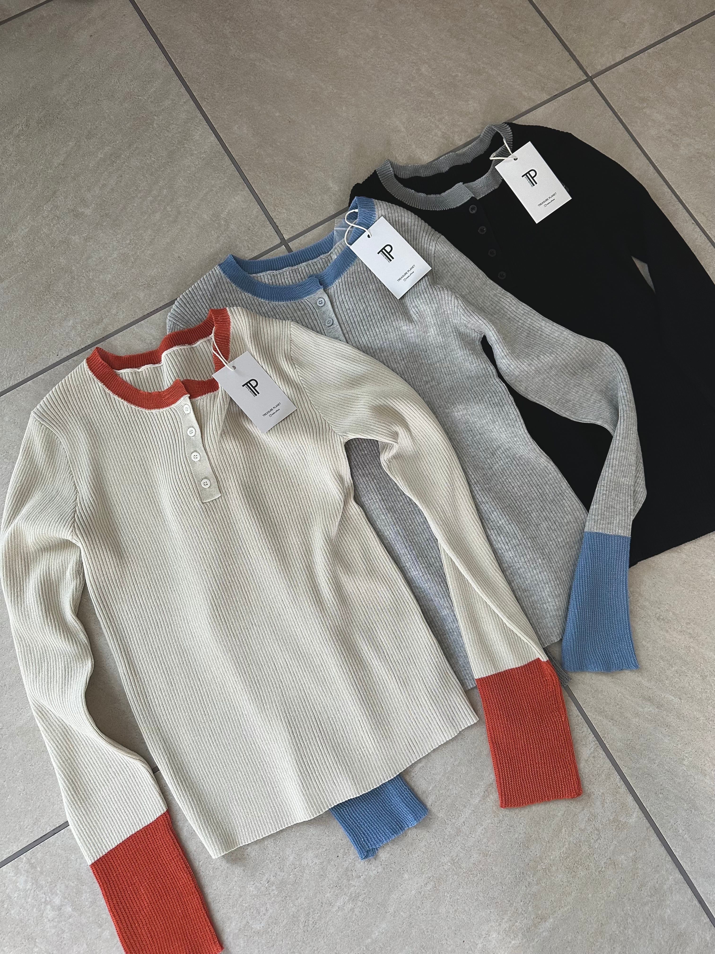 バイカラーのデザインが魅力のラメシアーヘンリーニットが登場。