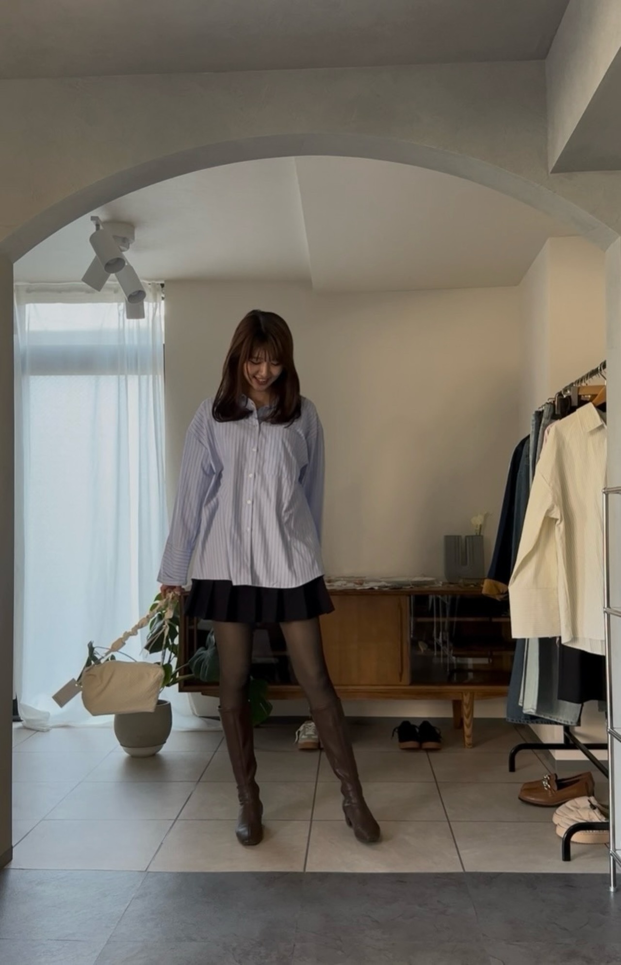 前後差のある丈感でヒップが隠れるのも嬉しいポイント!