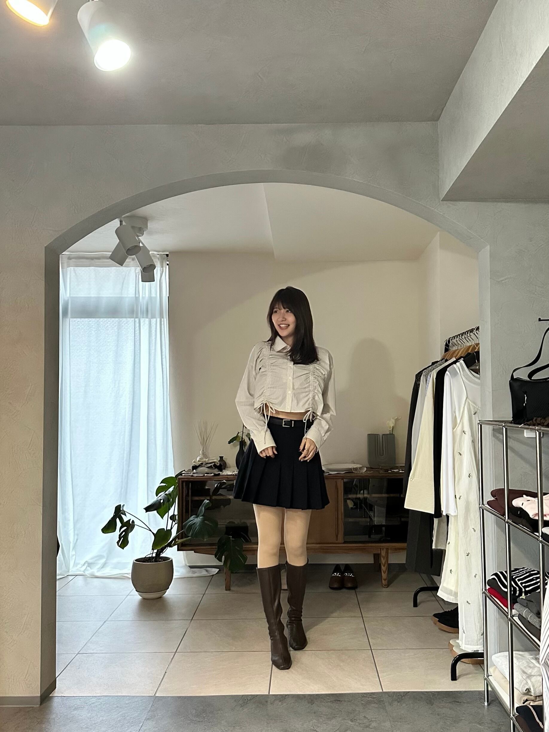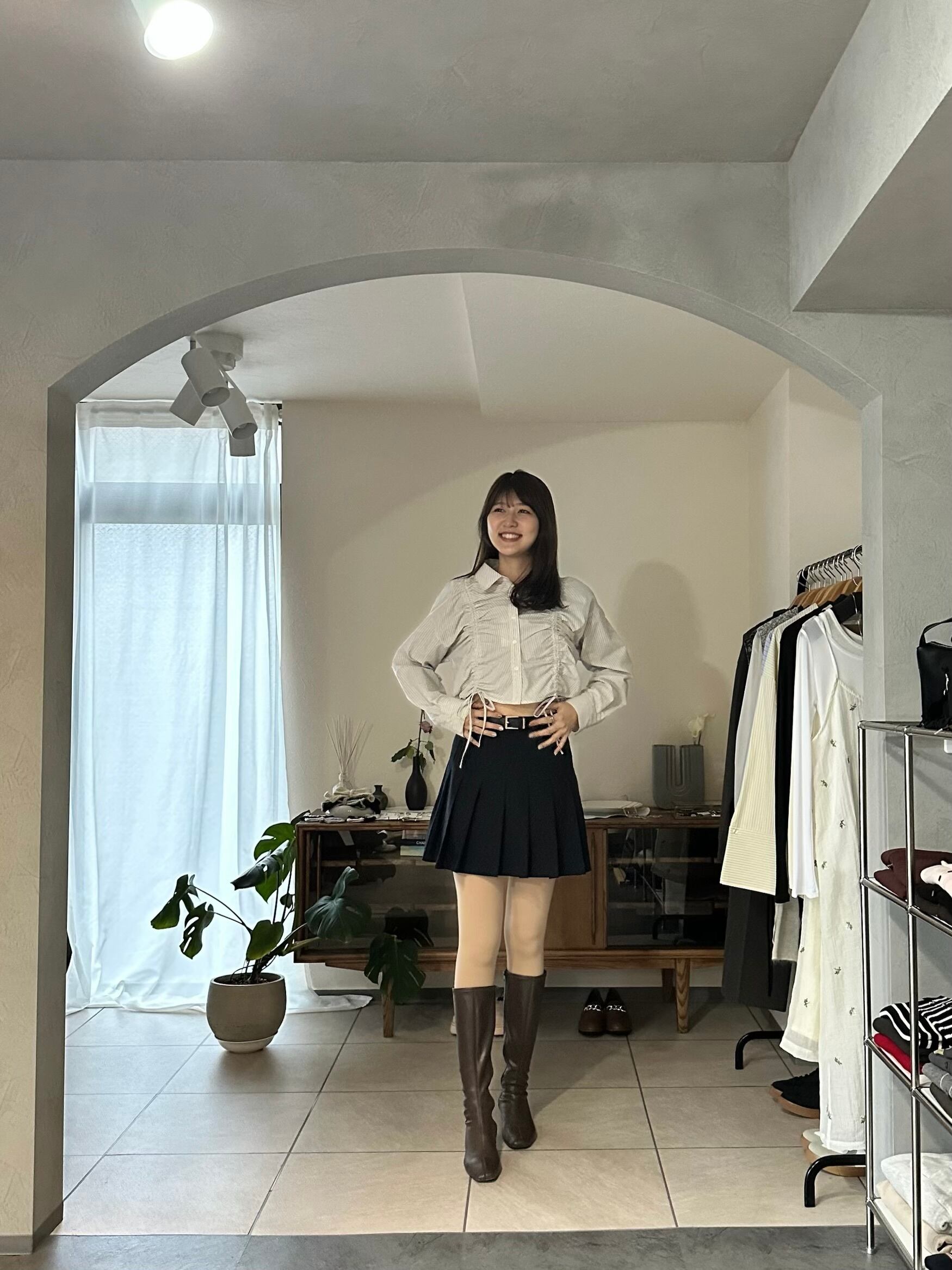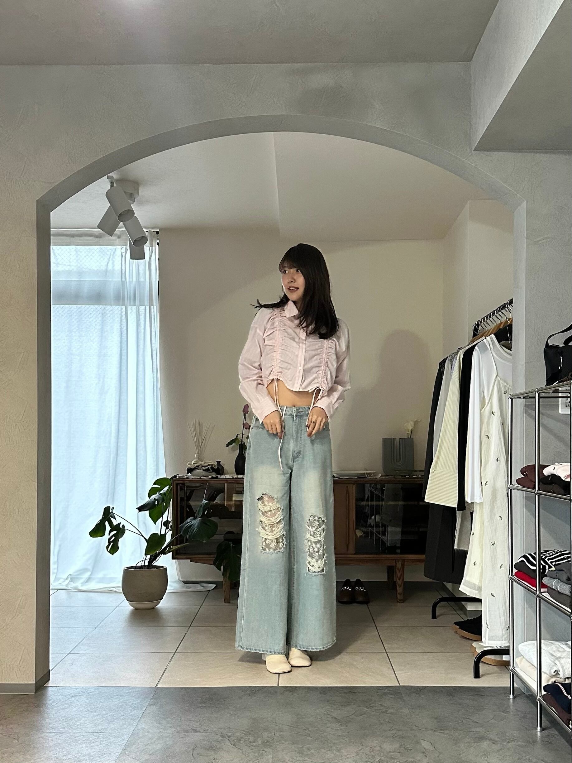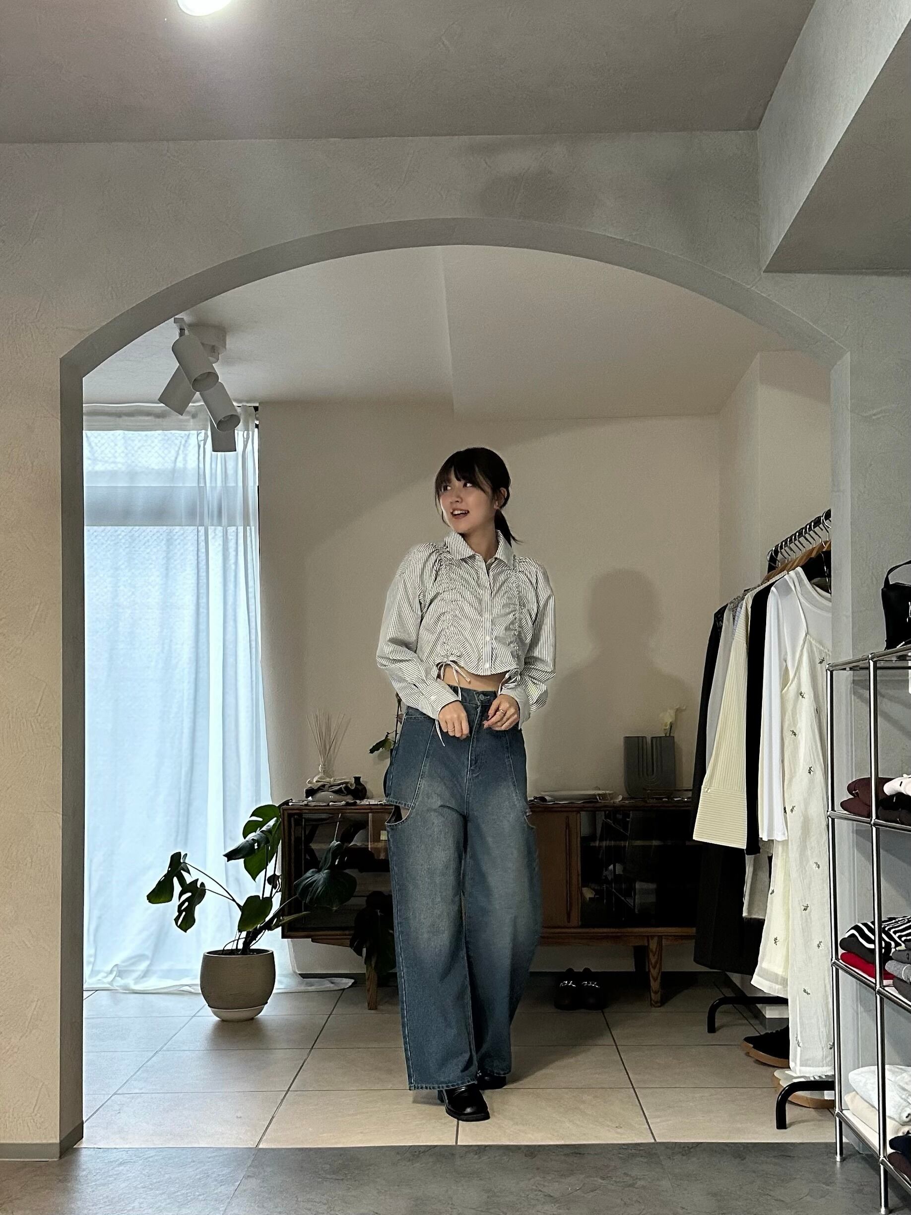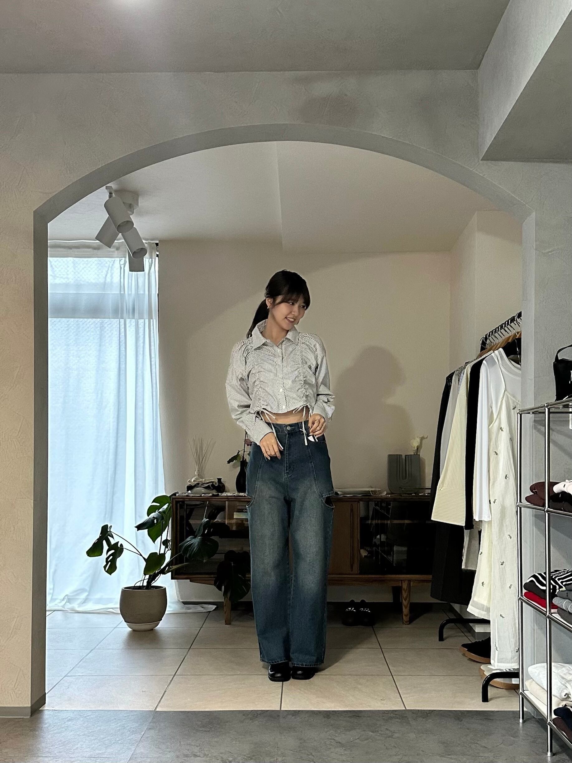 ボトムスもデニムはもちろん、スカートからスラックスまでスタイル良く合わせていただけます。