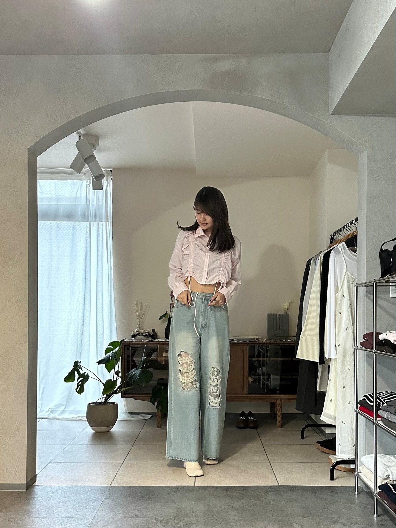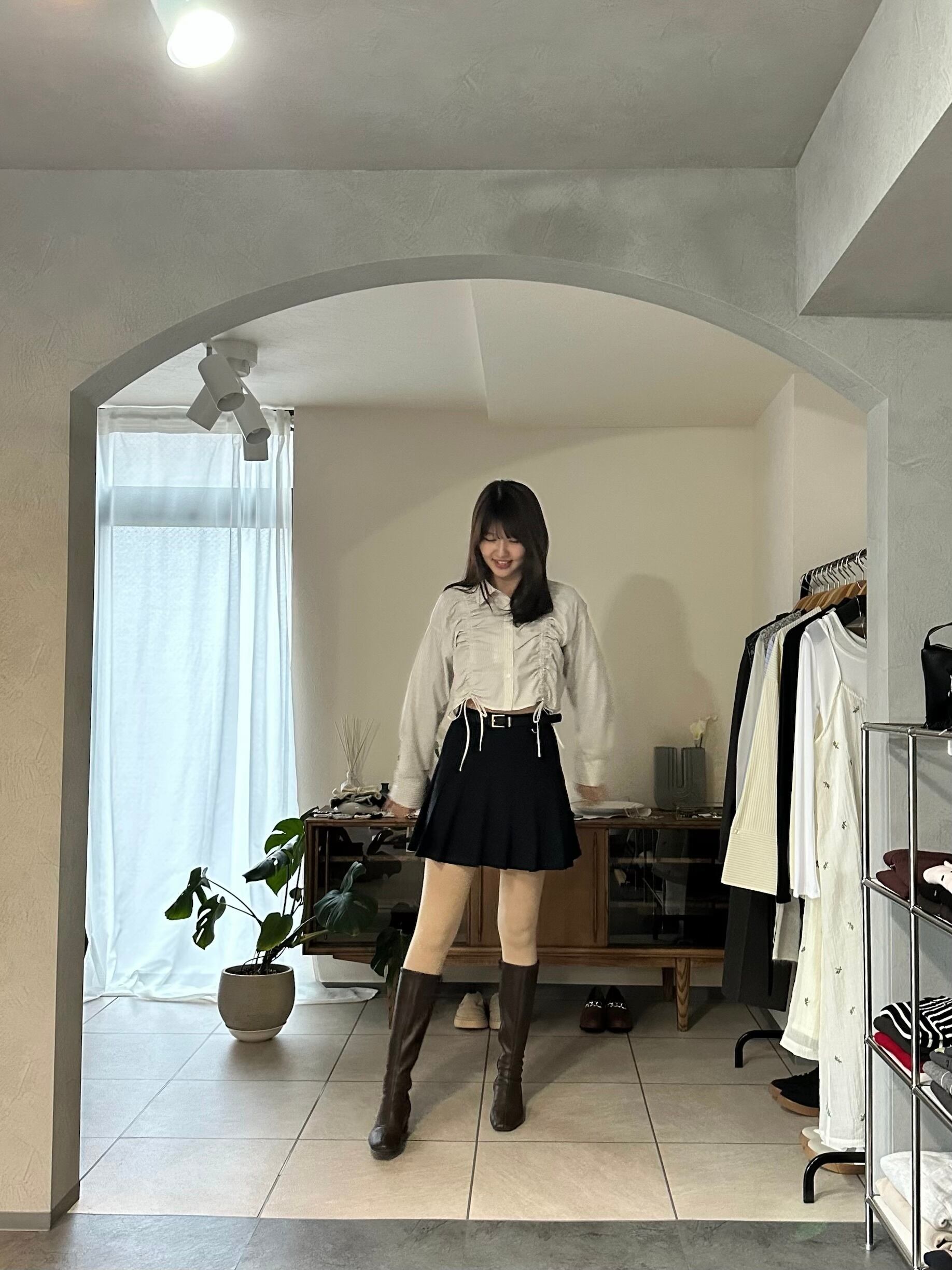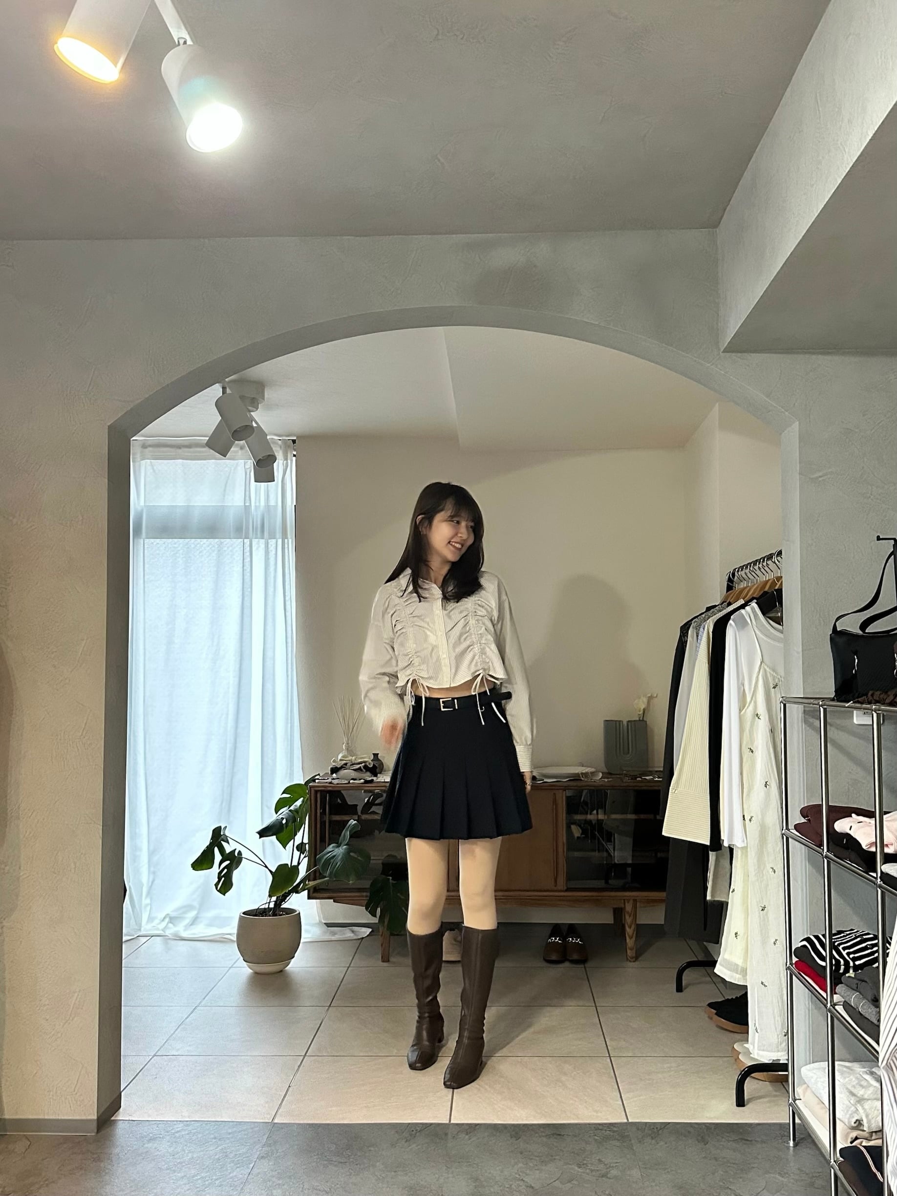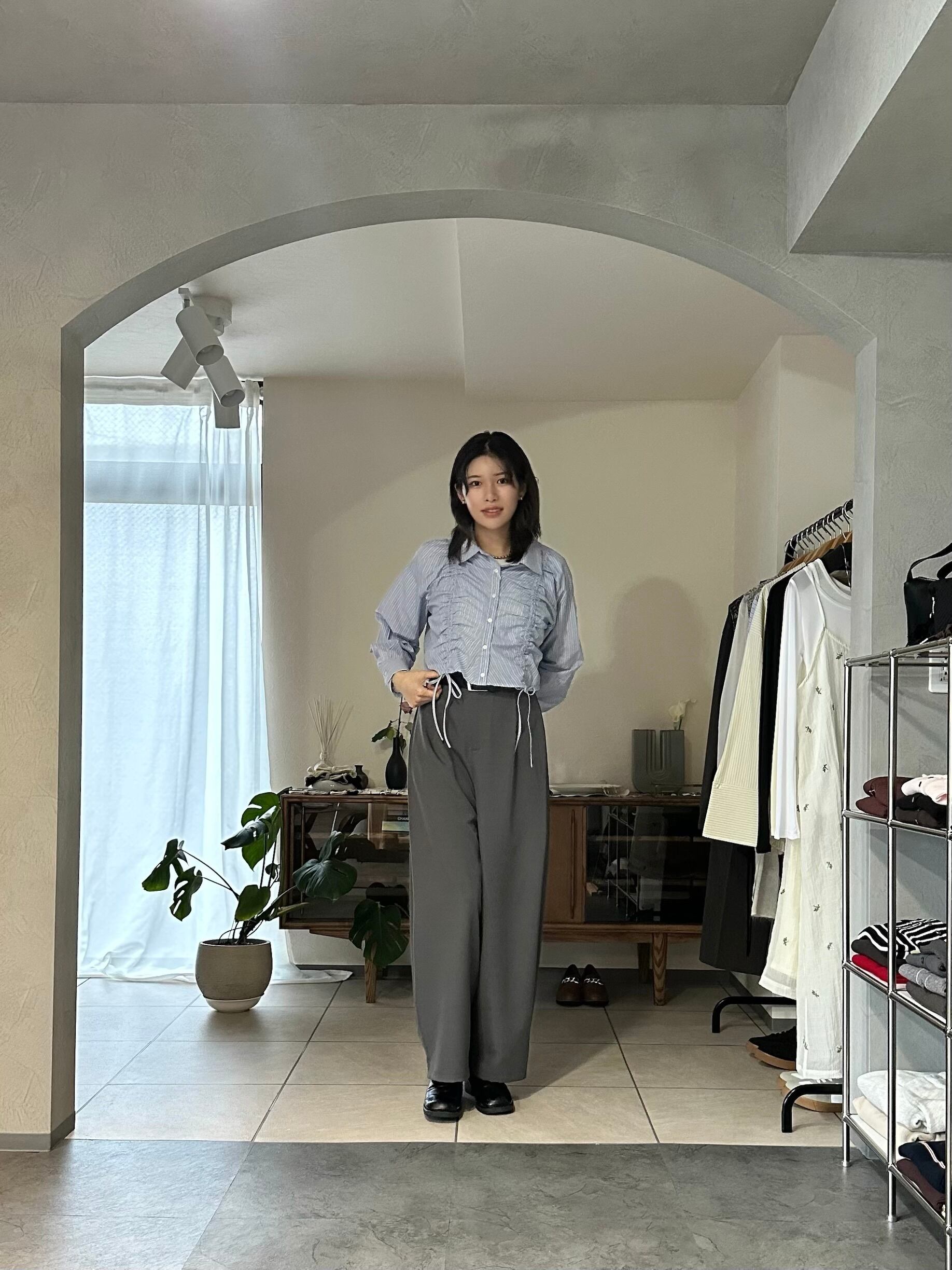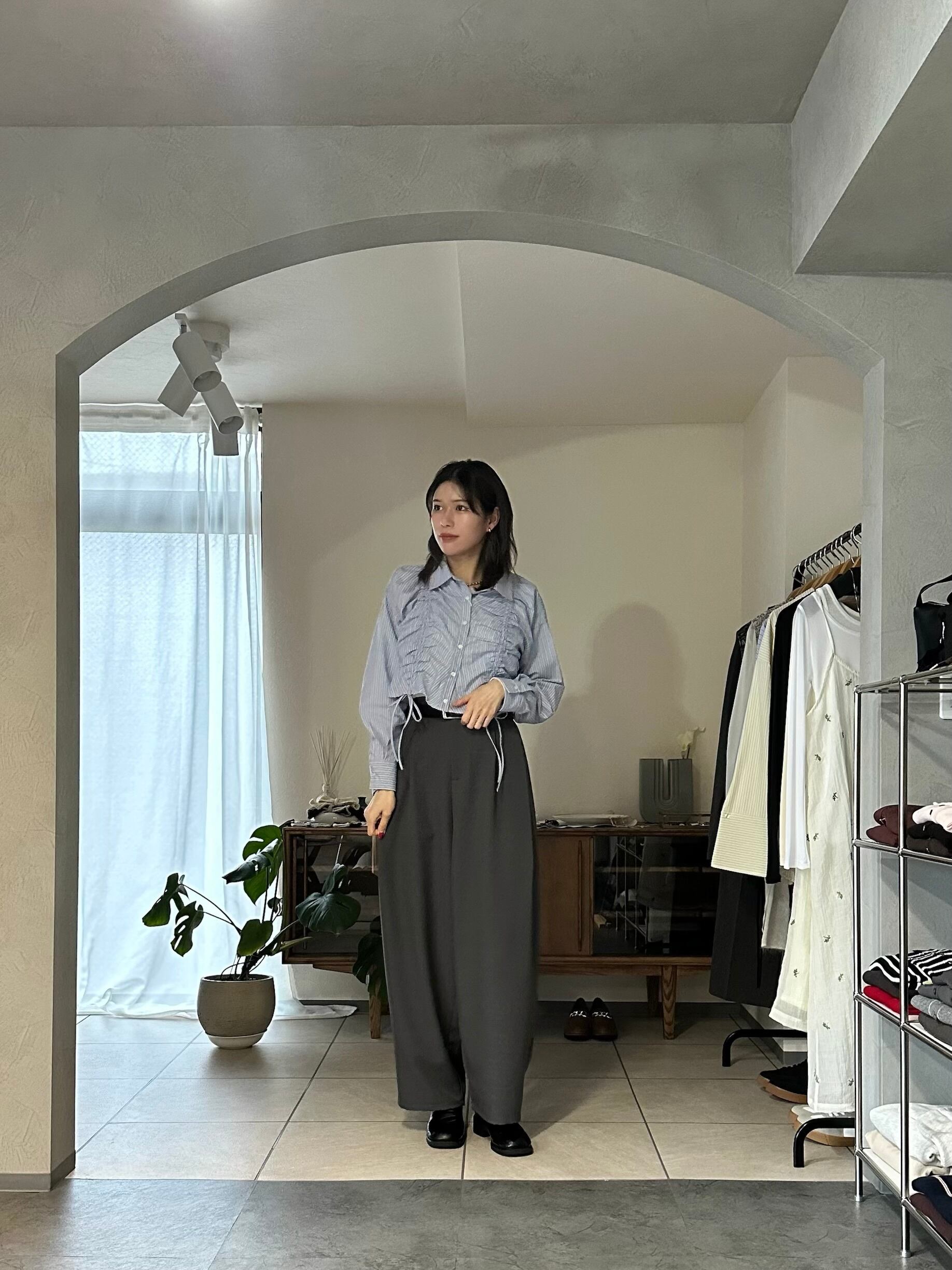 ボトムスもデニムはもちろん、スカートからスラックスまでスタイル良く合わせていただけます。