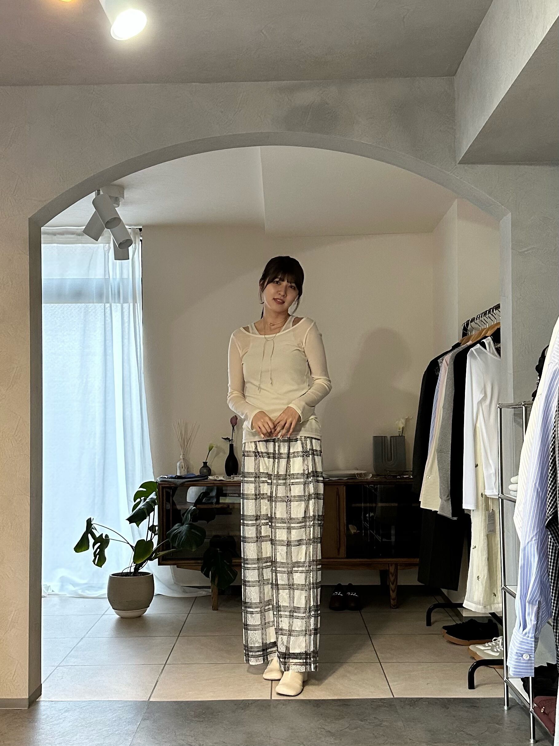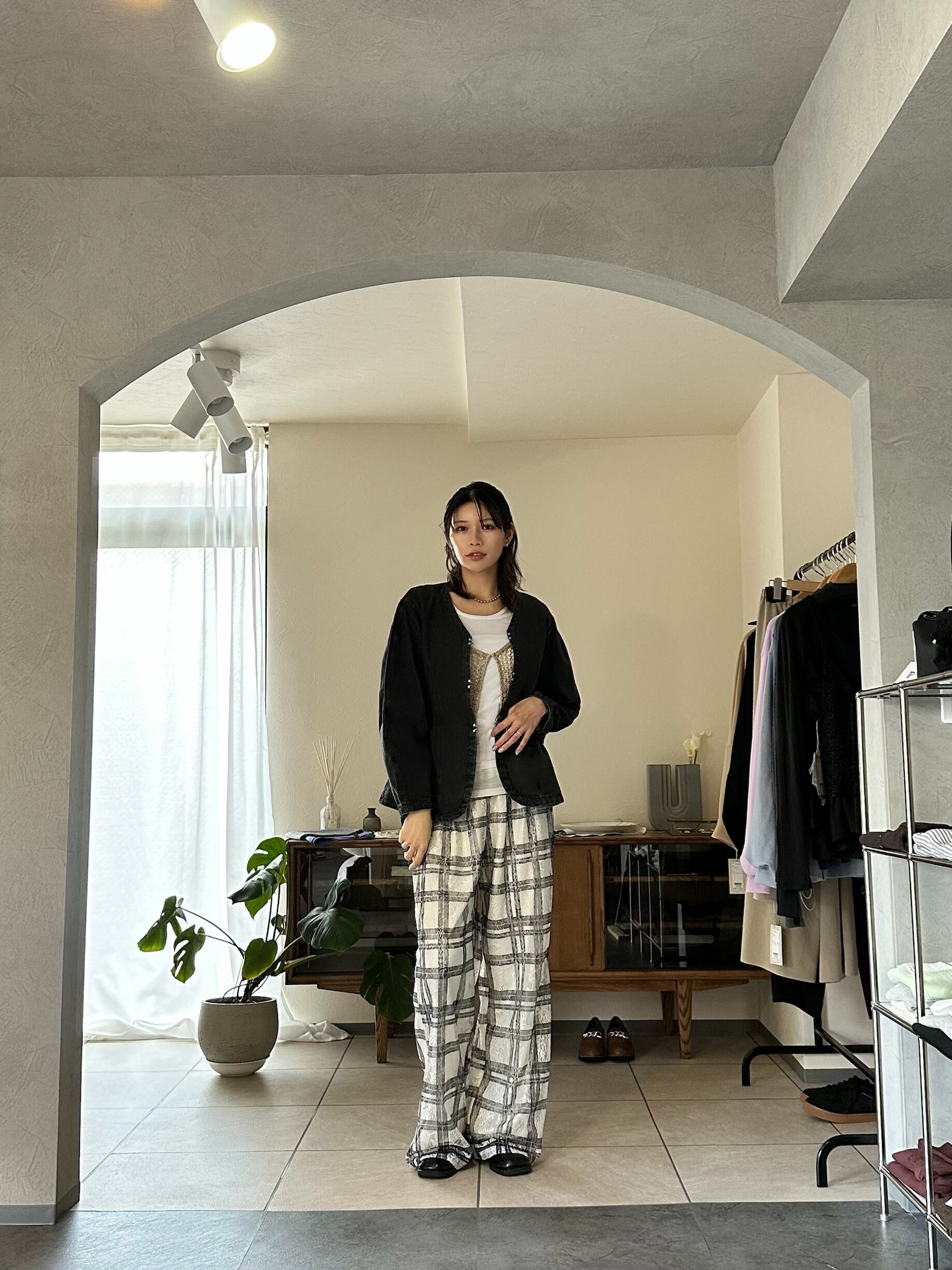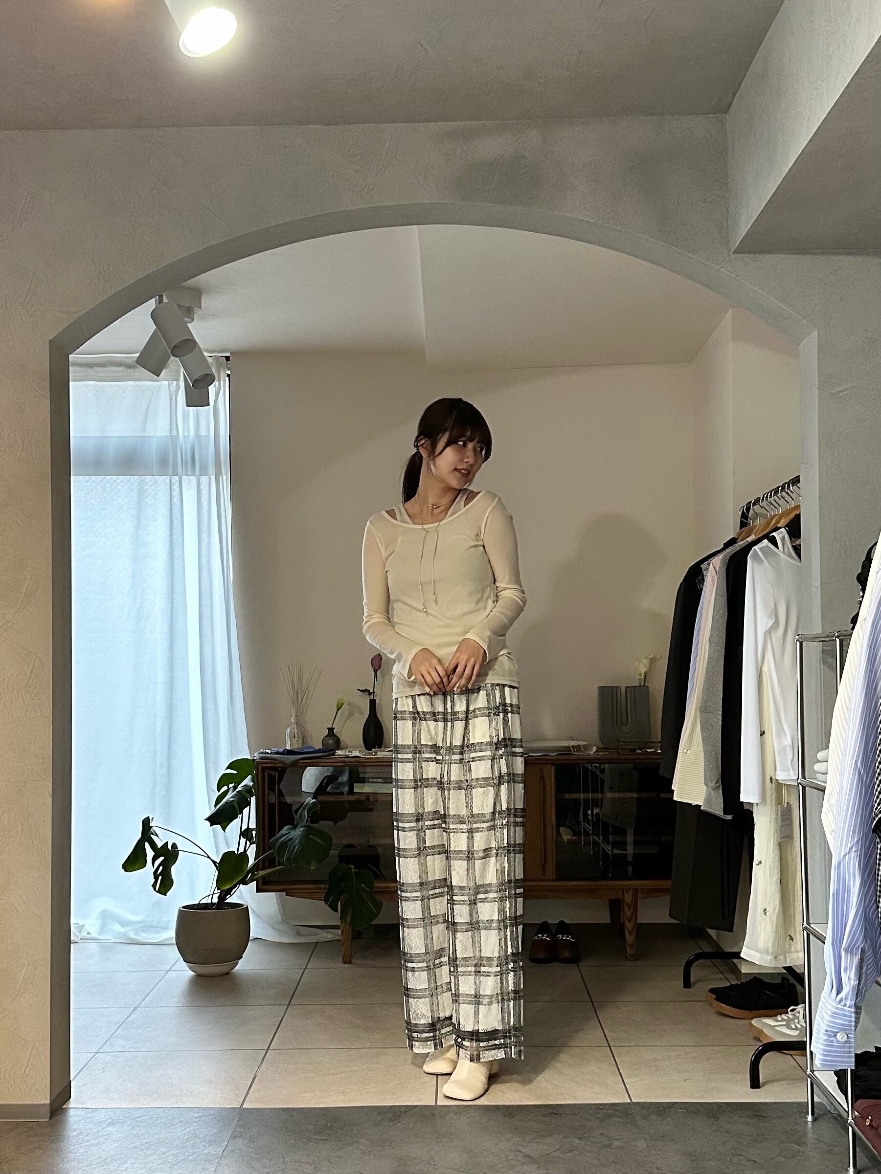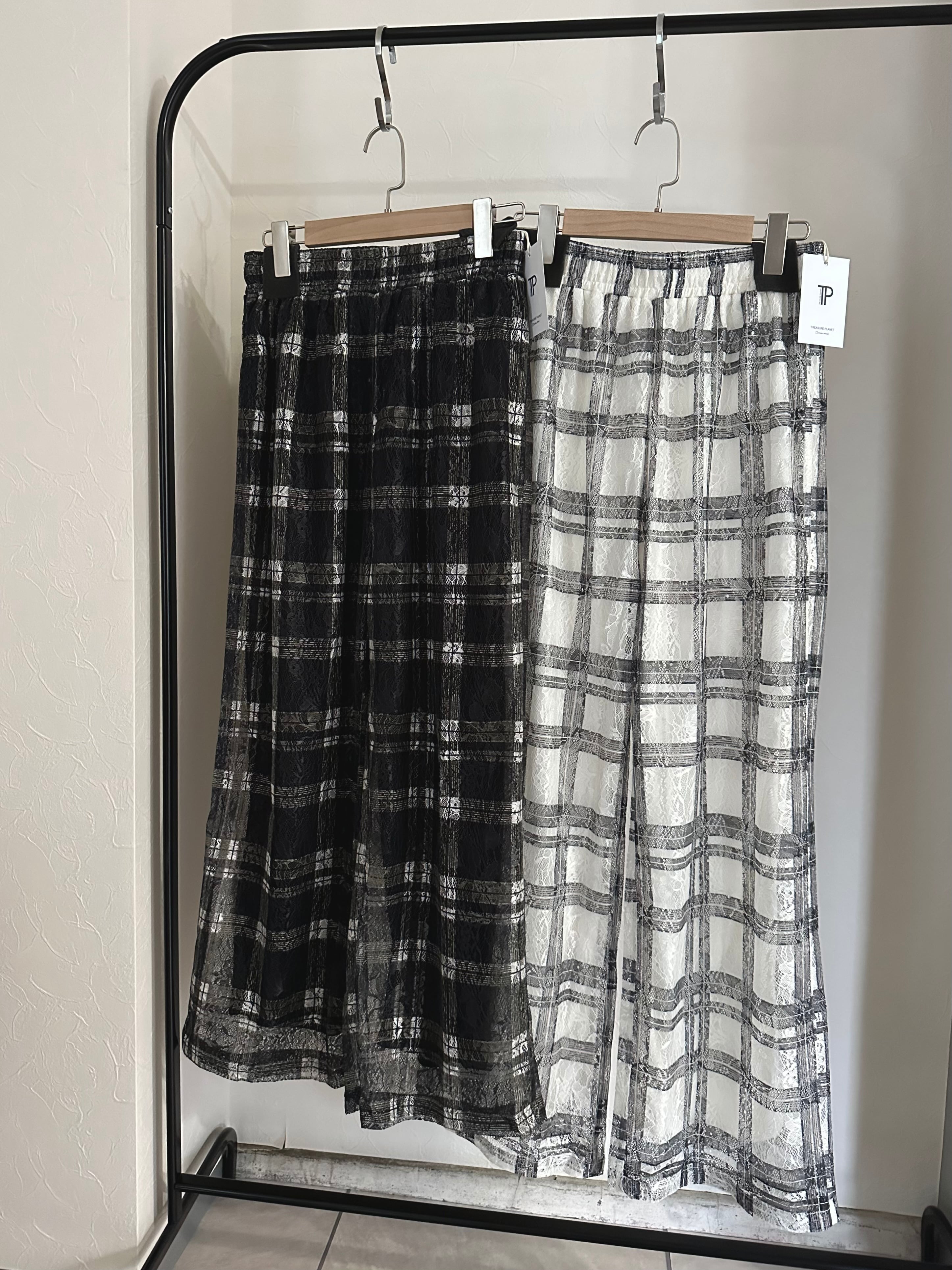 レースの軽やかな透け感にチェックをプラスし、春に向けてシーズンムードを高めてくれる一枚です。