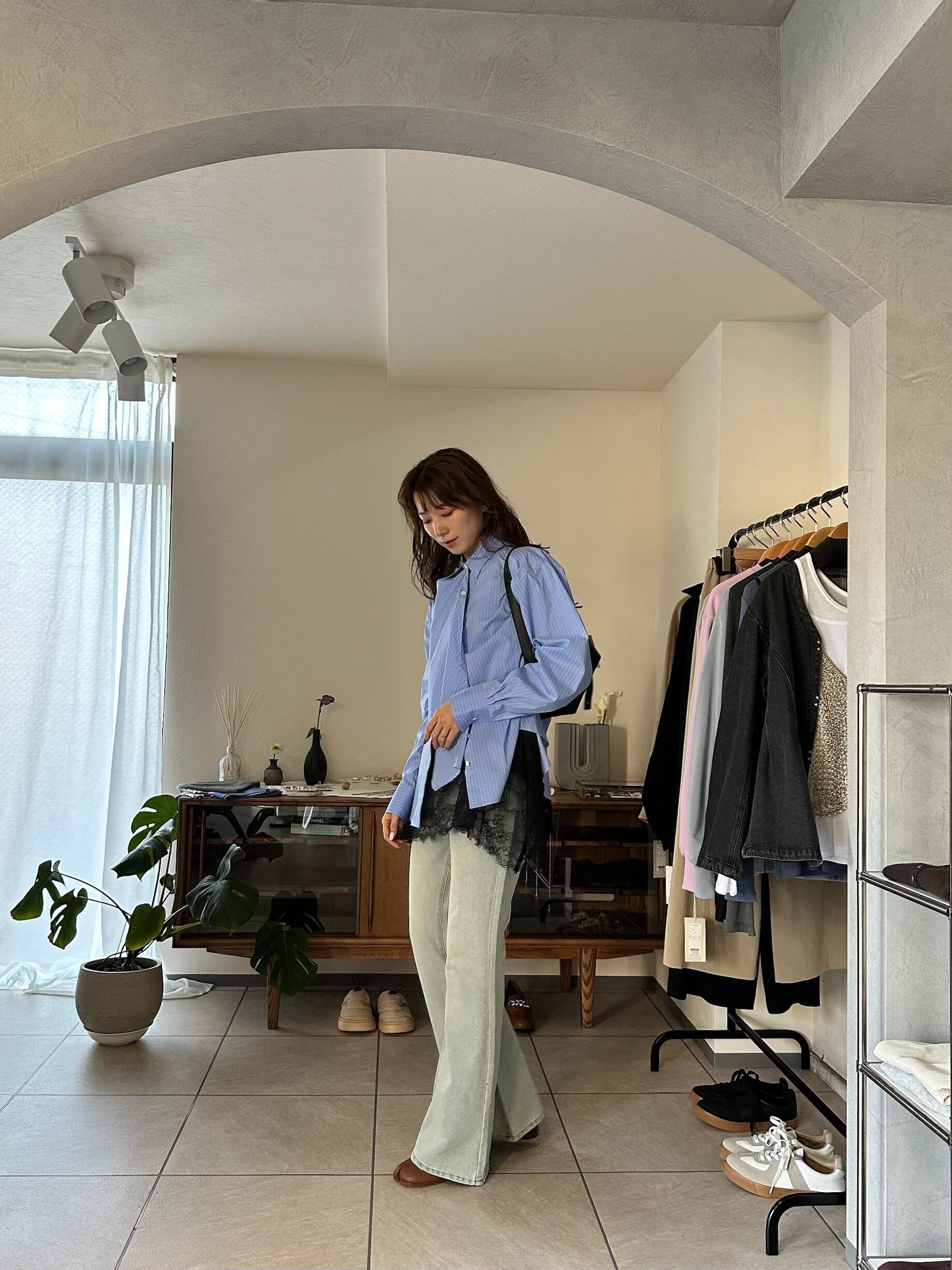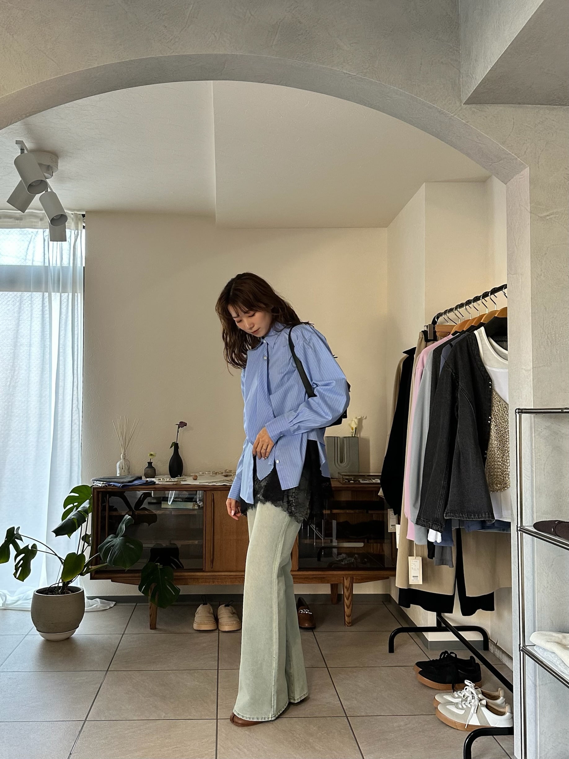 細身パンツやナロースカートと合わせて、裾デザインを主役にしたコーディネートがおすすめです。