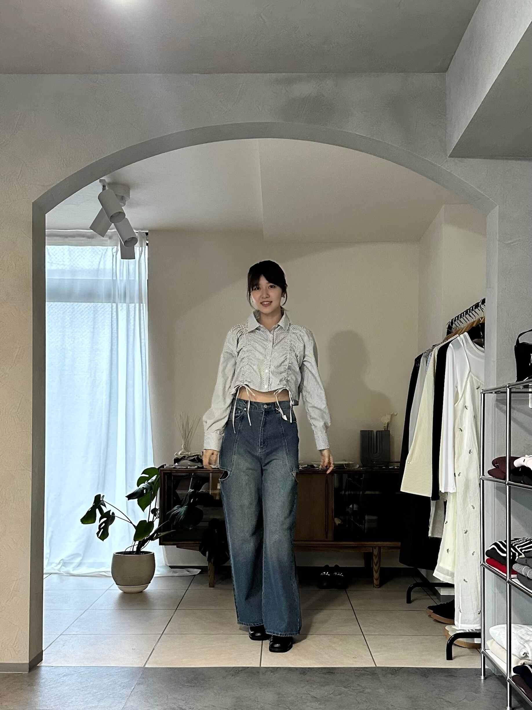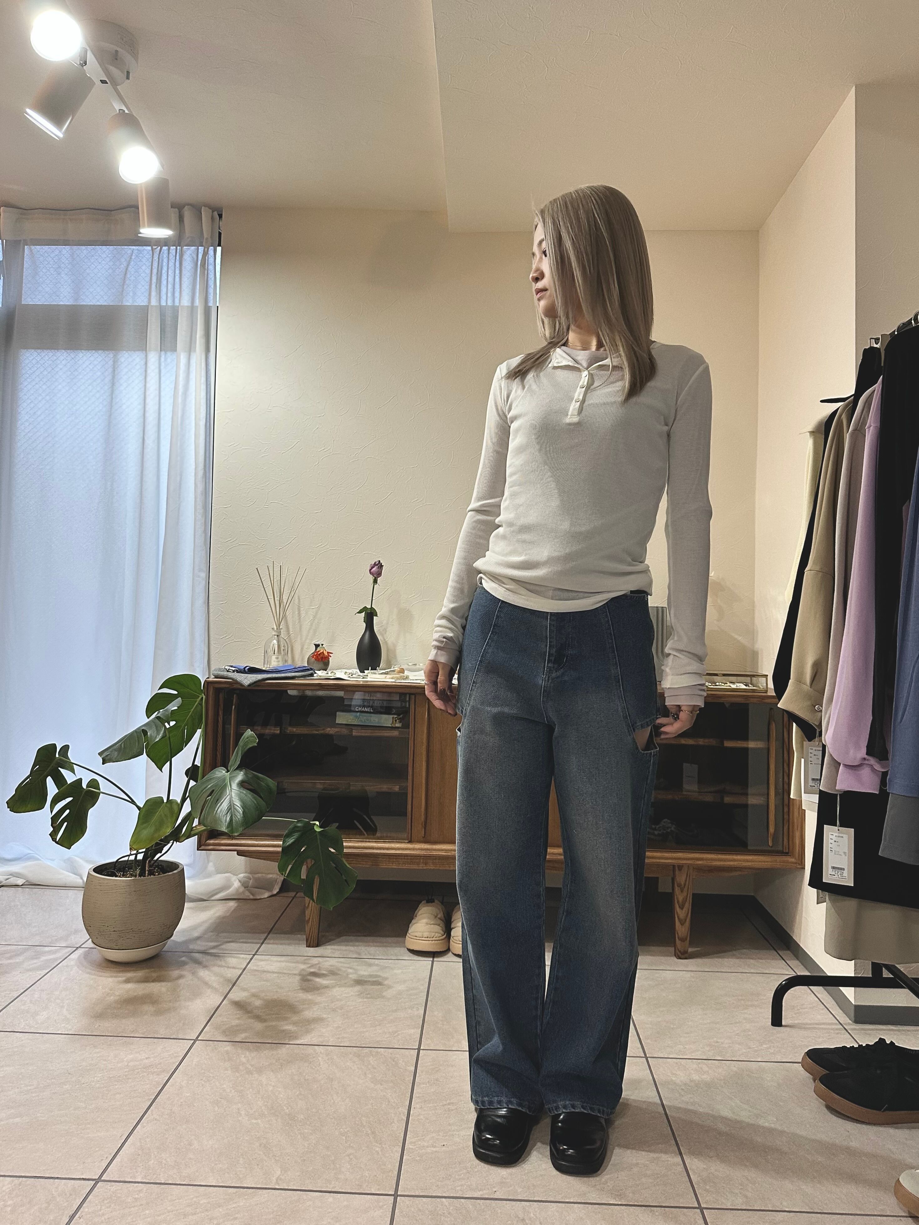 程よくワイドなストレートシルエットで、腰回りはスッキリとジャストウエストに。