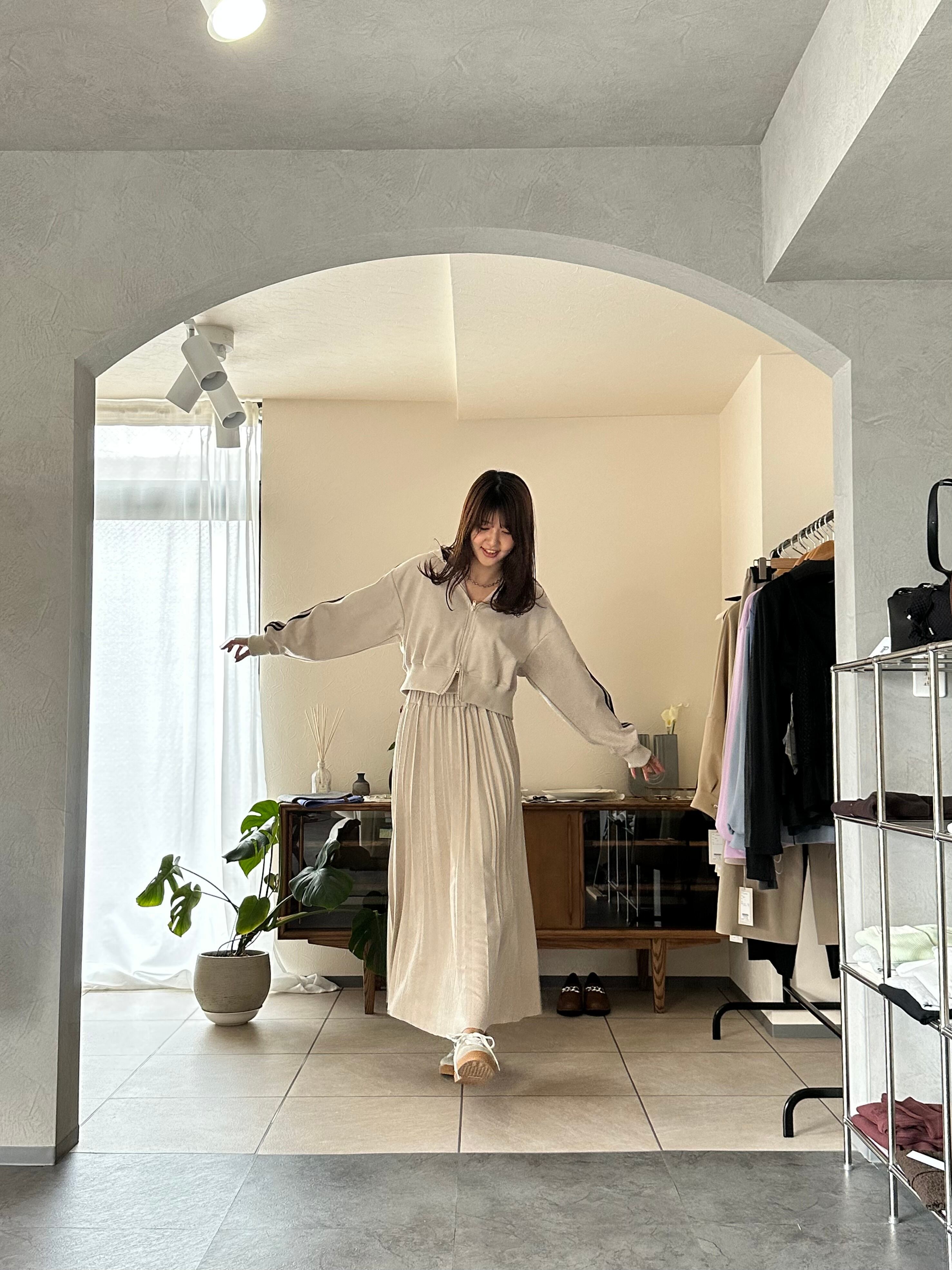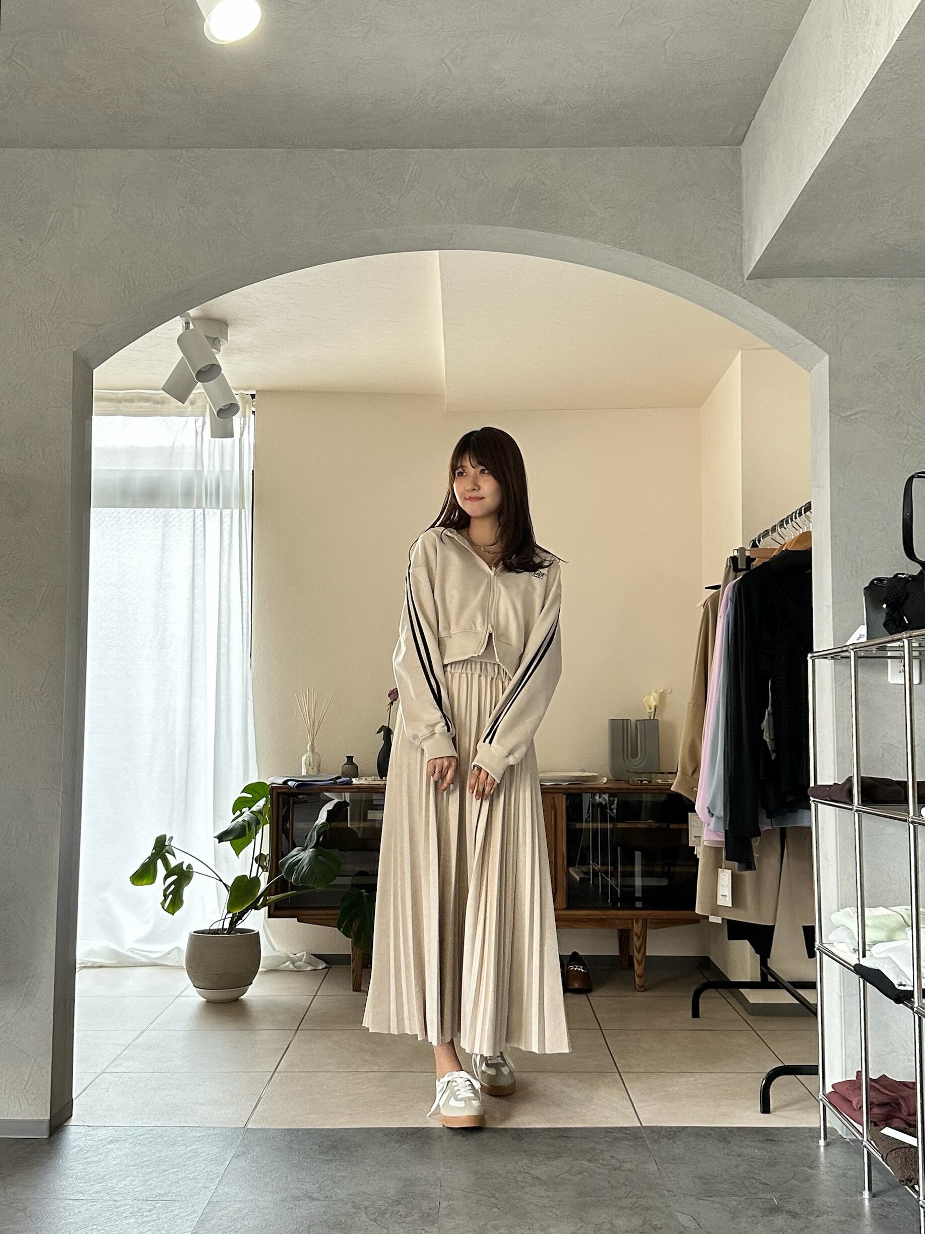 ・動くたびに揺れるプリーツがエレガントさを引き立て、シーズンムードを高めてくれる一枚です。