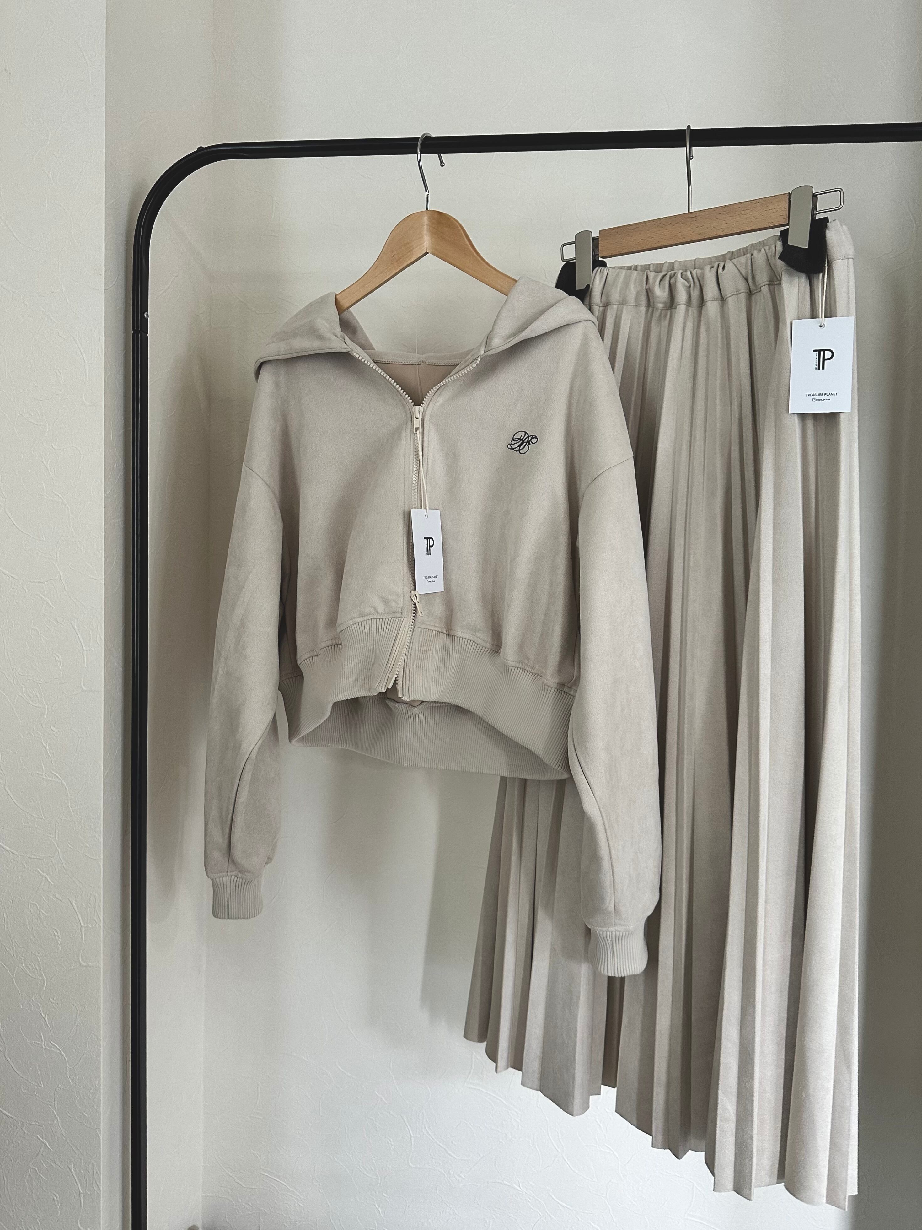 落ち着いた表情のスエードポンチ素材を使用したプリーツスカート