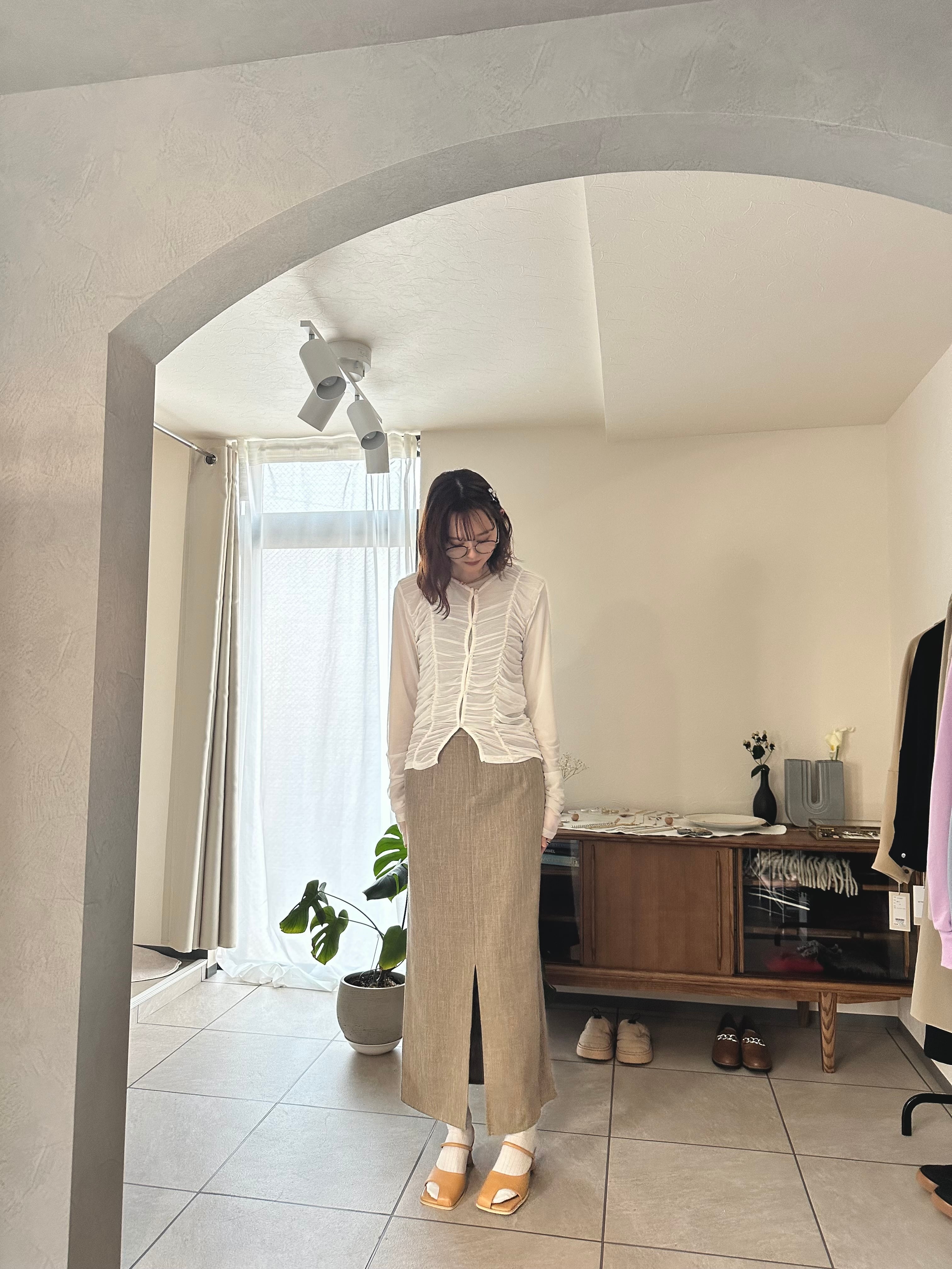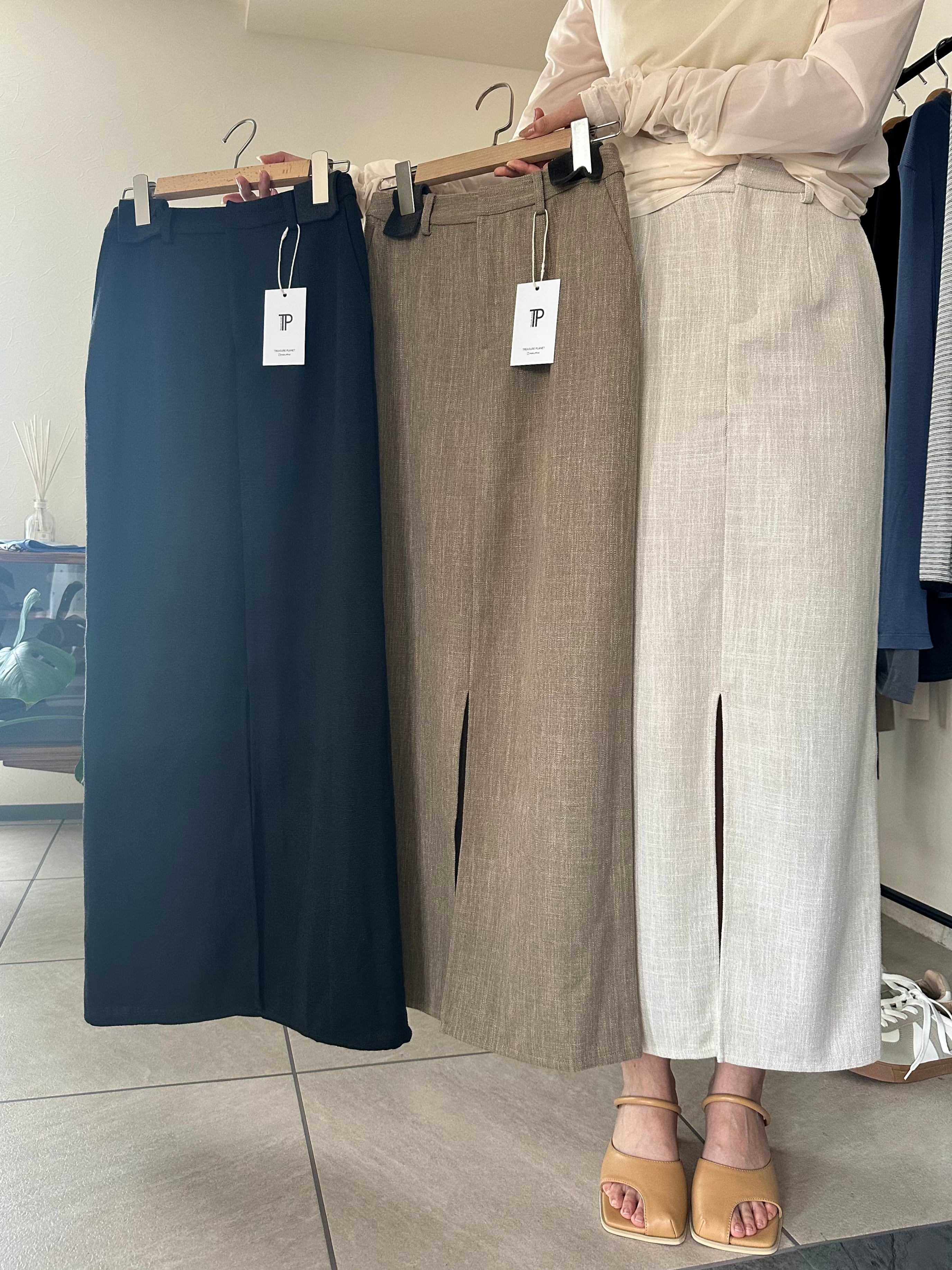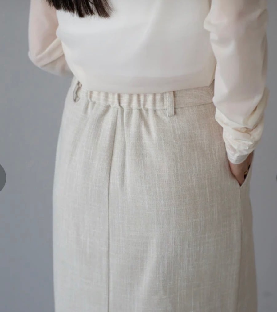 春夏に向けてシーズンムードを高めてくれる、リネンライクな生地のナロースカート。