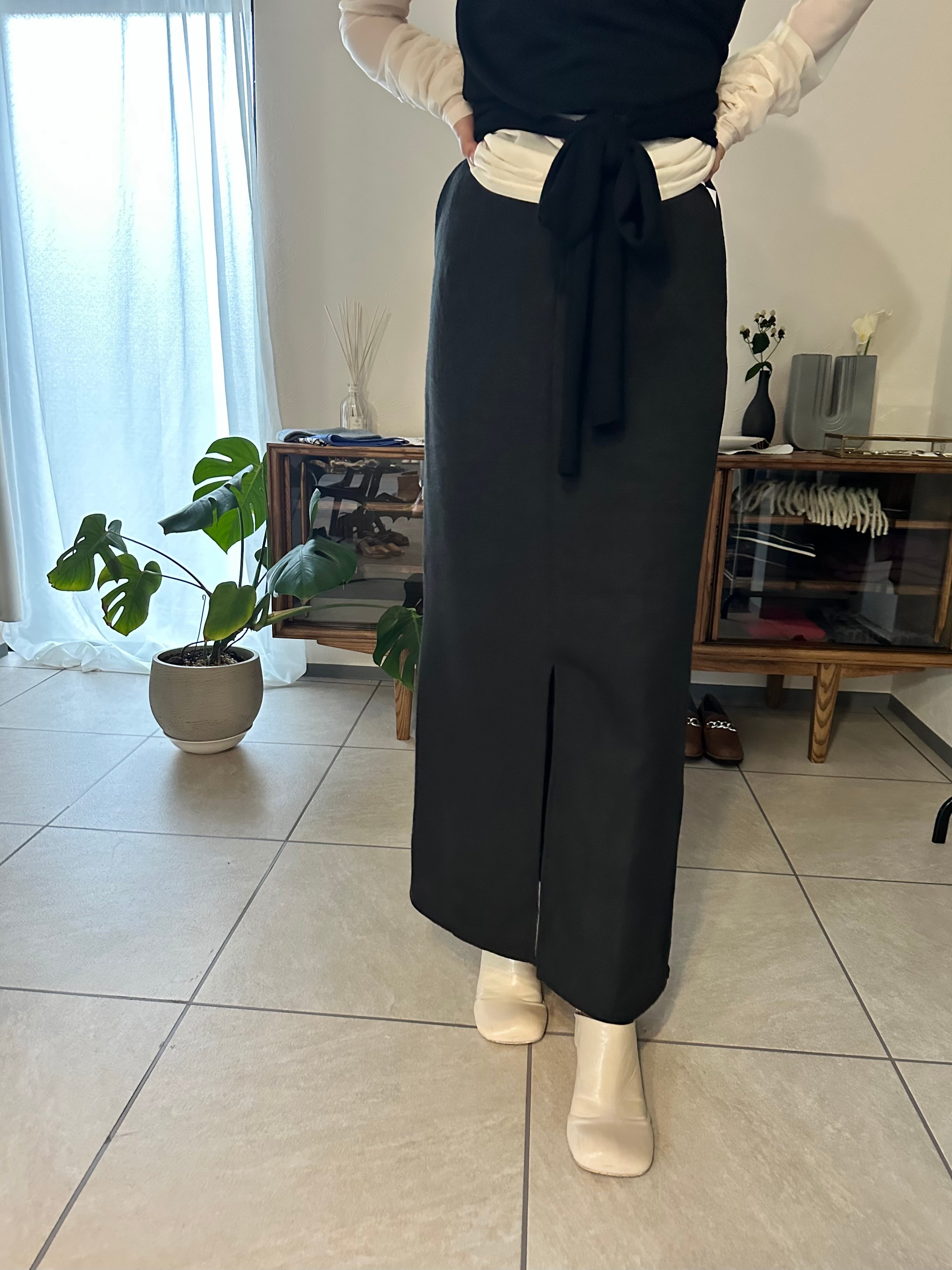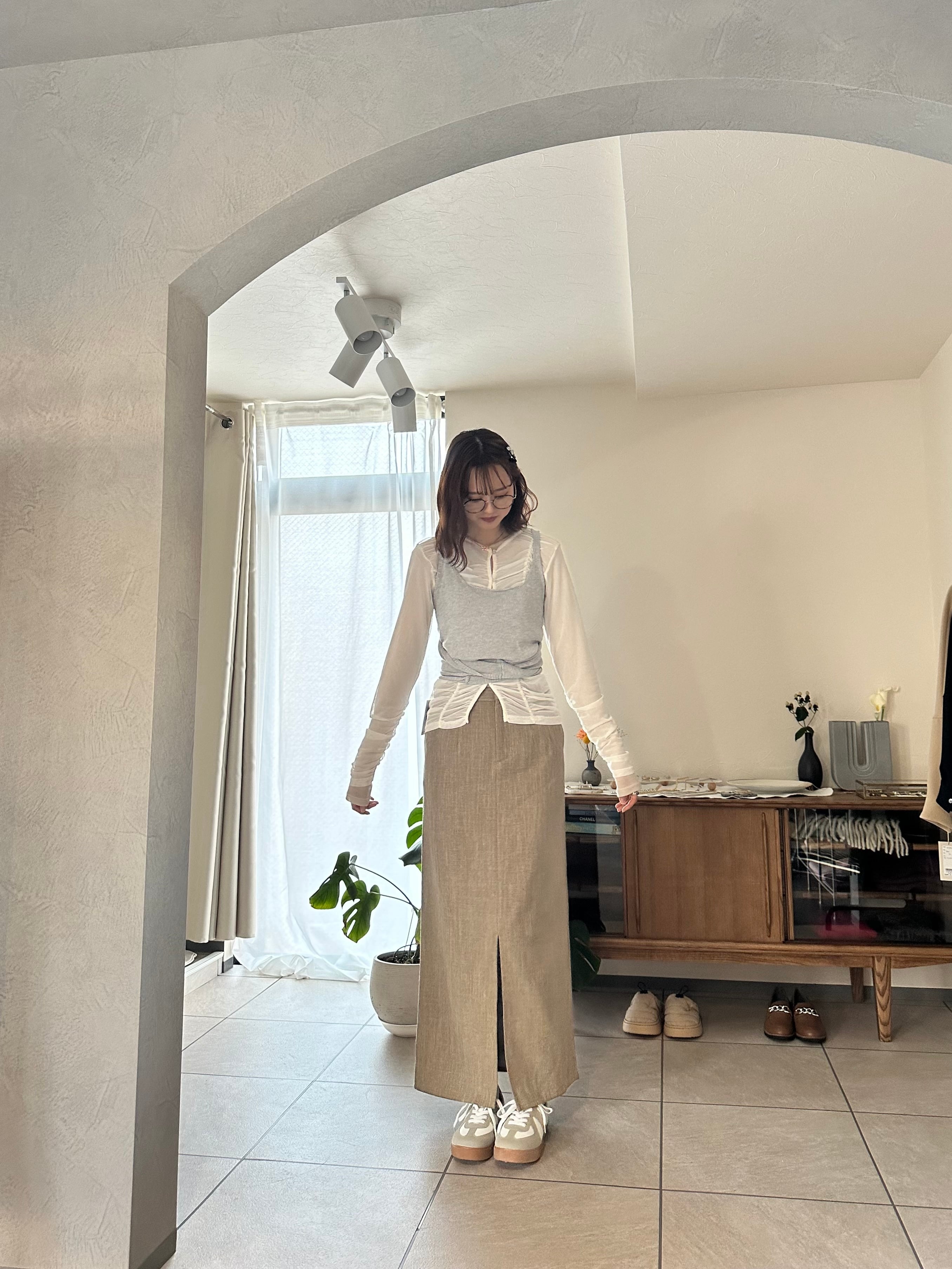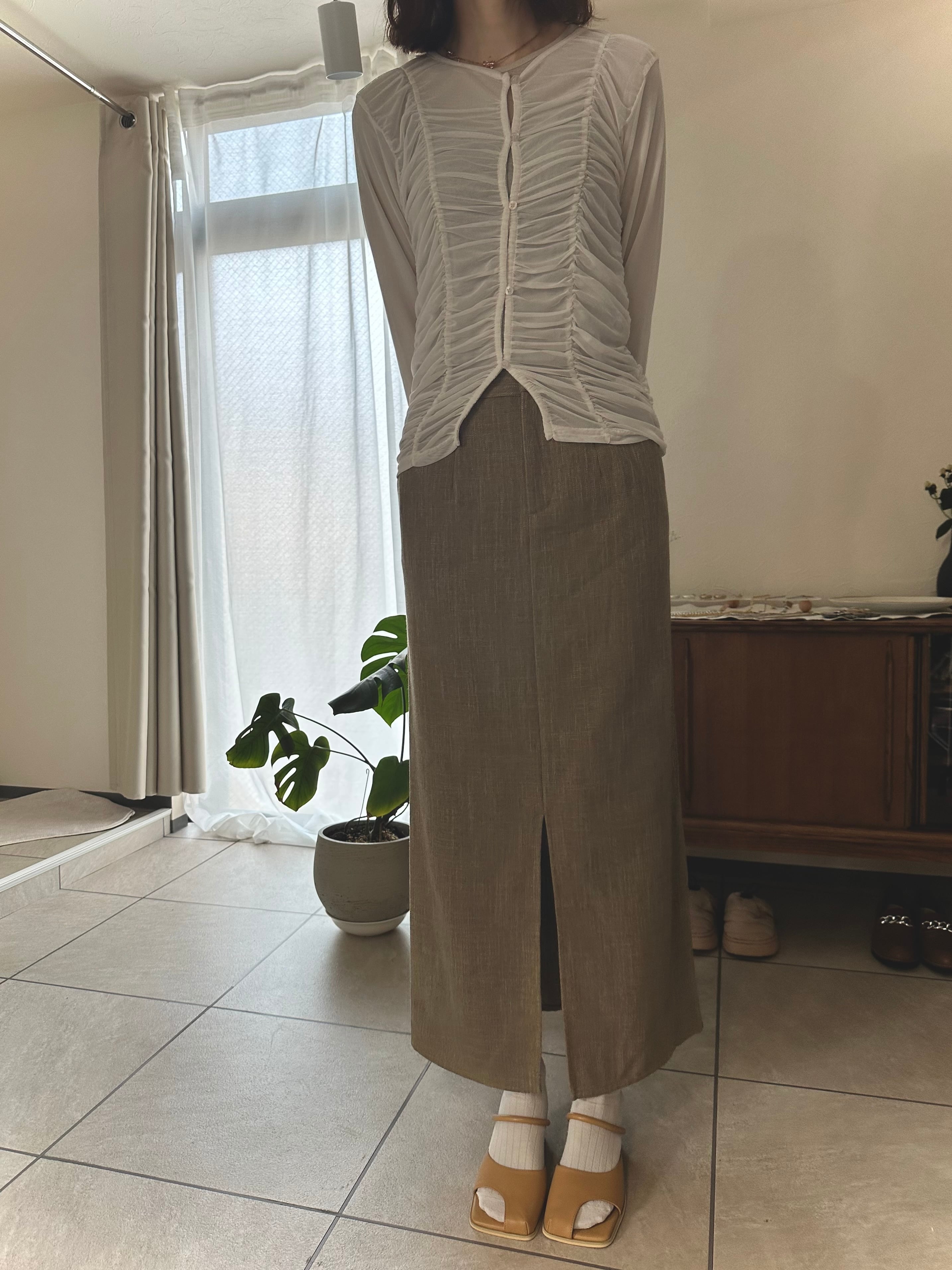 春夏に向けてシーズンムードを高めてくれる、リネンライクな生地のナロースカート。