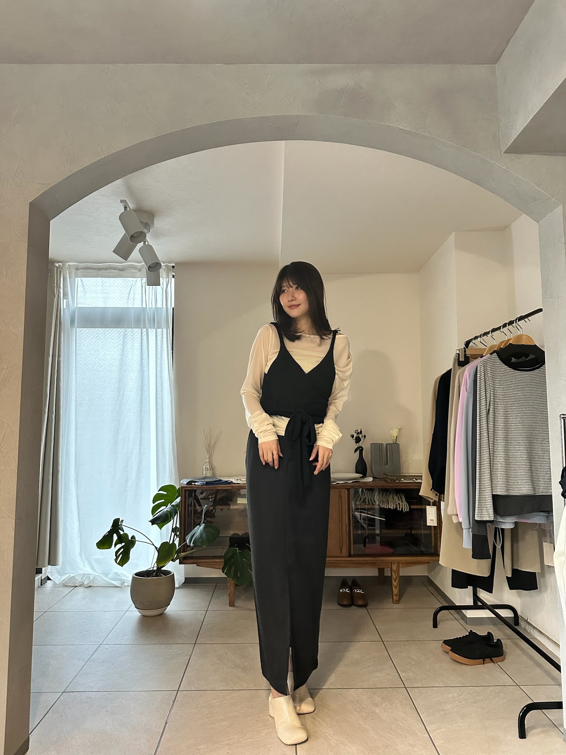 フロントに施したスリットが、歩きやすさと女性らしさを両立。