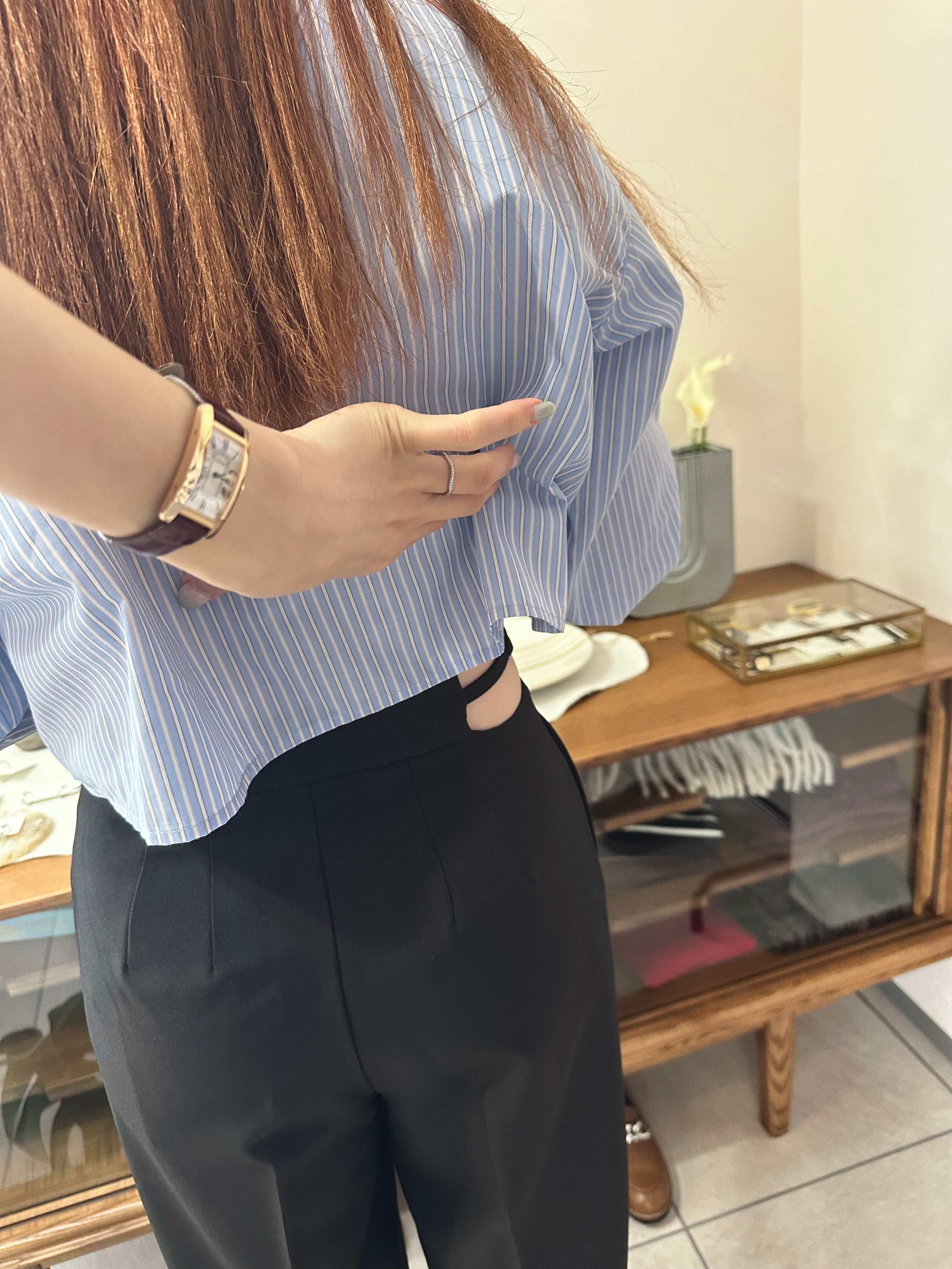 WAIST SIDE CUT-OUT STRAIGHT PANTS