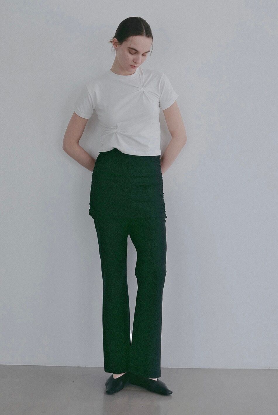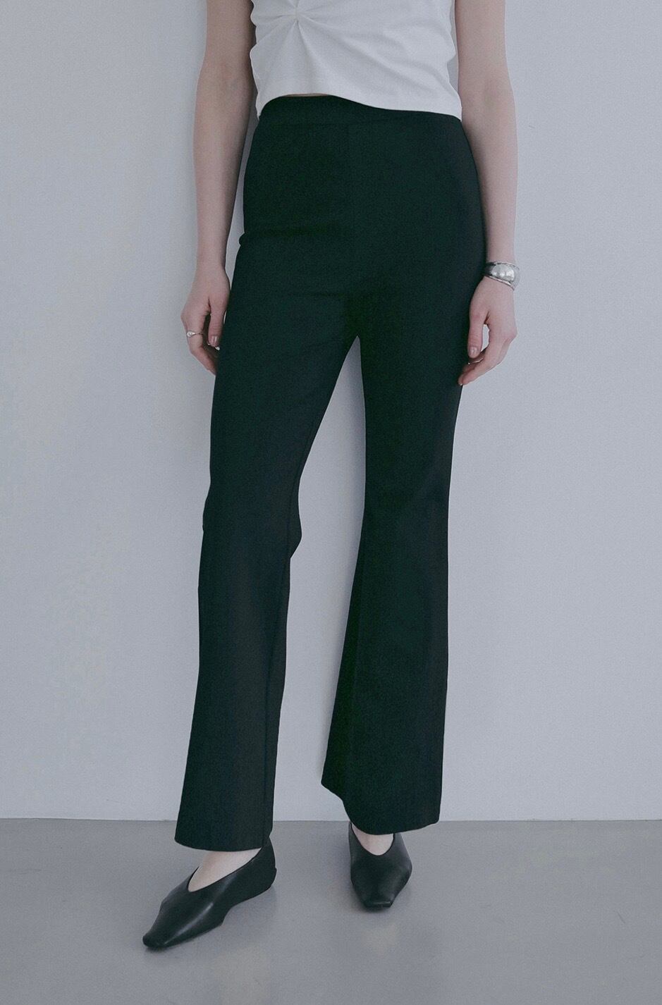パンツはくるぶしにかかる少し短めの丈が鮮度のあるバランスに。